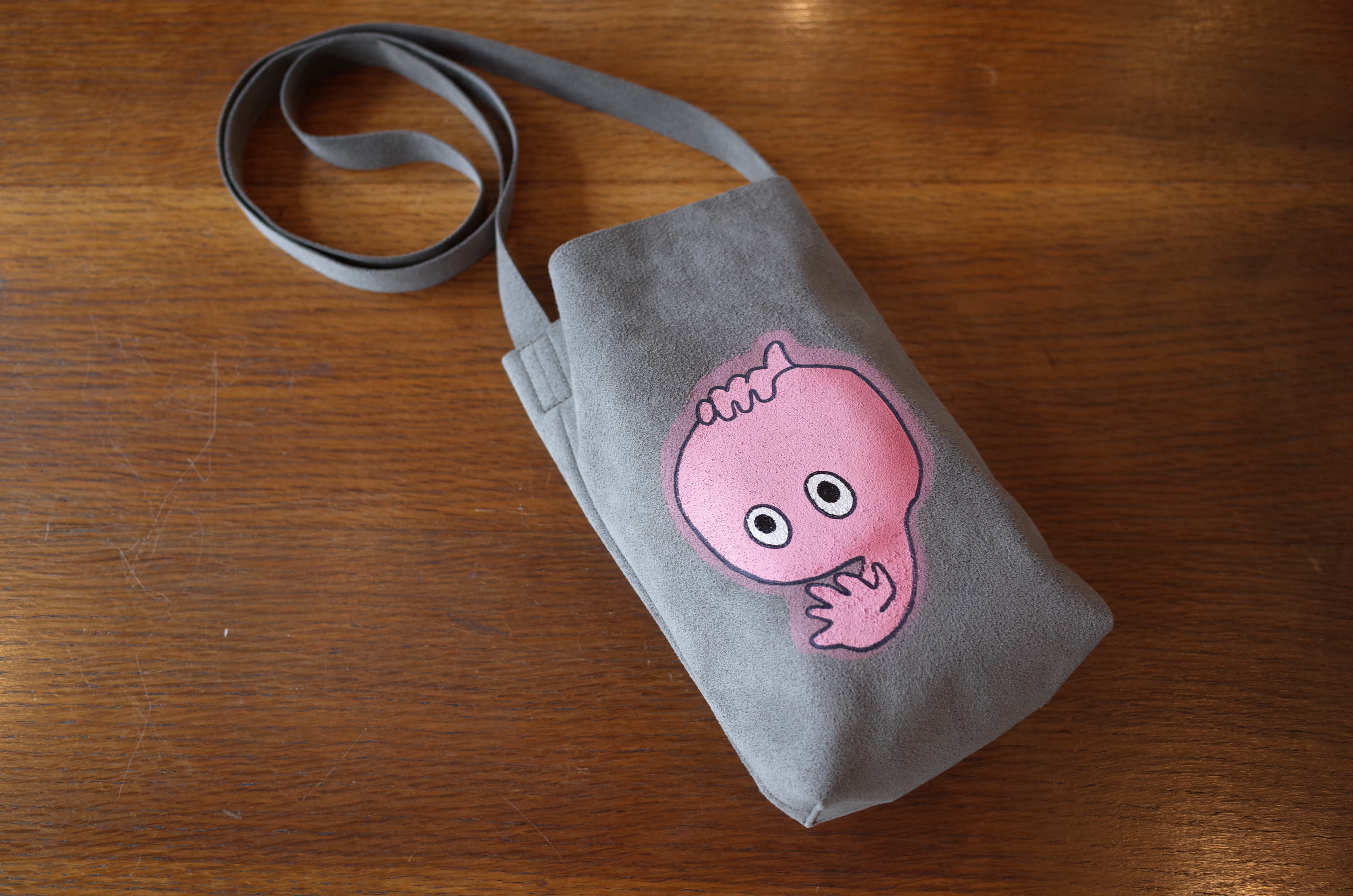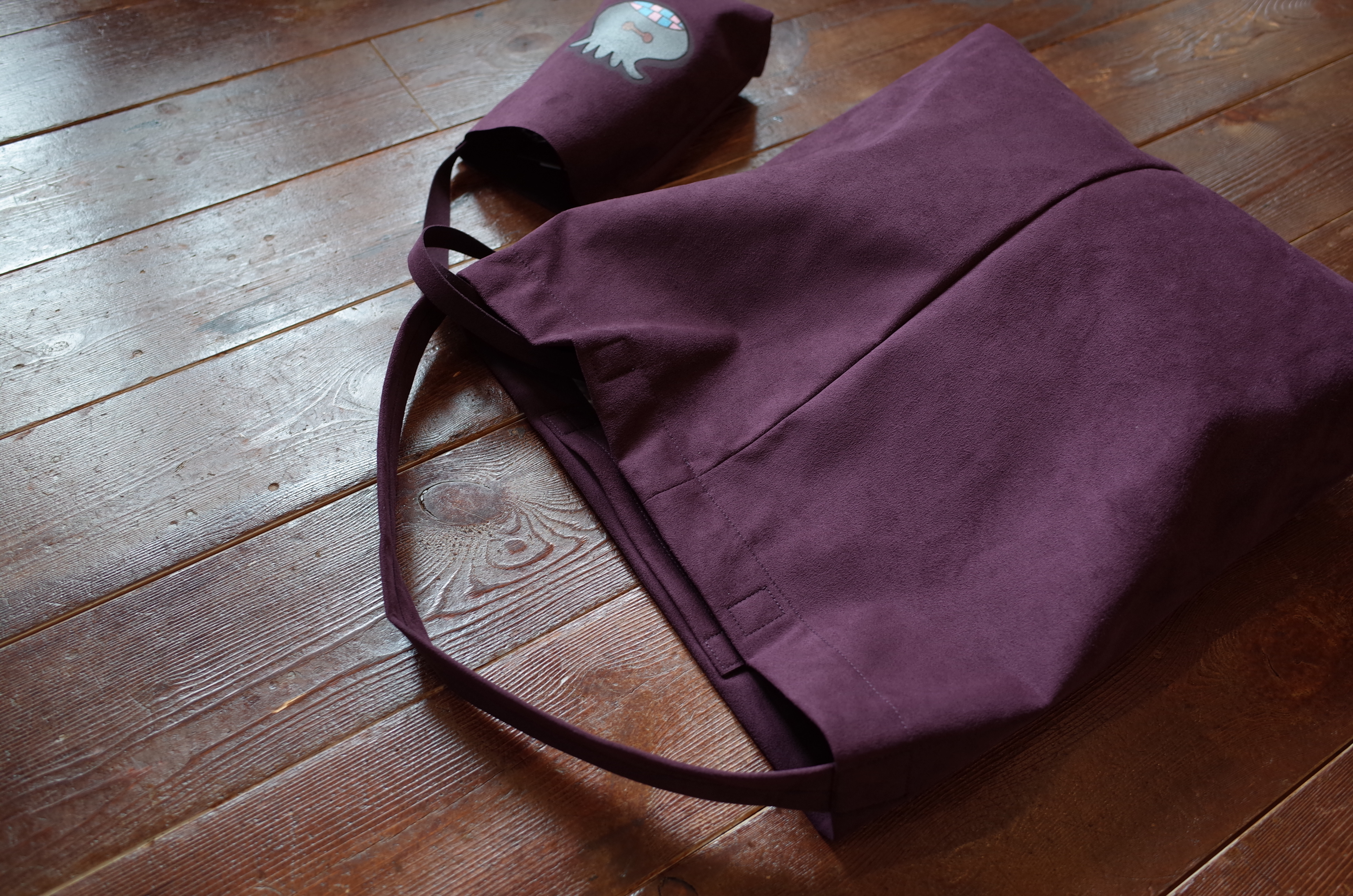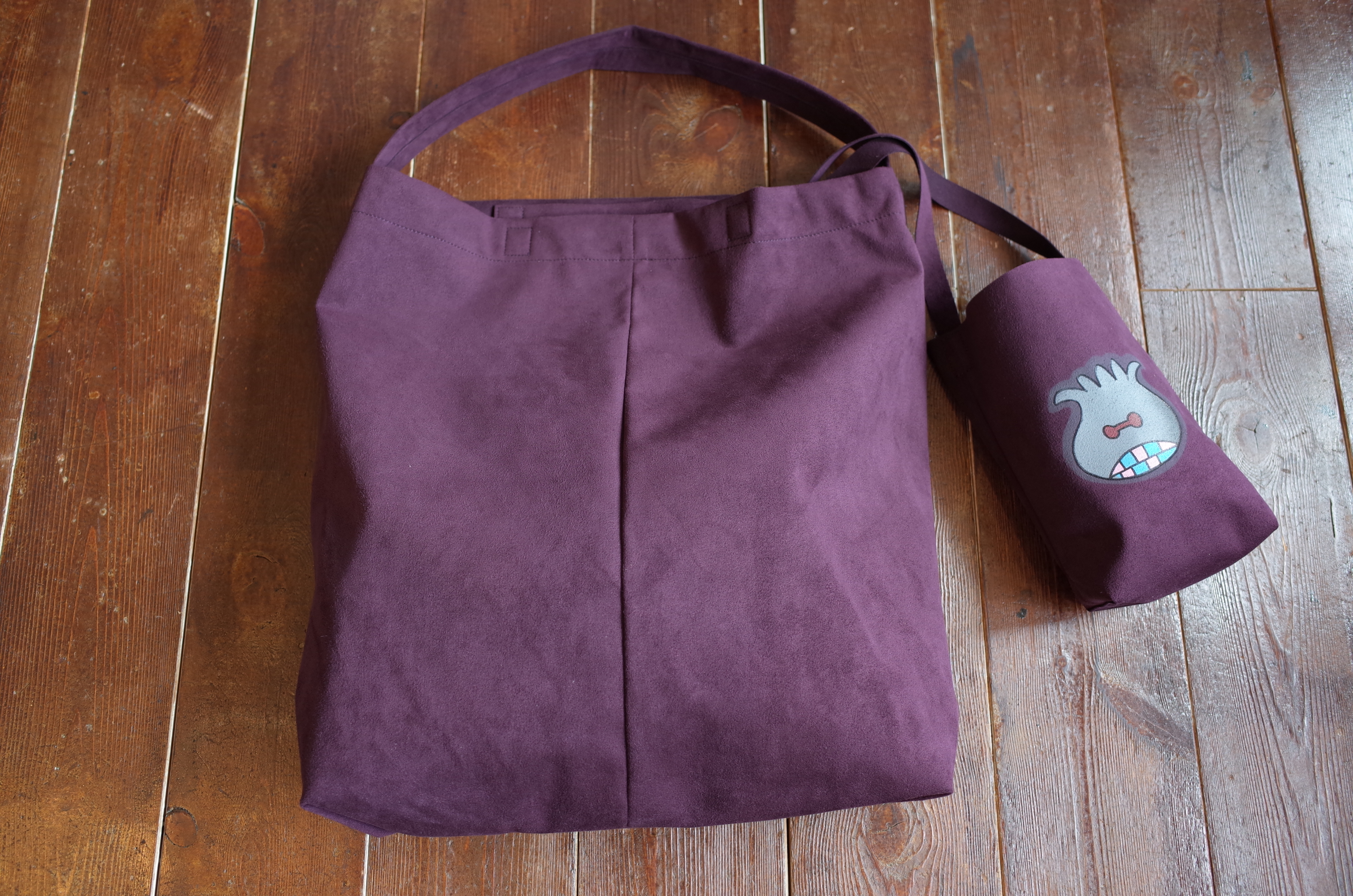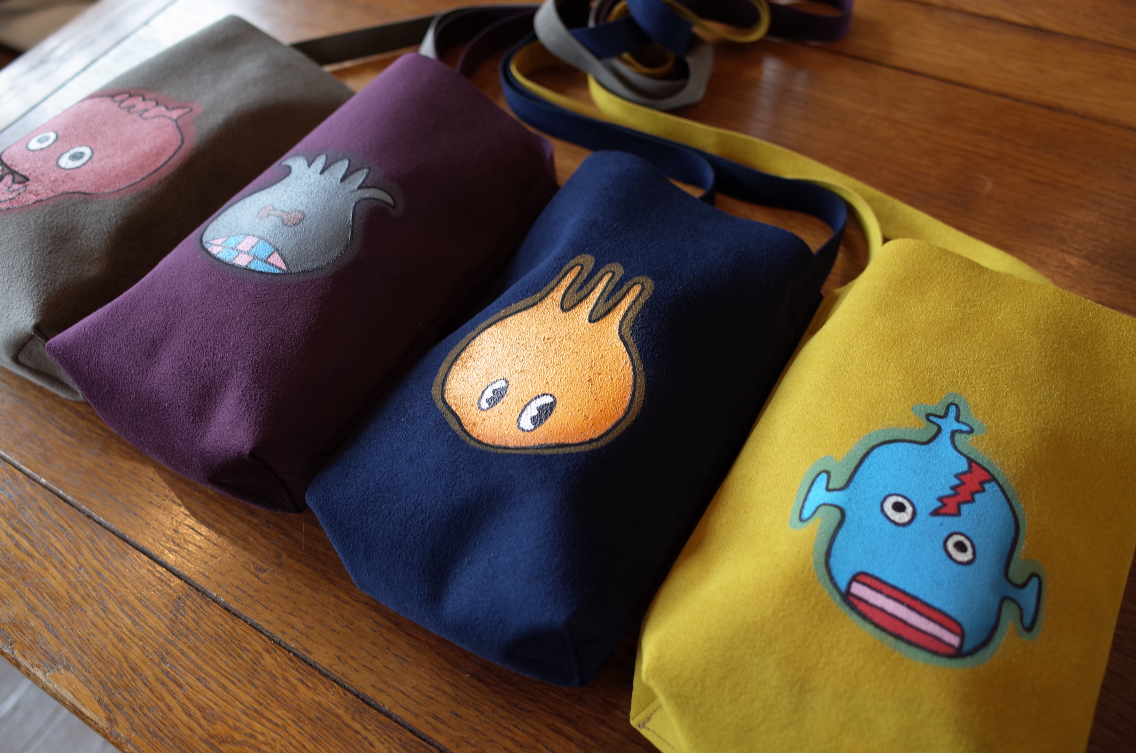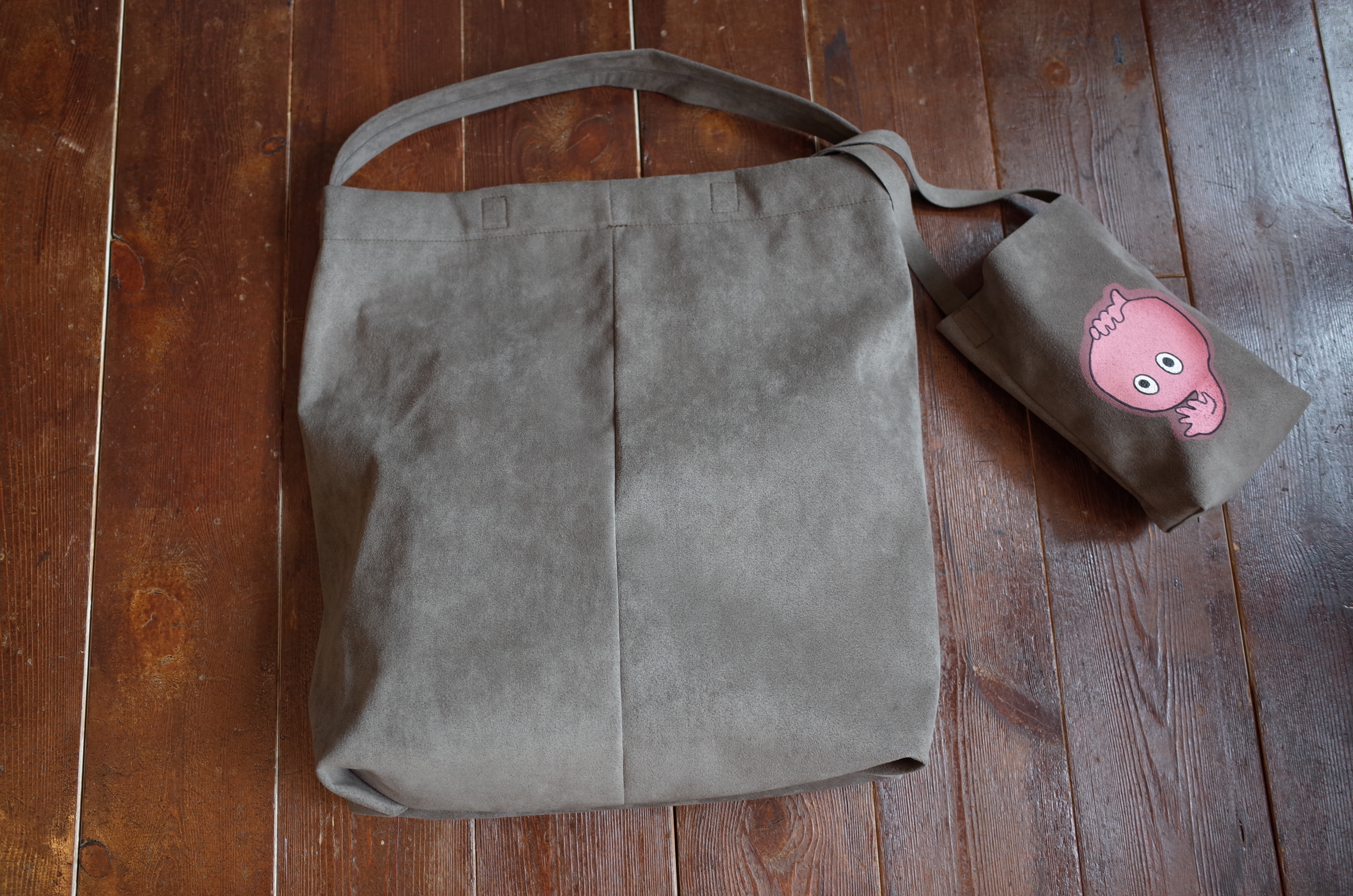 発色のいいフェイク・スェードにこのイラストは楽しいですね、