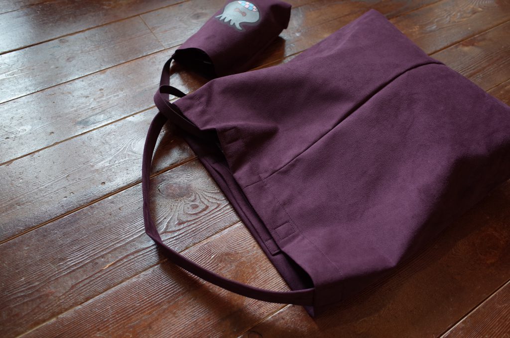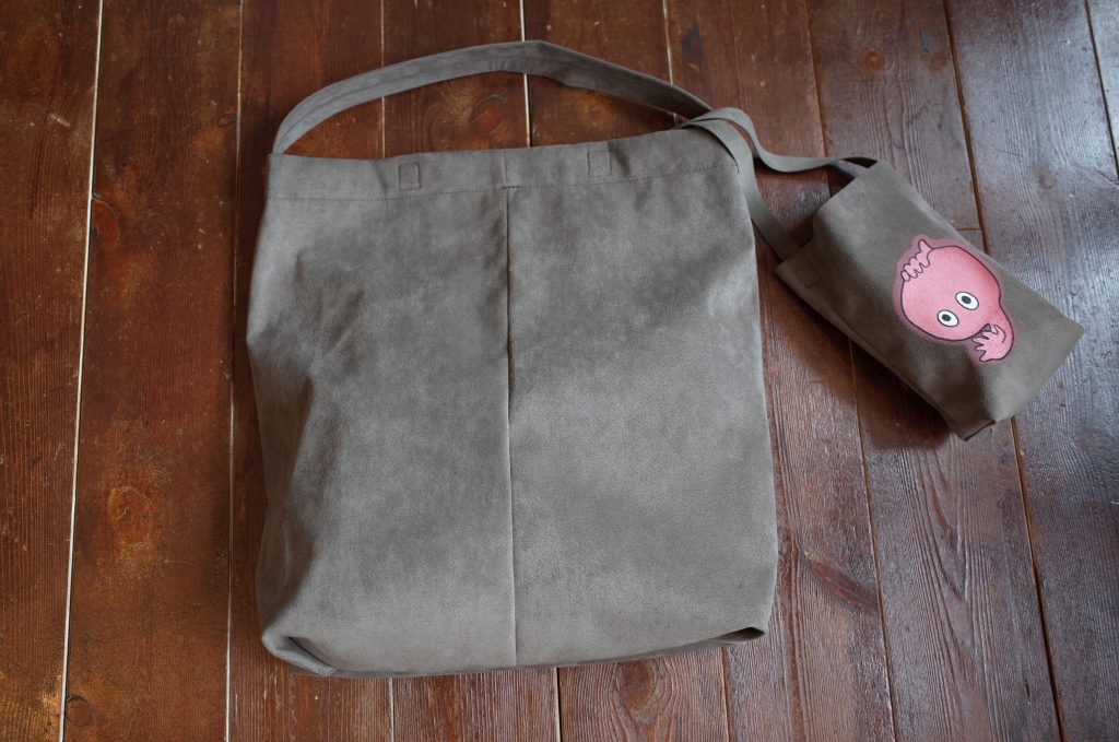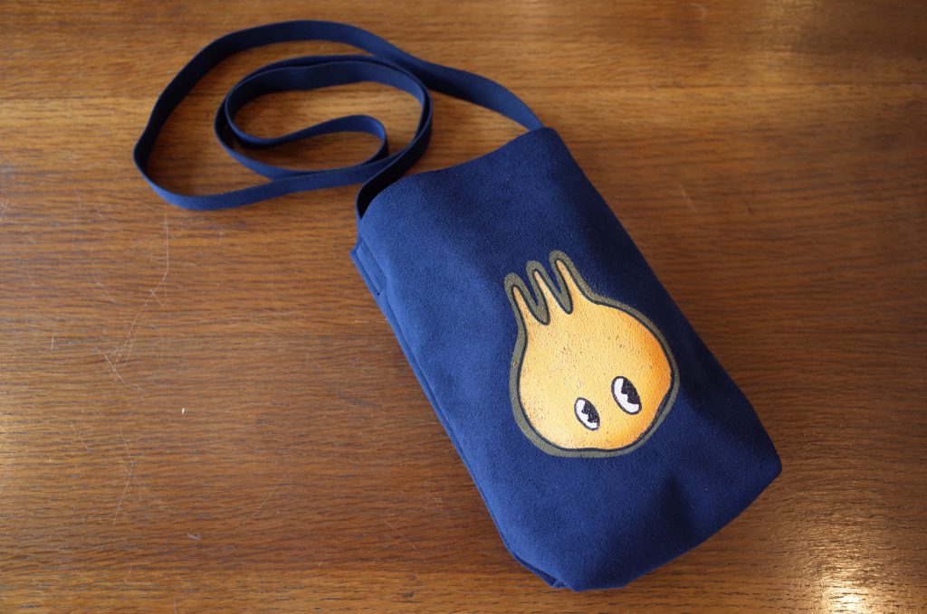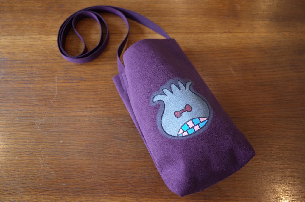 長いショルダーストラップ付きの小さい方は、携帯電話、財布、バンダナとか常に持ち歩く物が余裕で収まるいいサイズ、