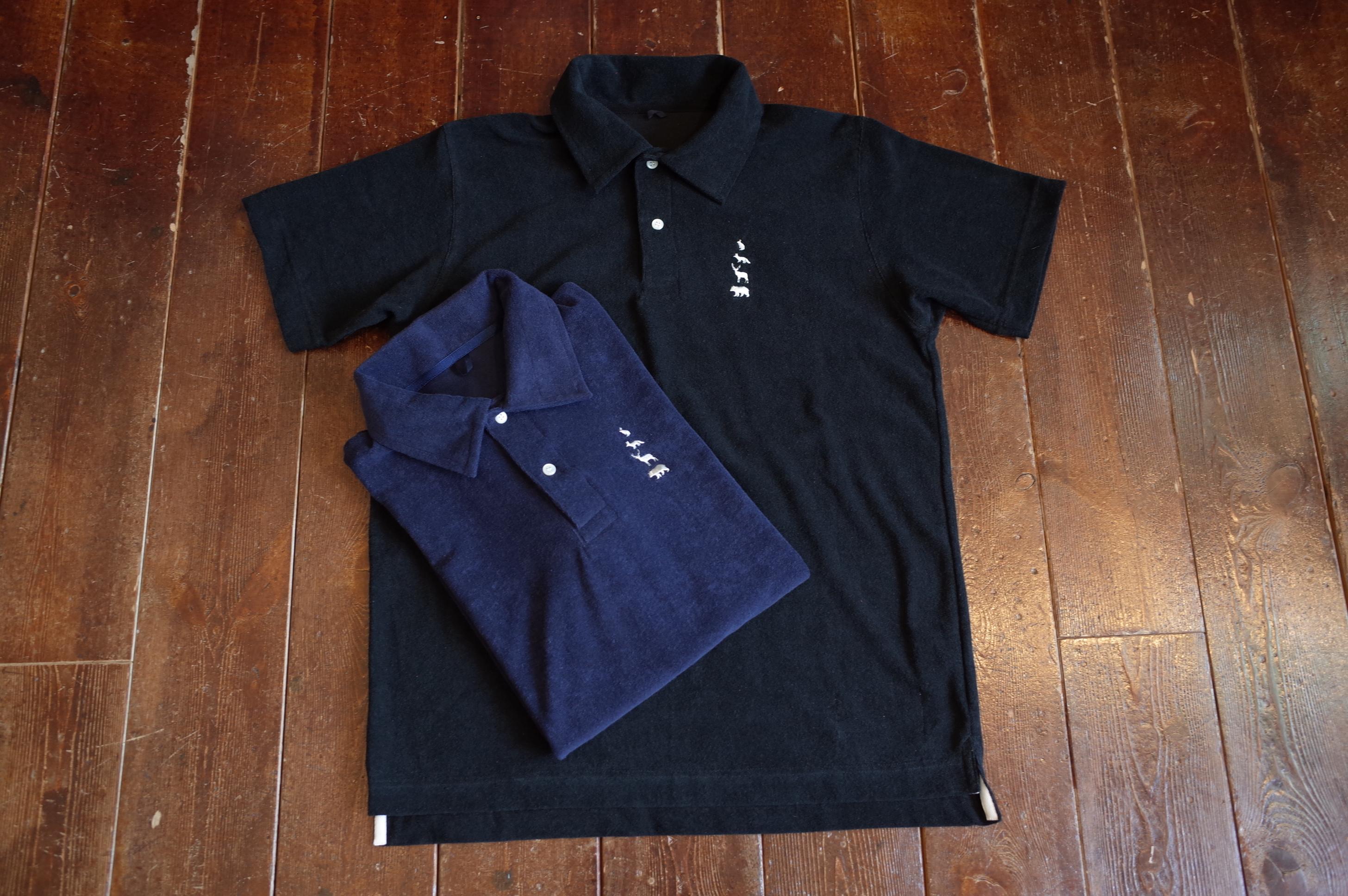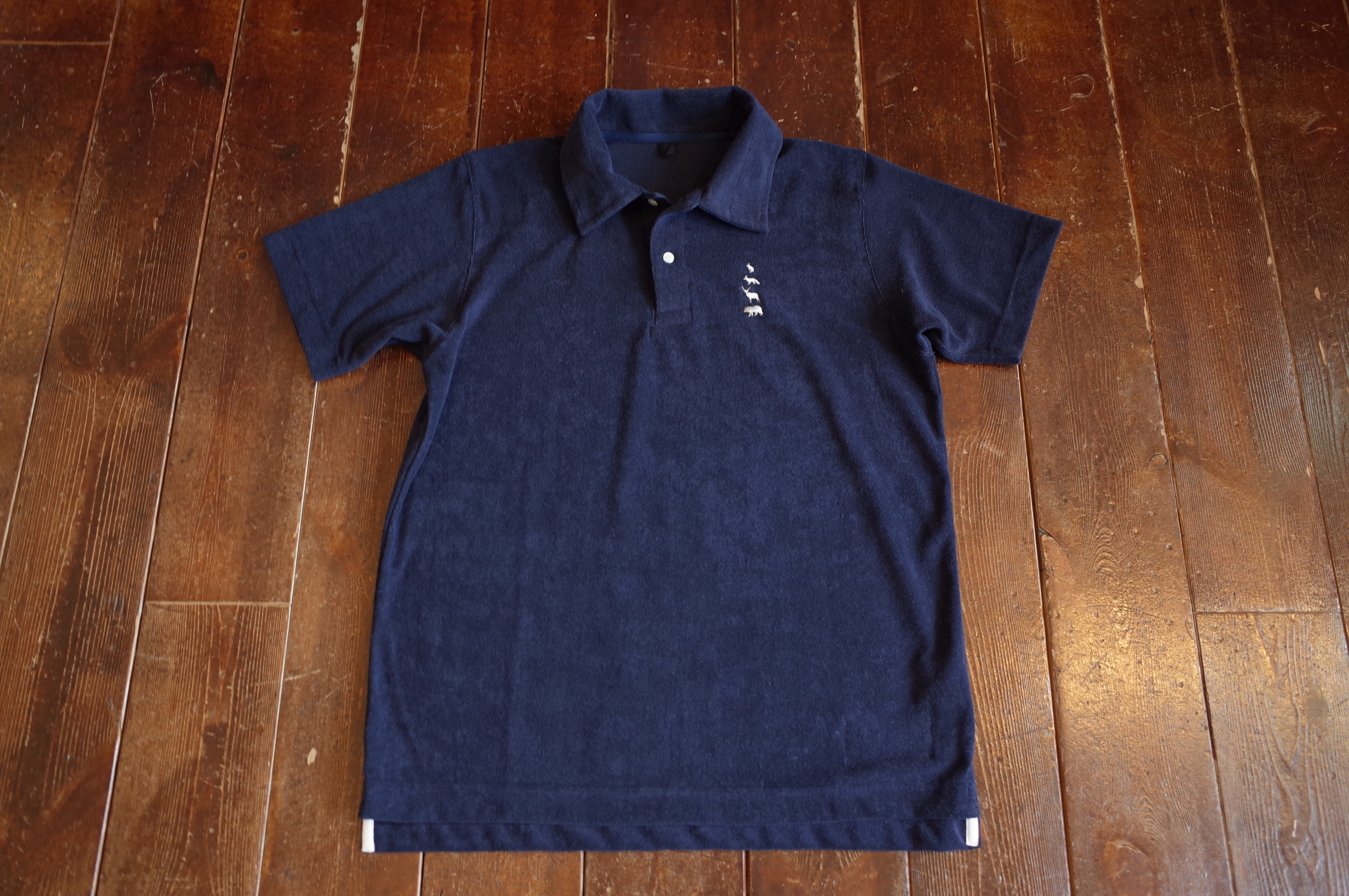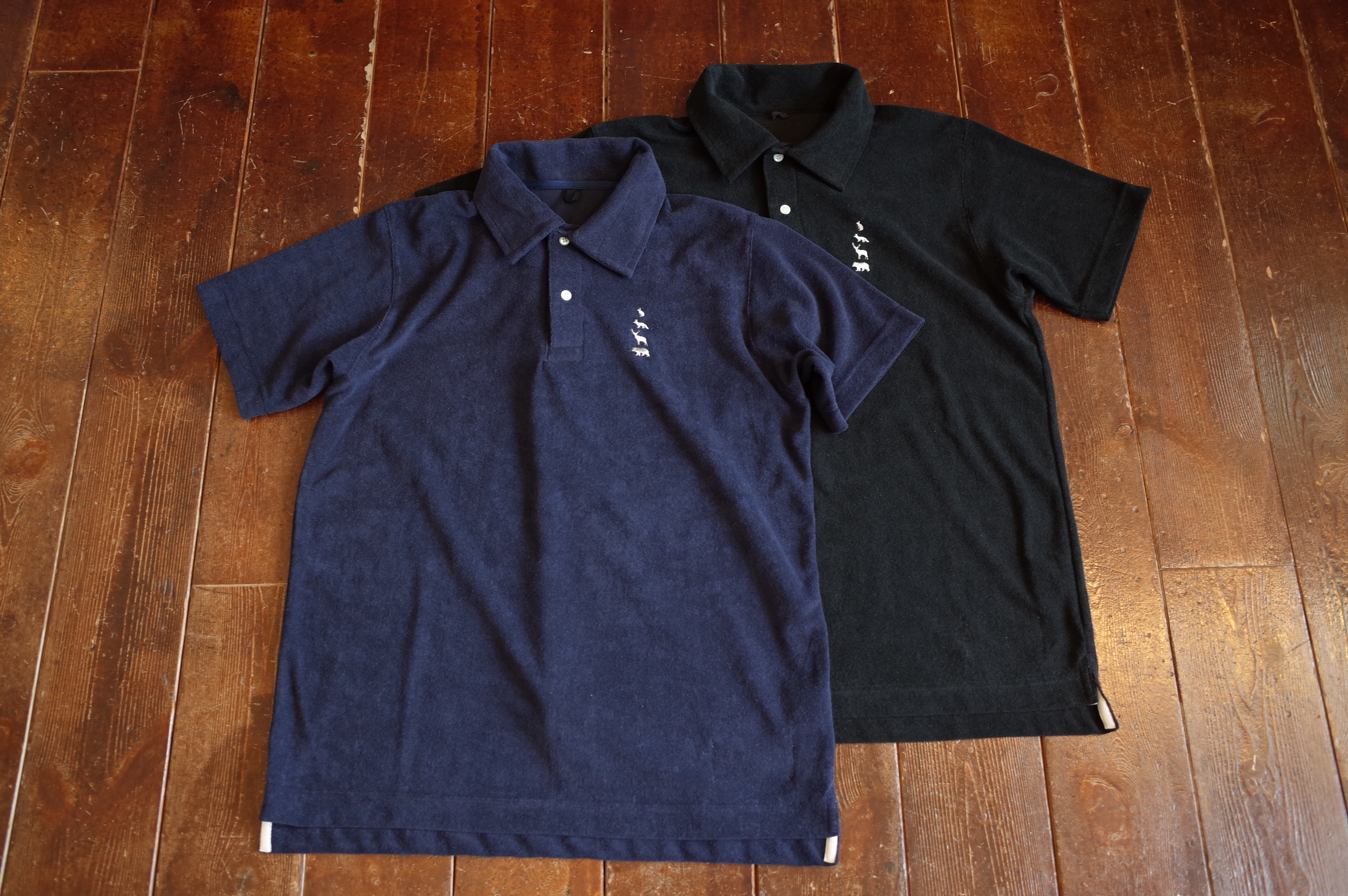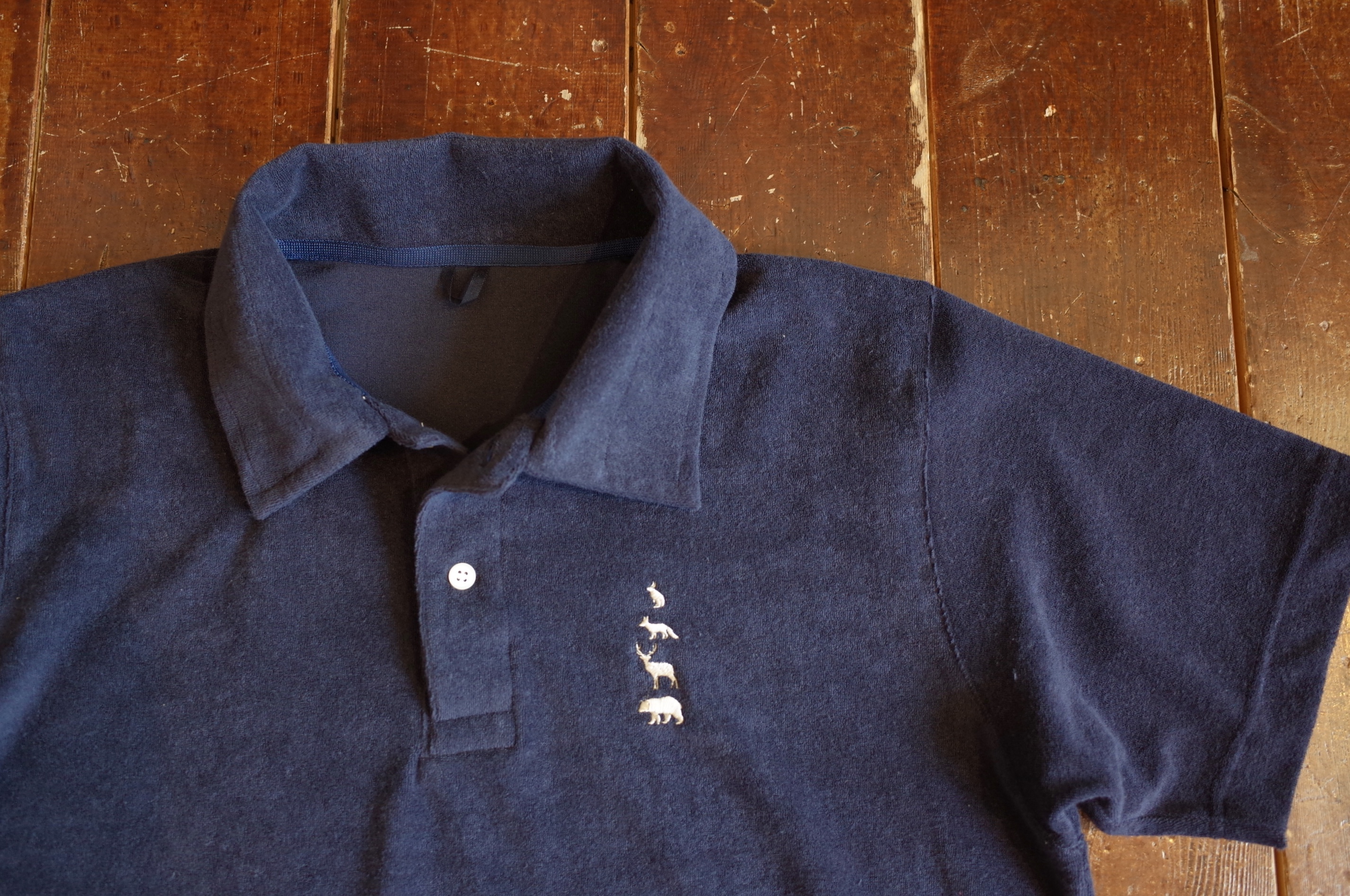 動物刺繍のパイル地ポロ、