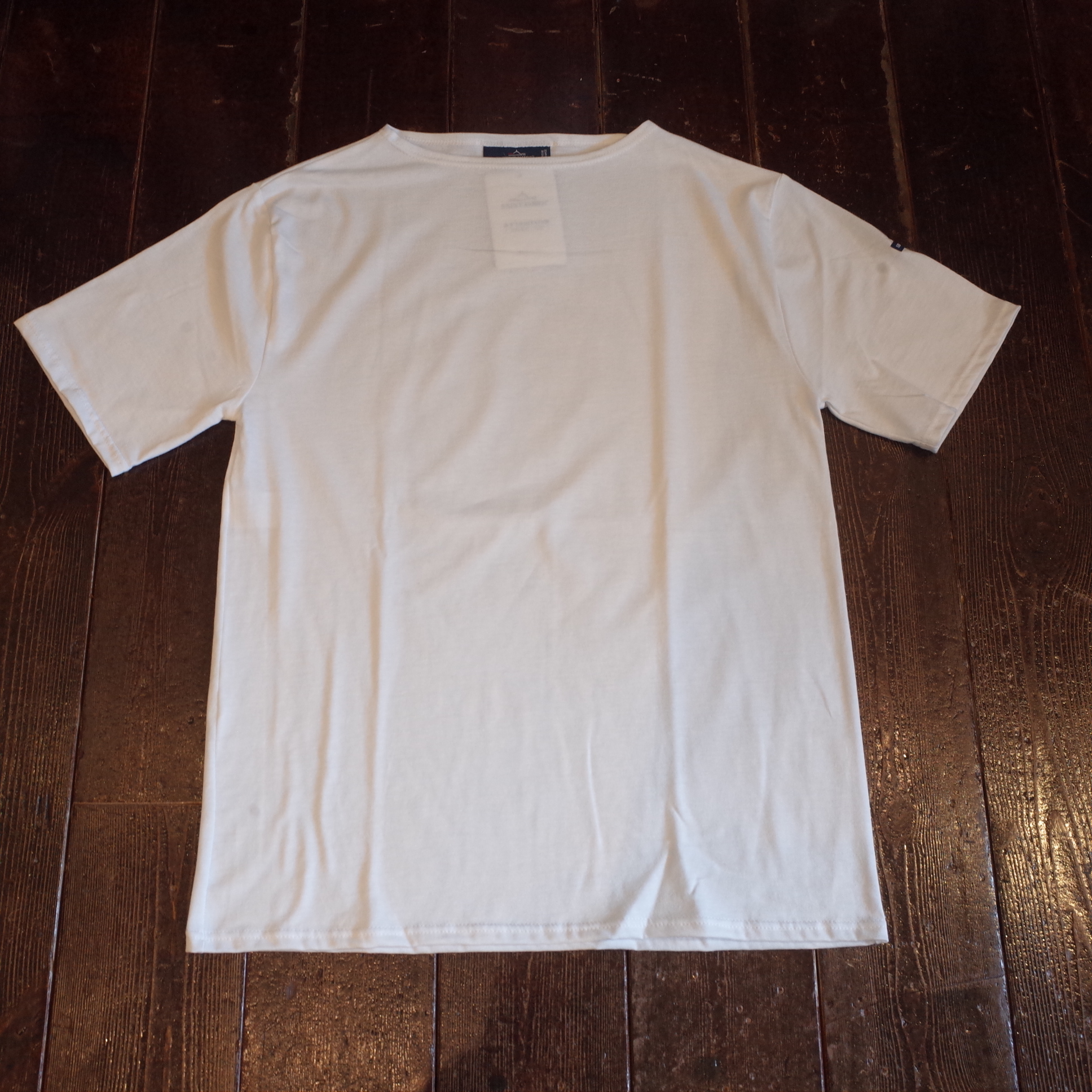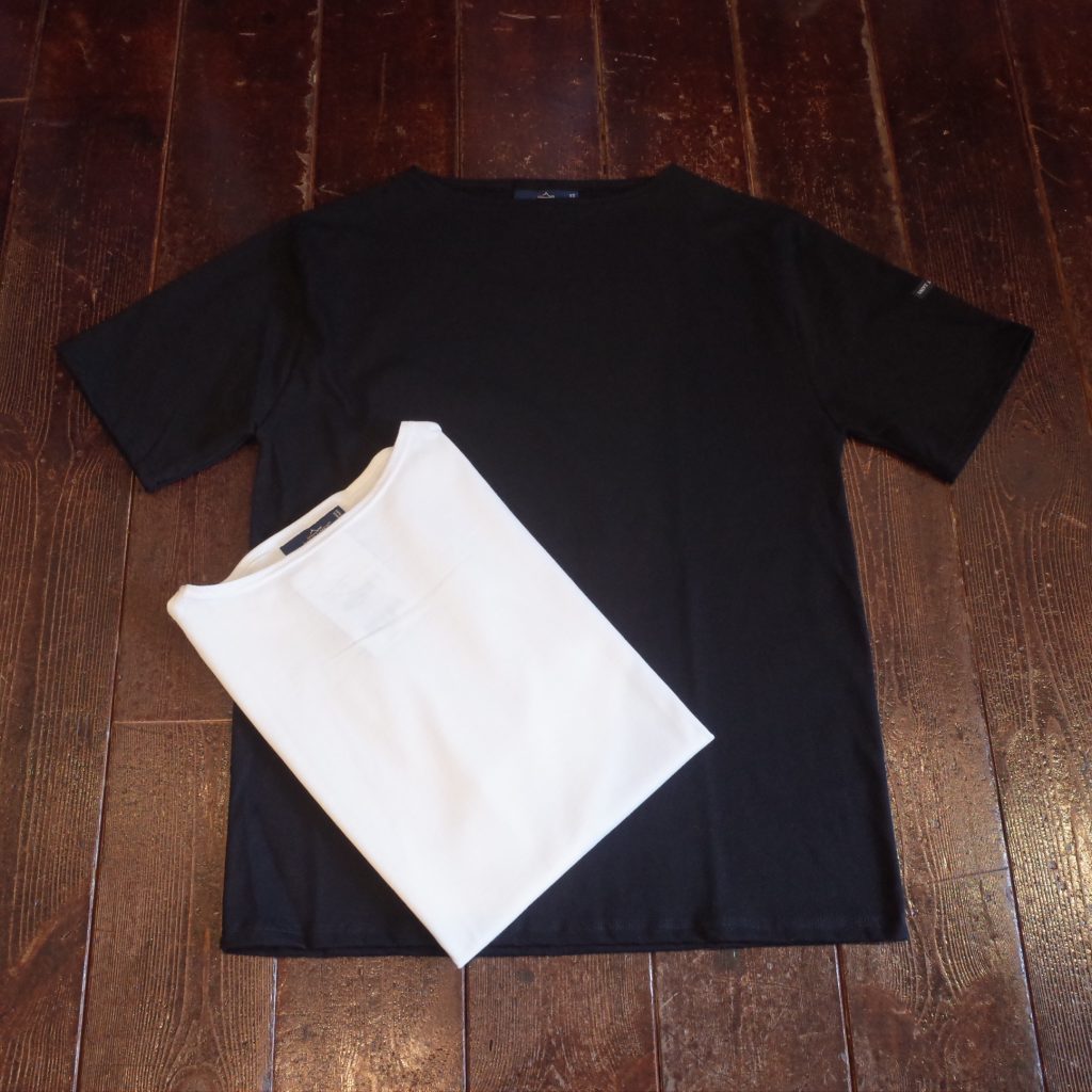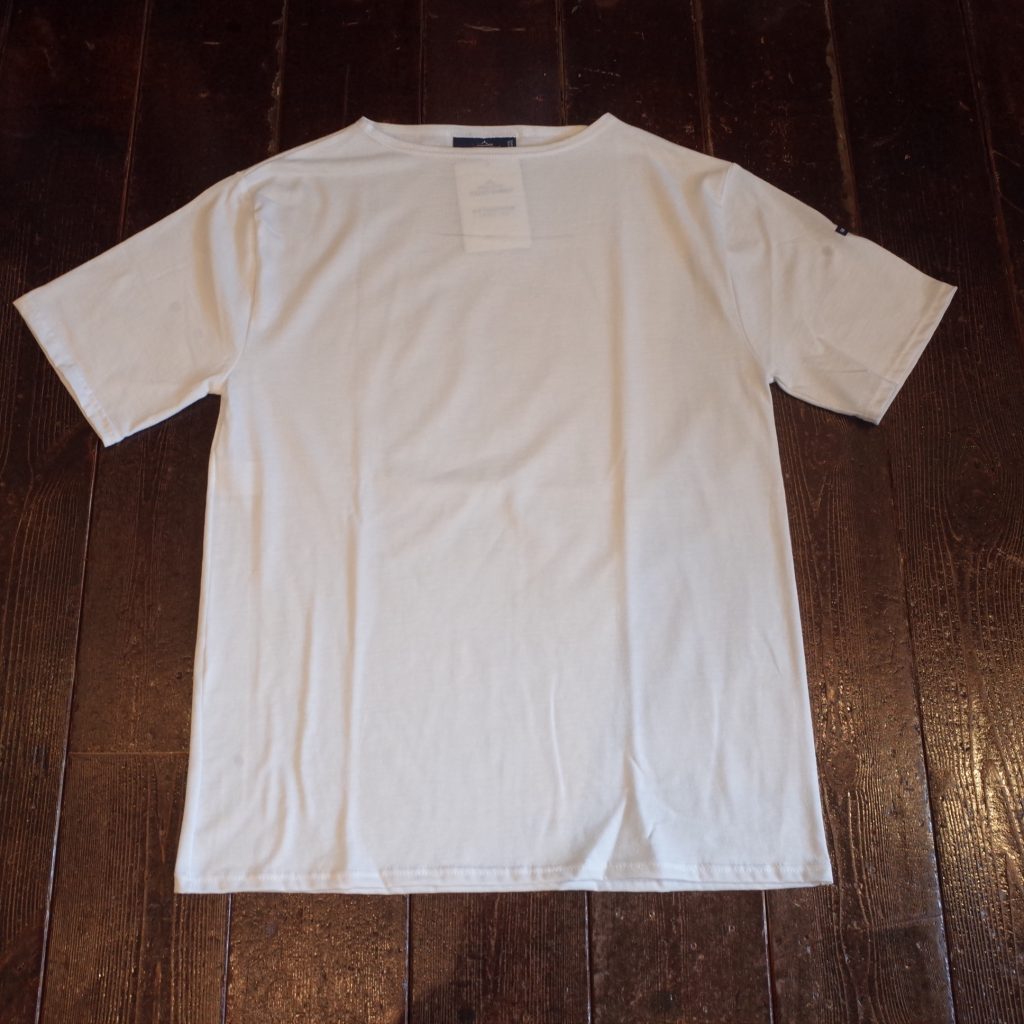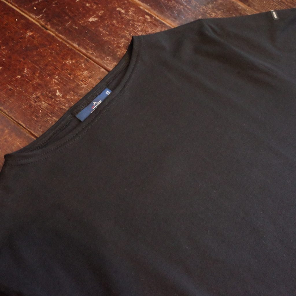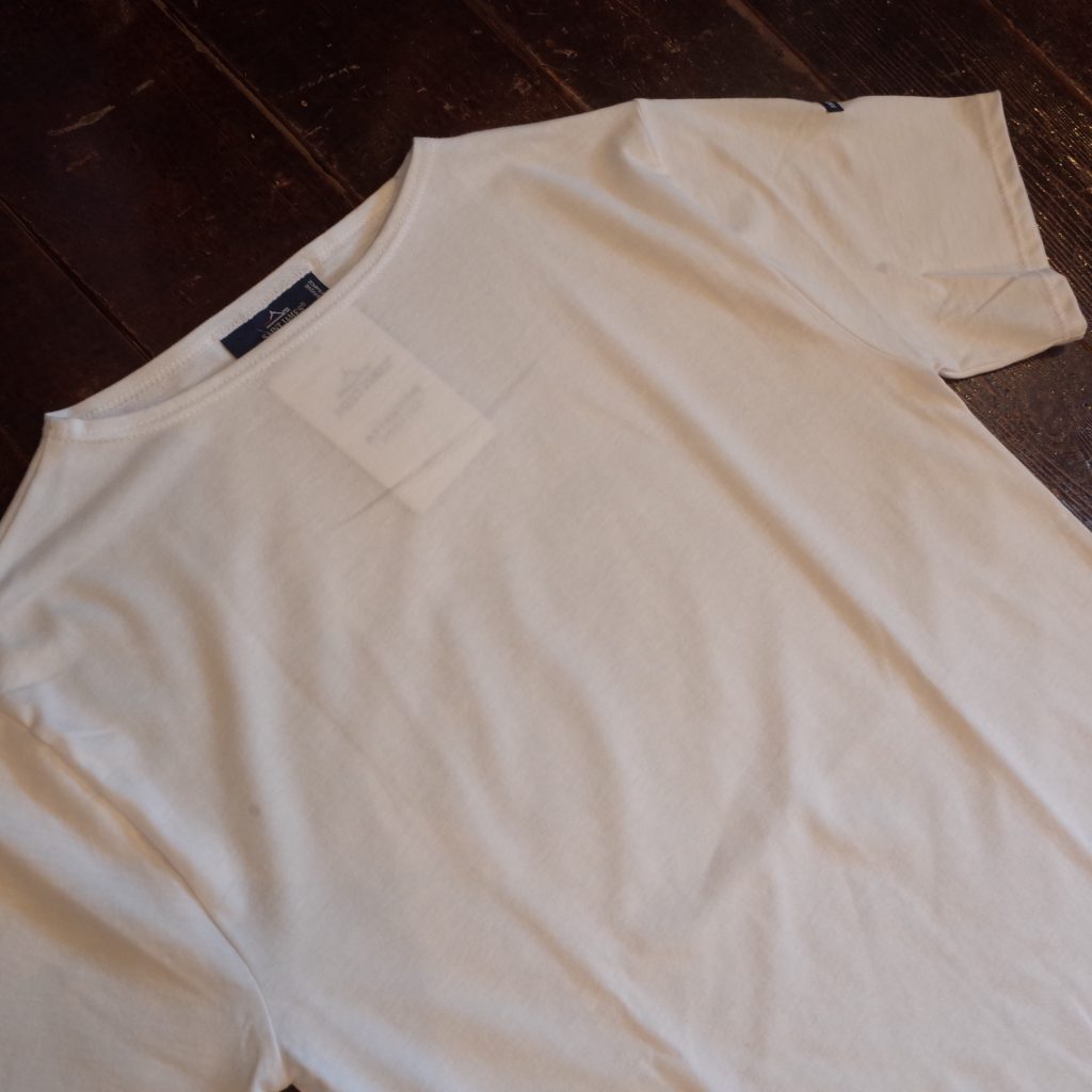 すっきりしたボートネックに、