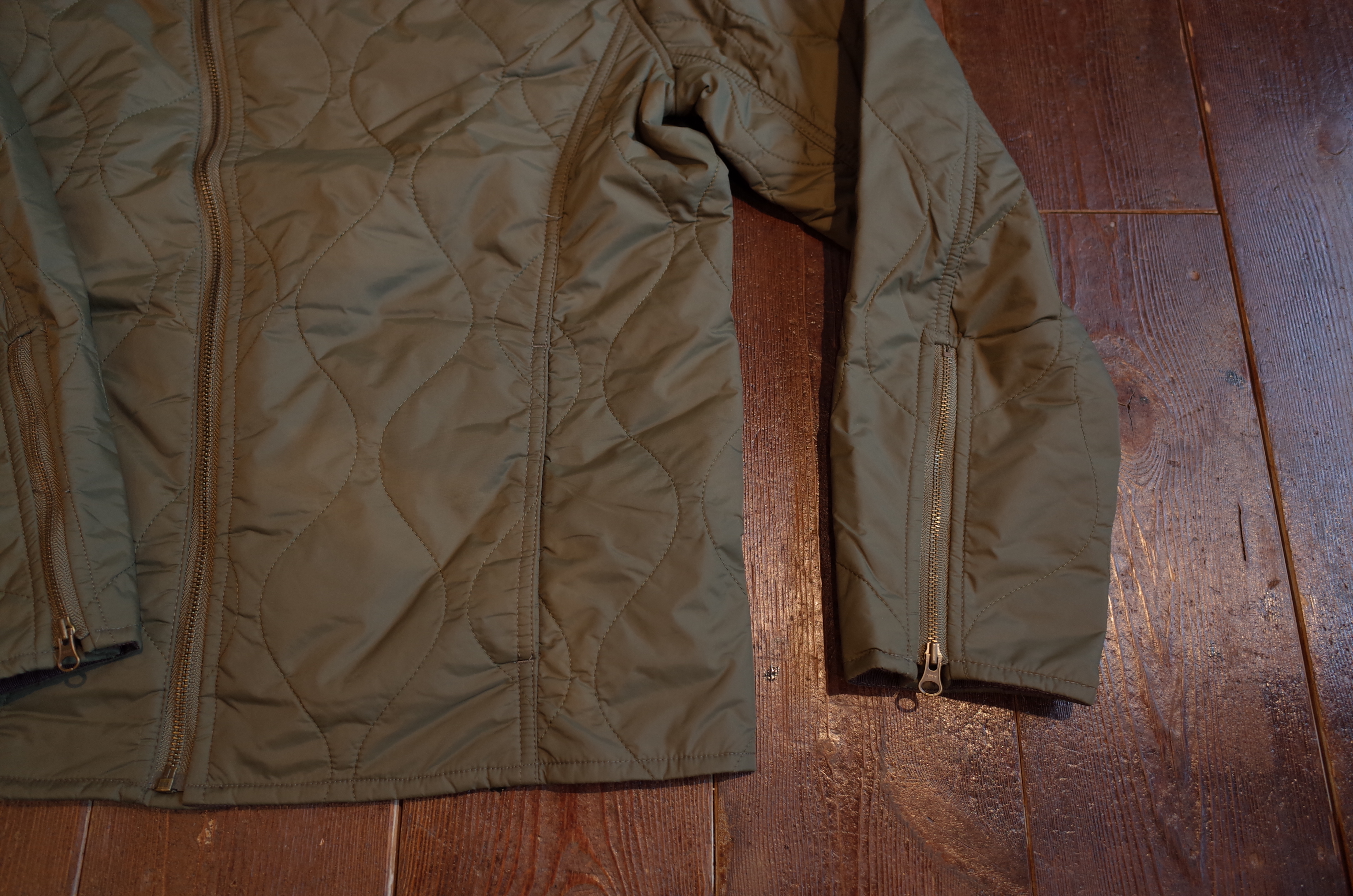 名前の通り、ライナー的で薄手のナイロン・キルトは、