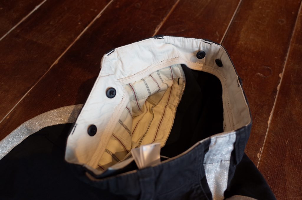 内側にサスペンダーのボタン付き、