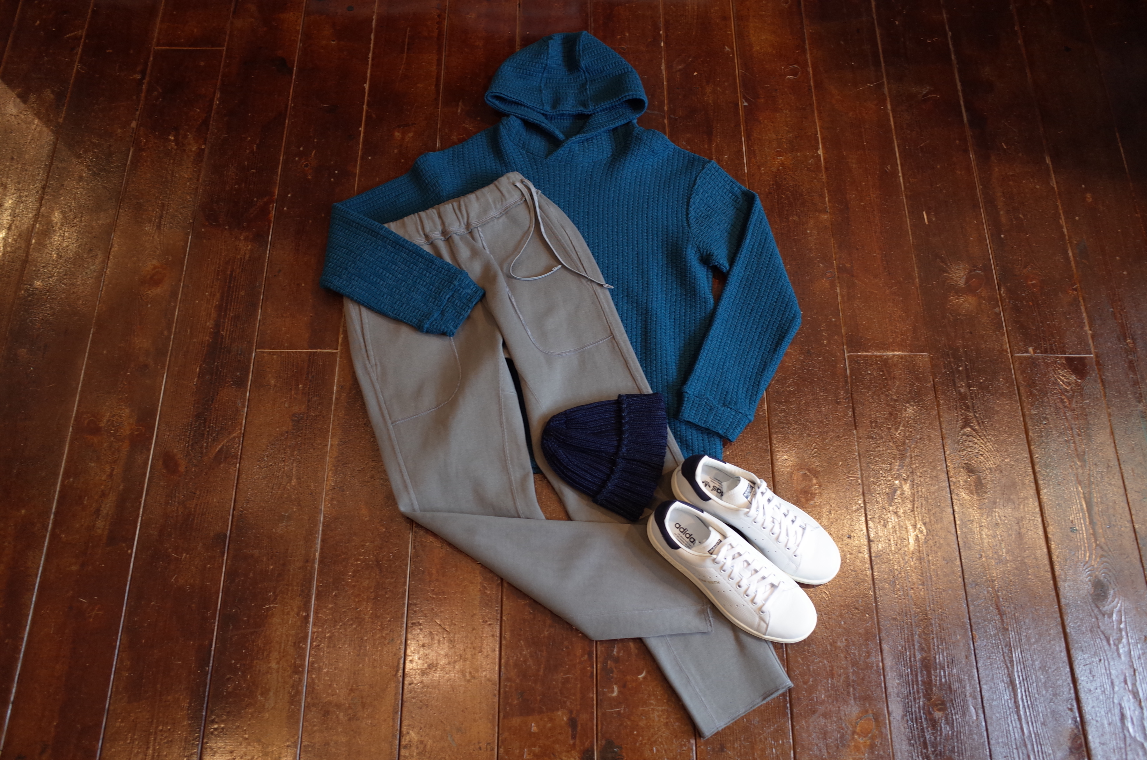 スウェットパンツのような穿き心地やのに、ニットパンツのように見える、