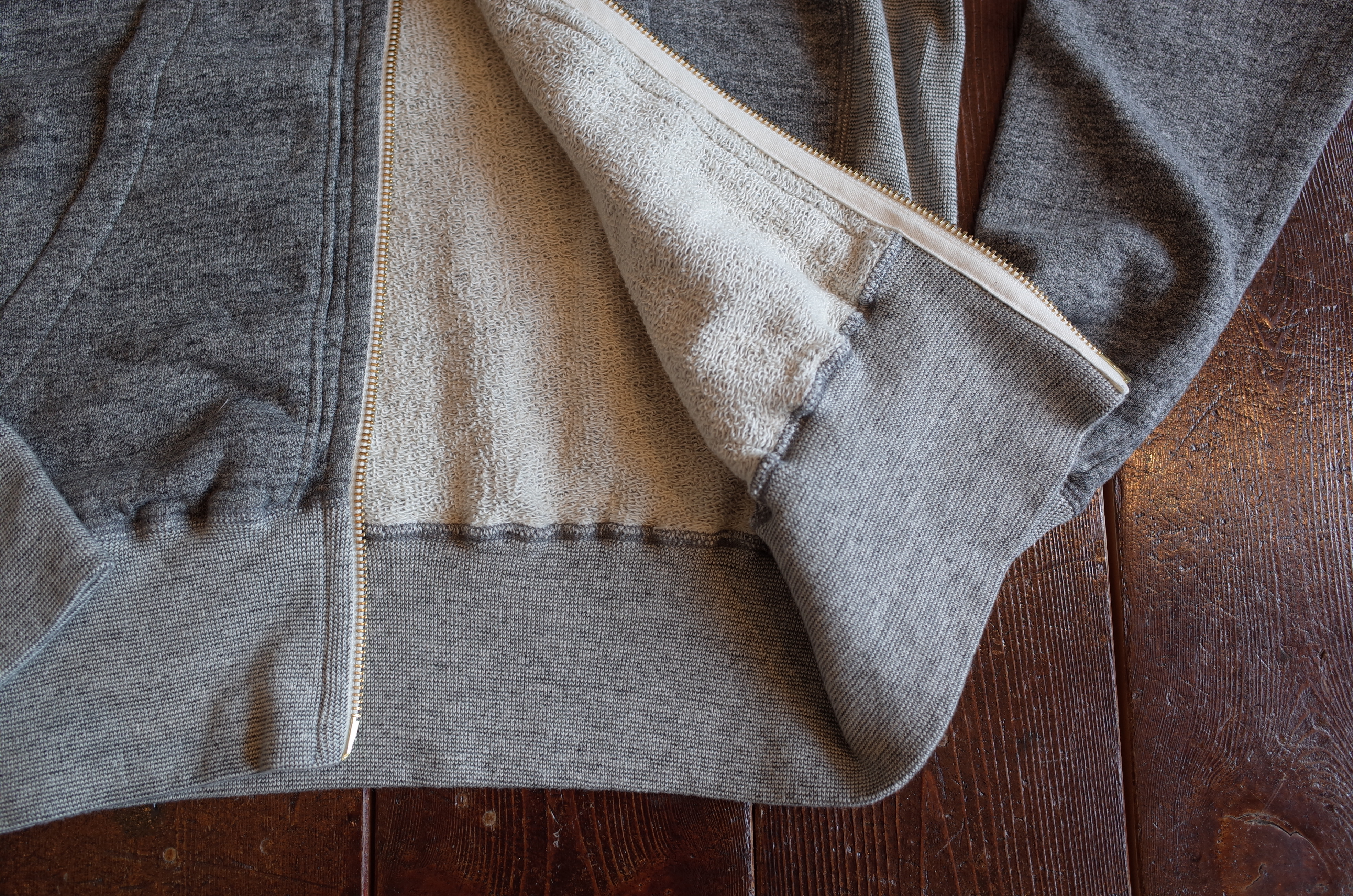 10年ほど前にやってた Kepani の裏パイルスウェットで、7分でパーカーってのがうちにあり、