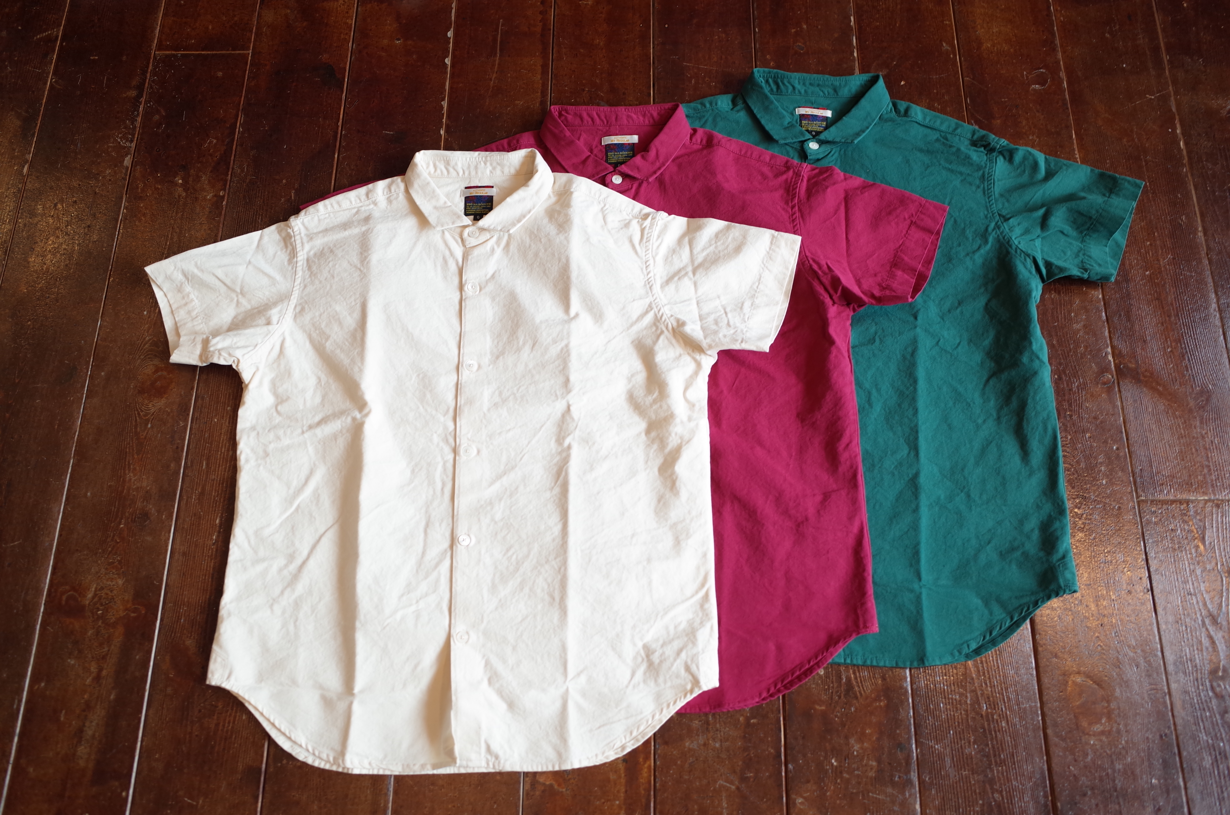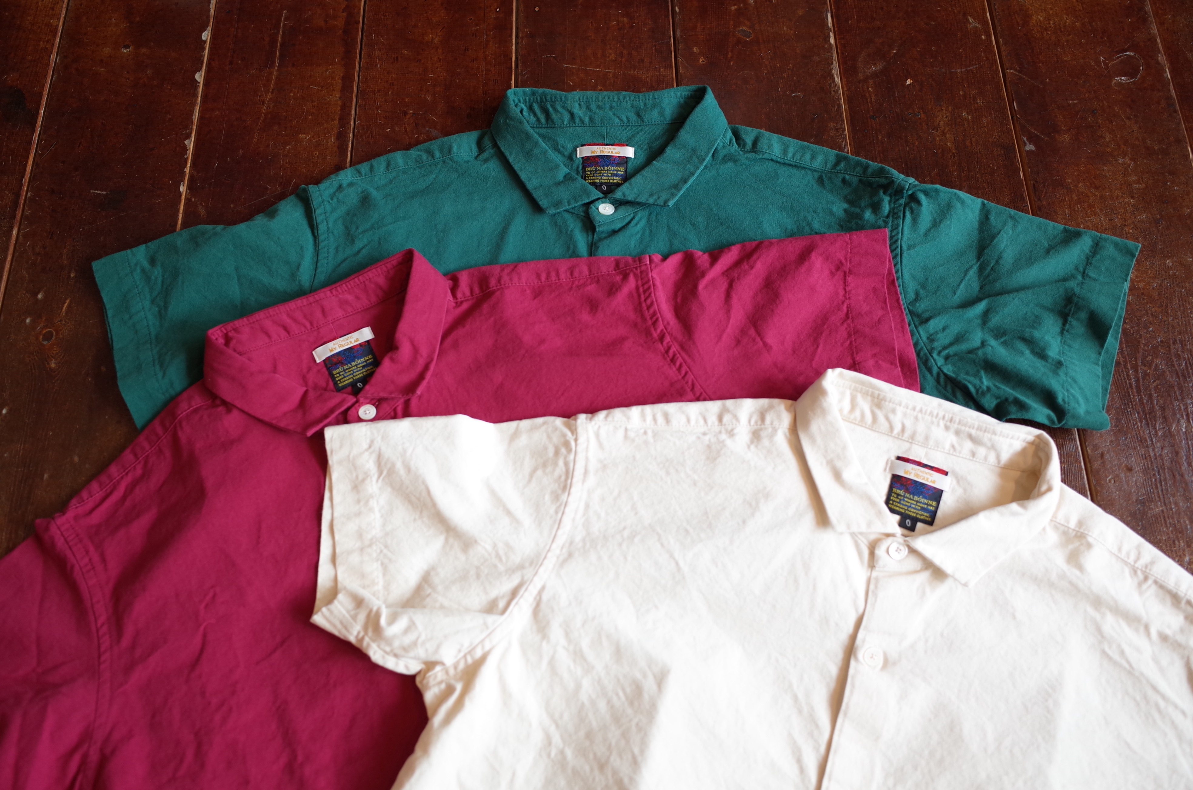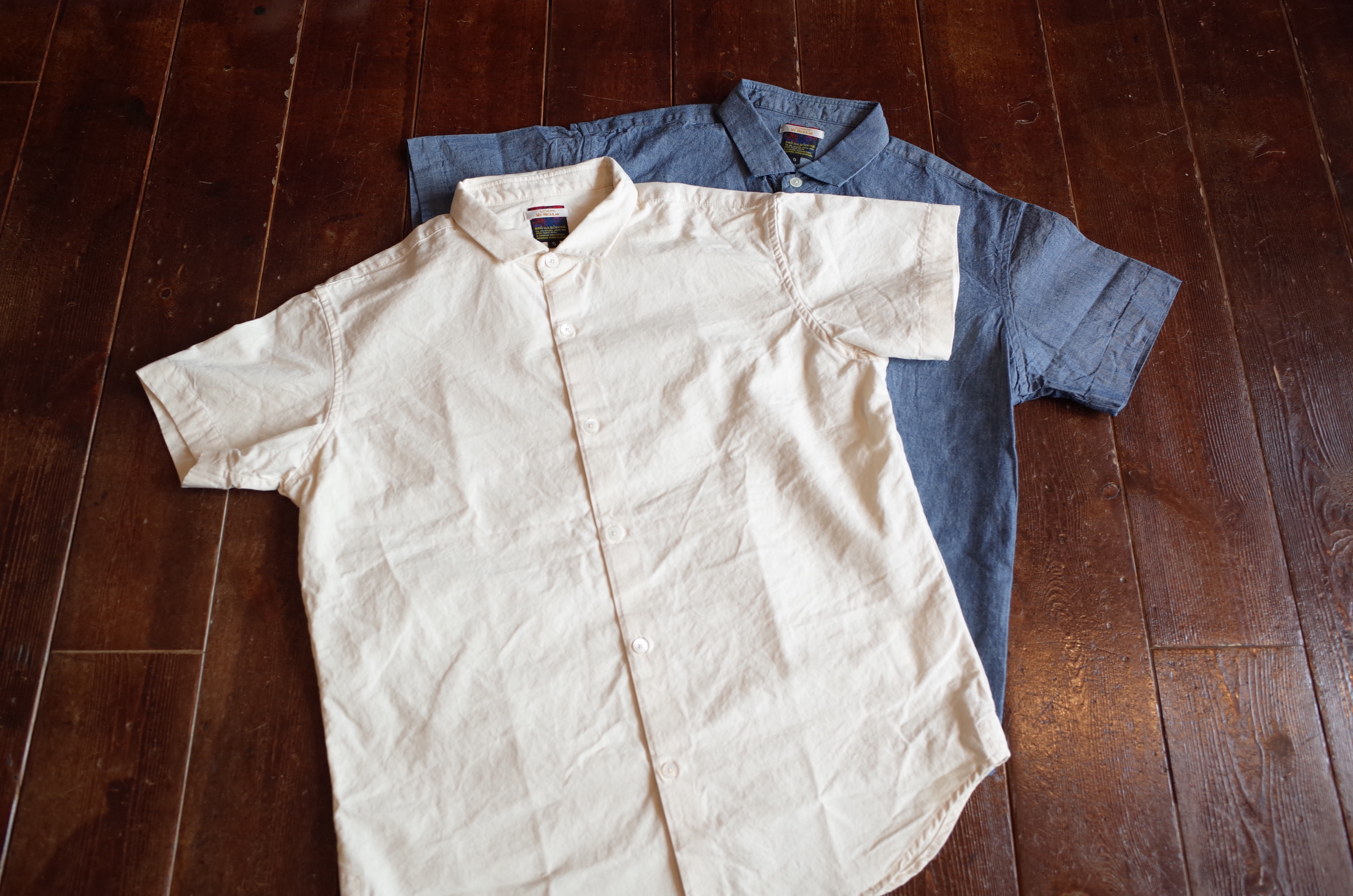 ボインちゃんの、夏の定番的ちび襟半袖シャツ、