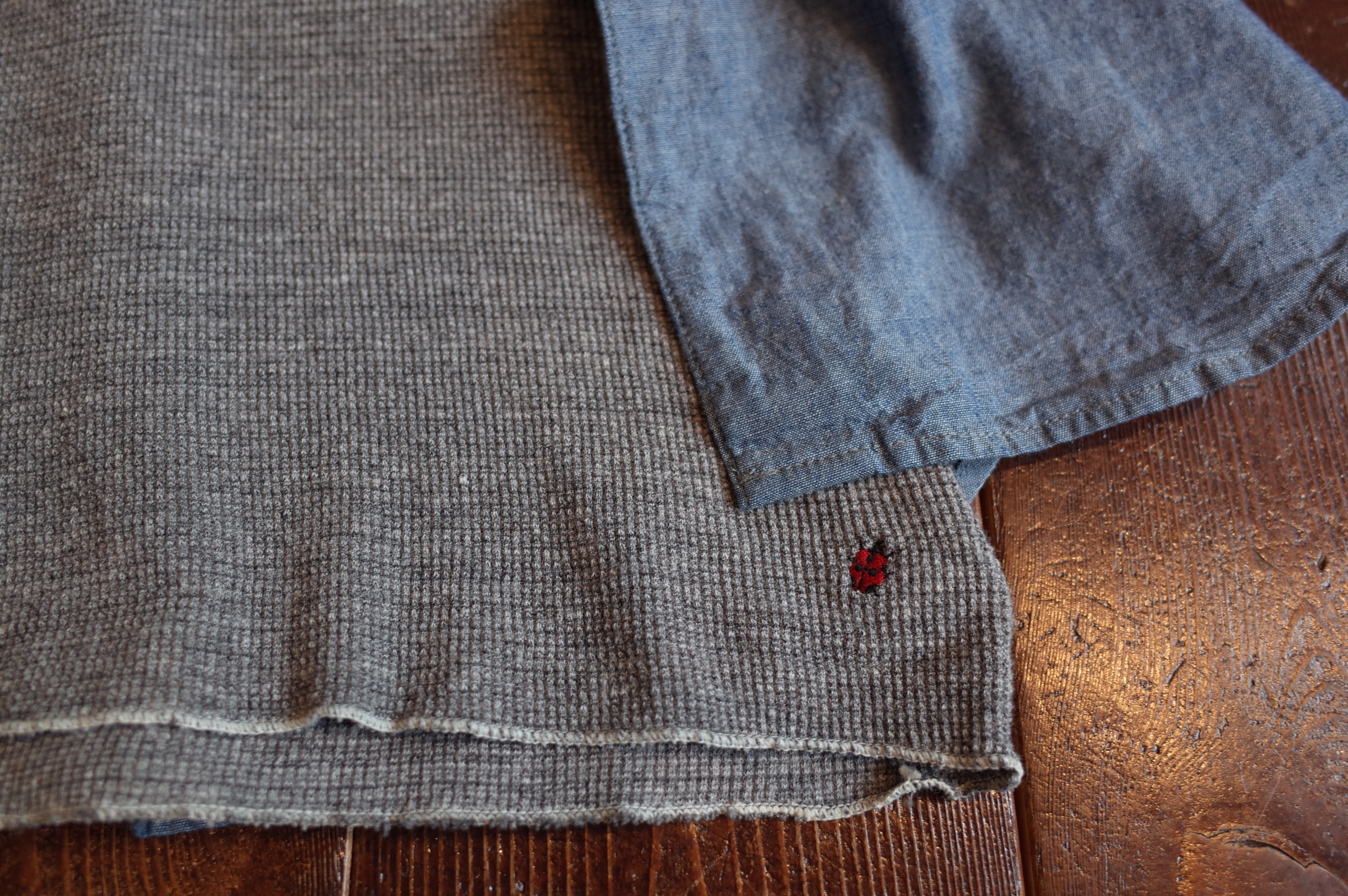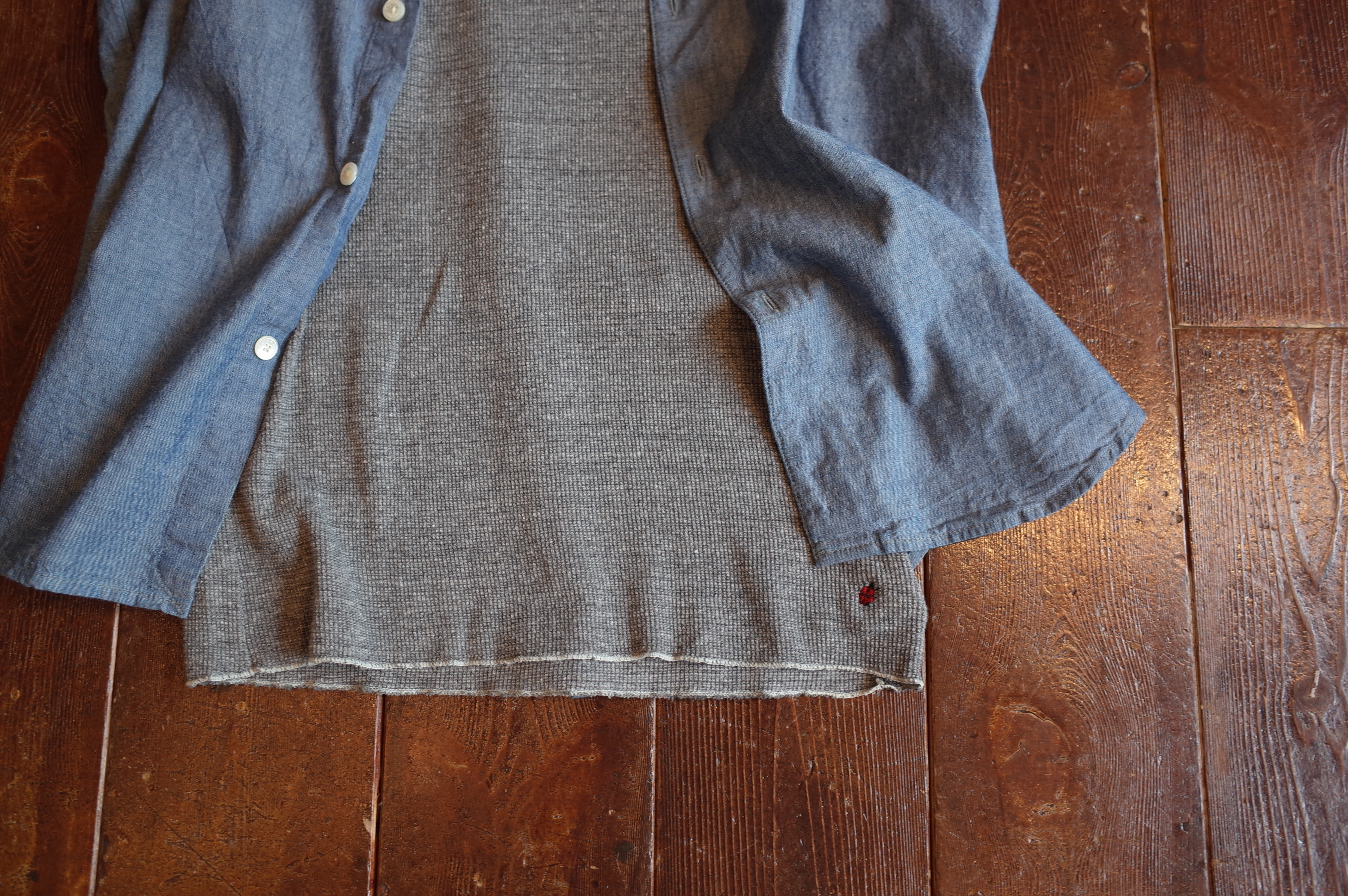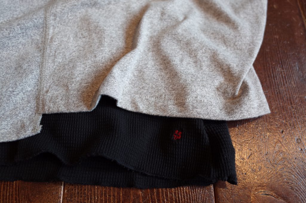ワッフル地で着丈長めで、
