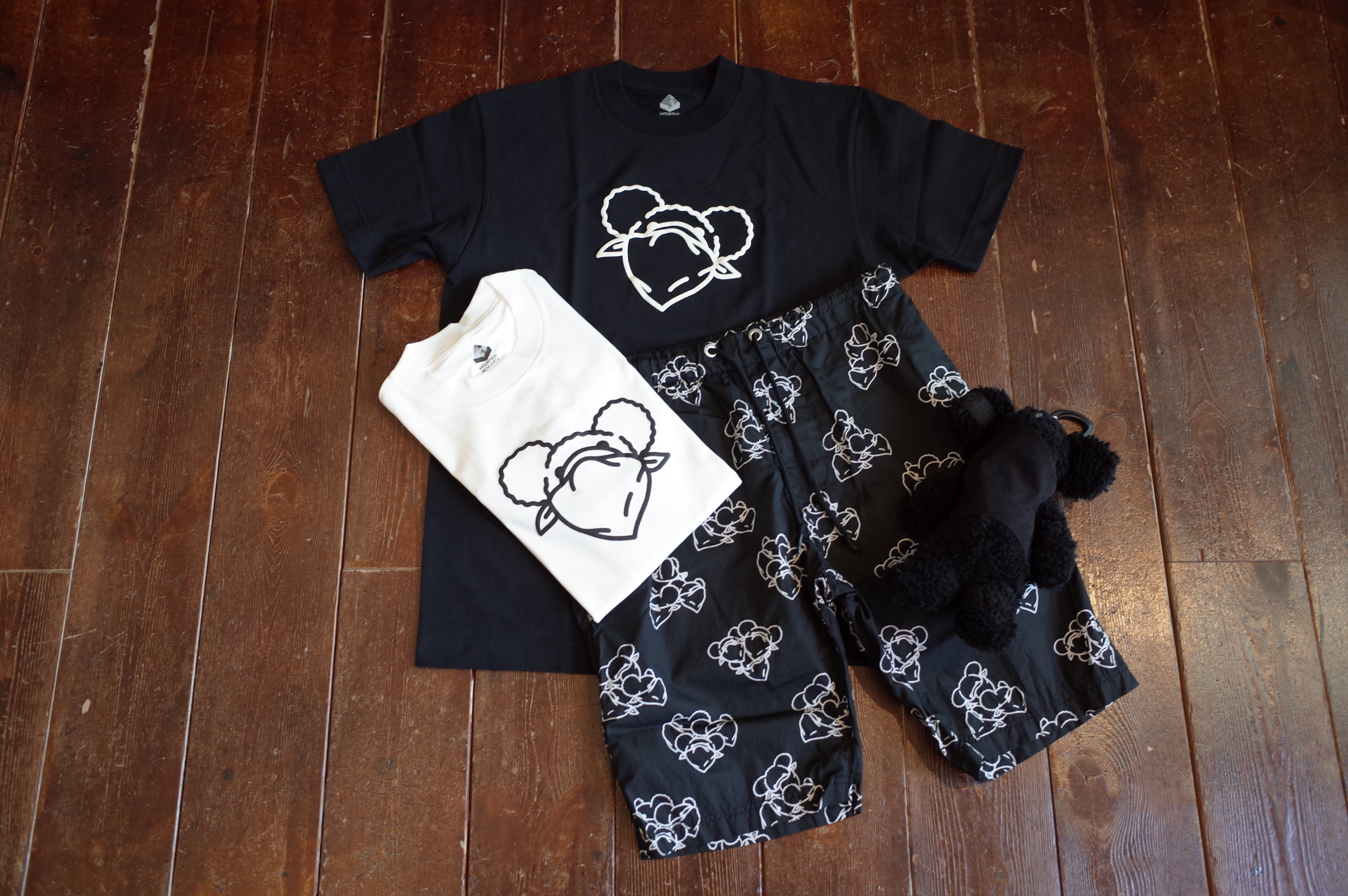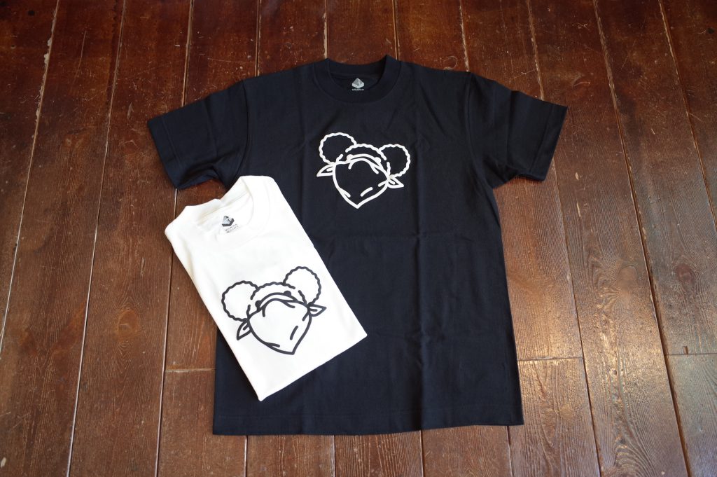 Cotton regular tee with double masked bears at front & back in thick foamy 3D print.