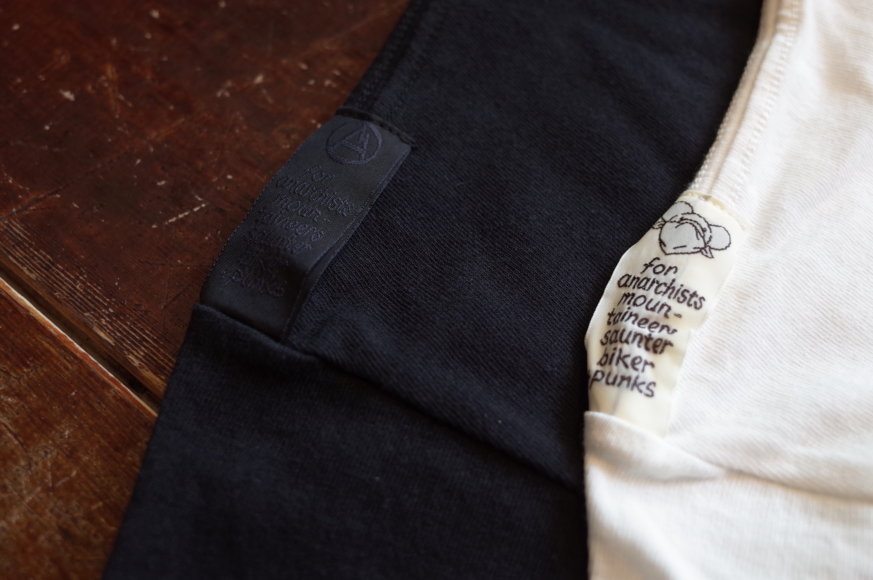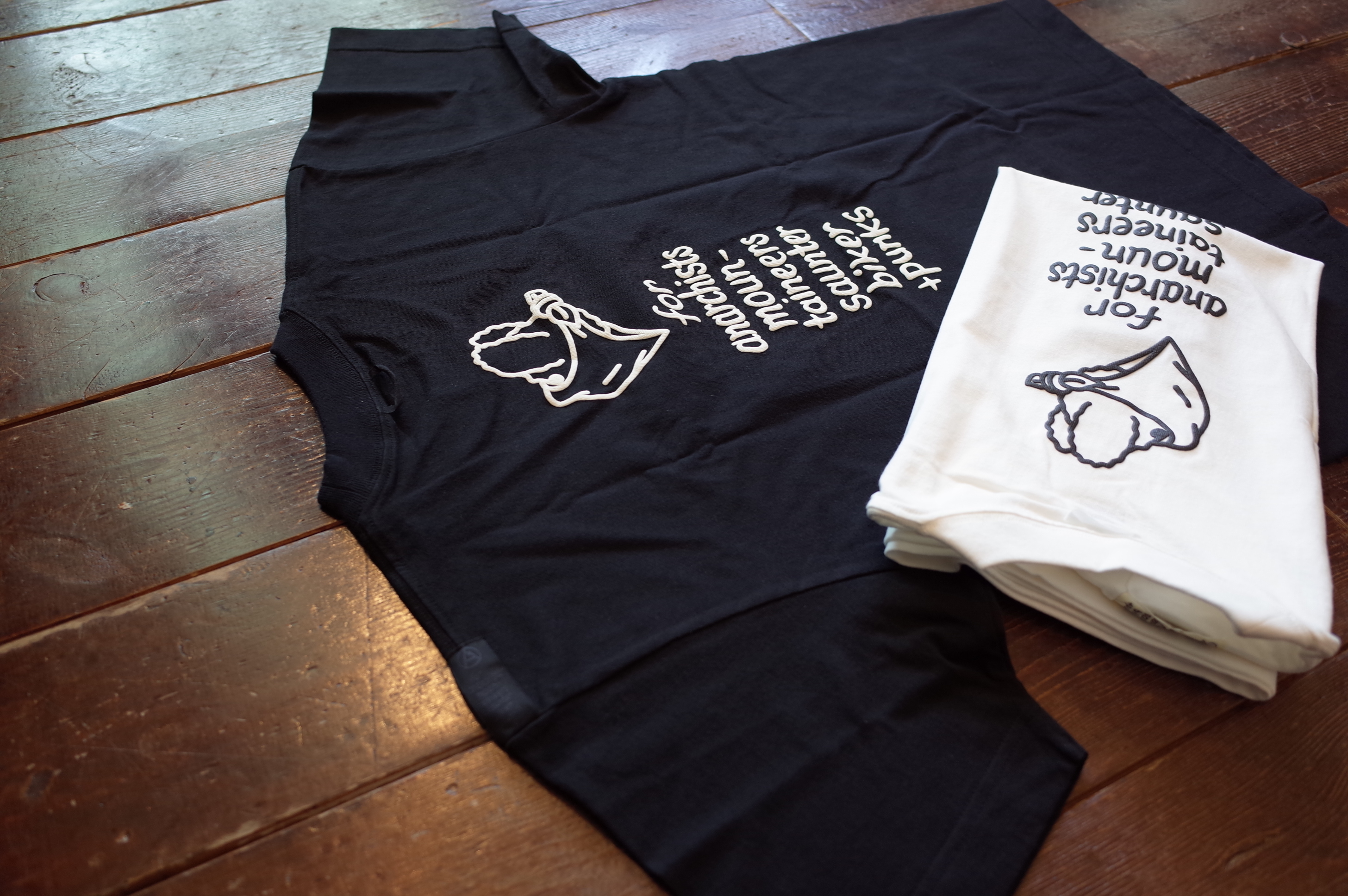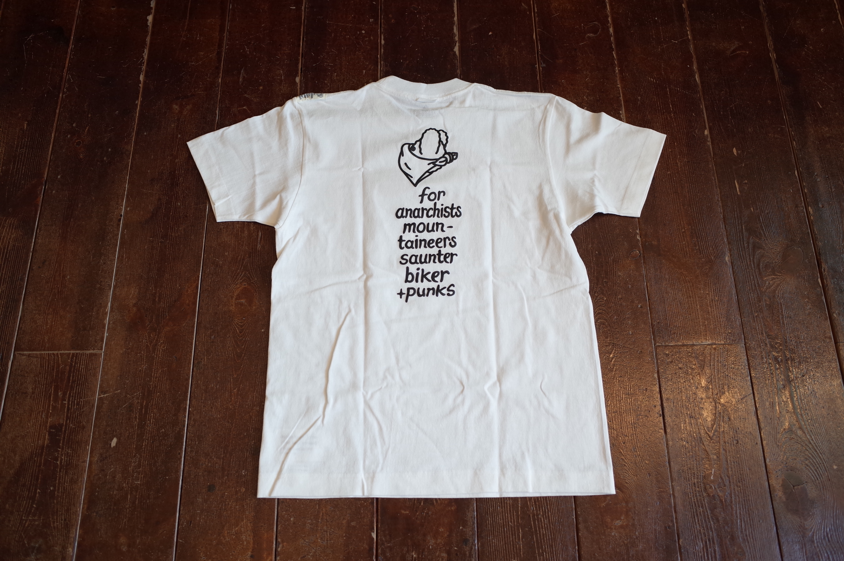 背中にスローガンをプリントした、