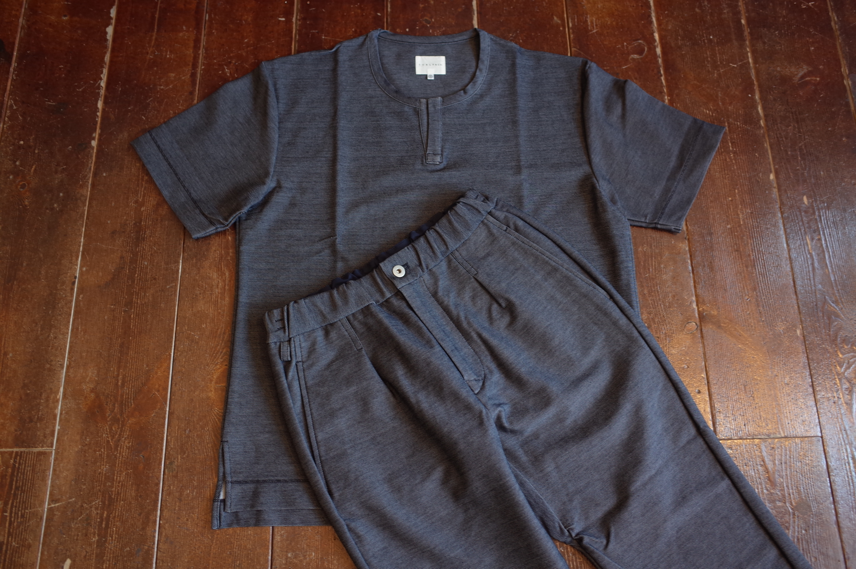 デニムの様に仕上げたジャージー素材、