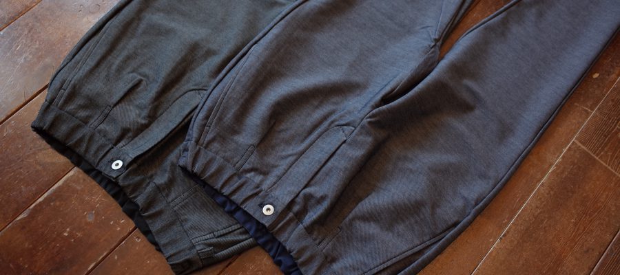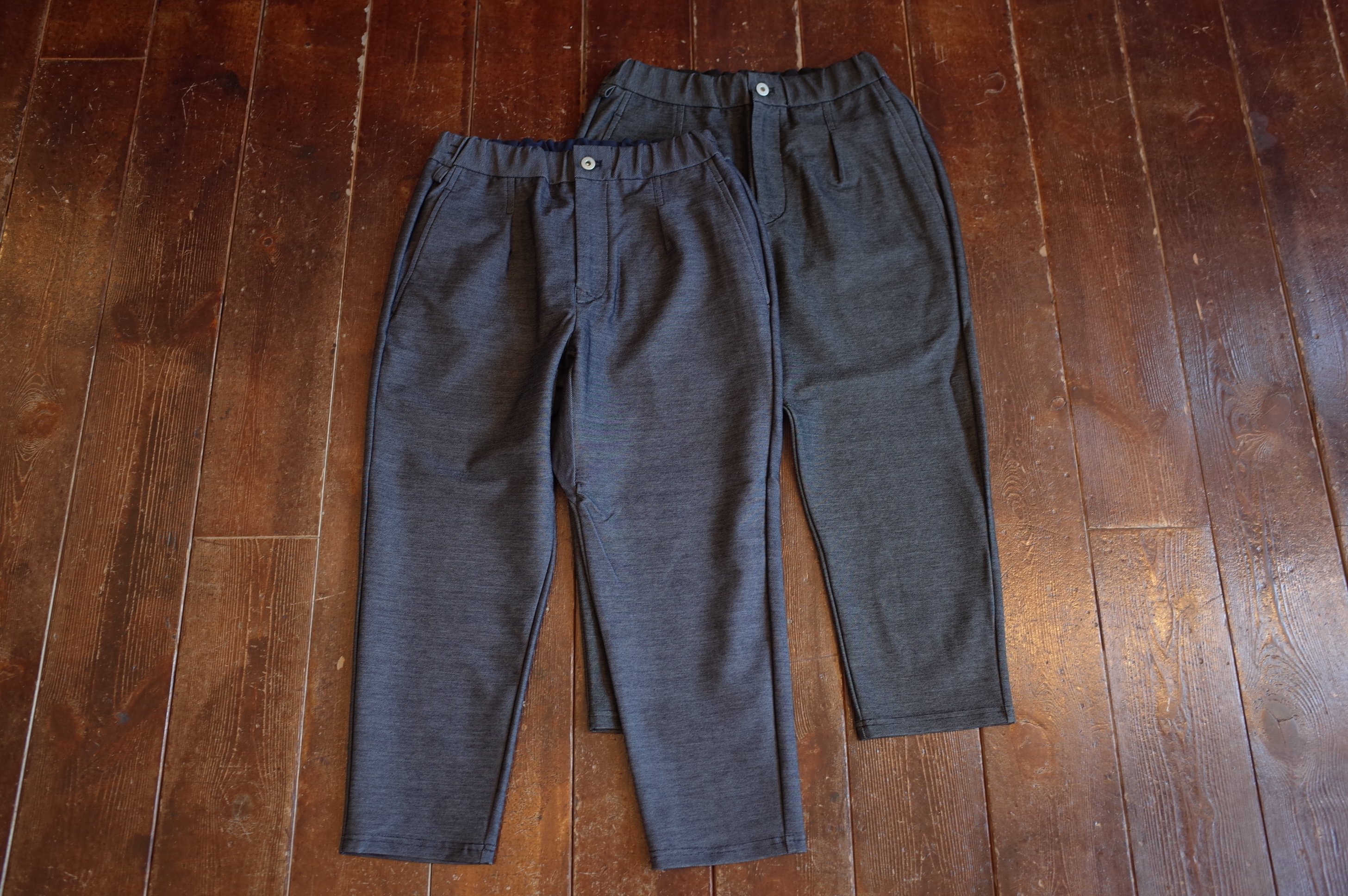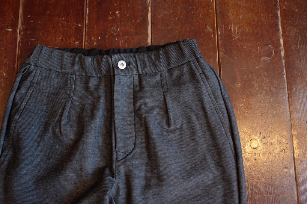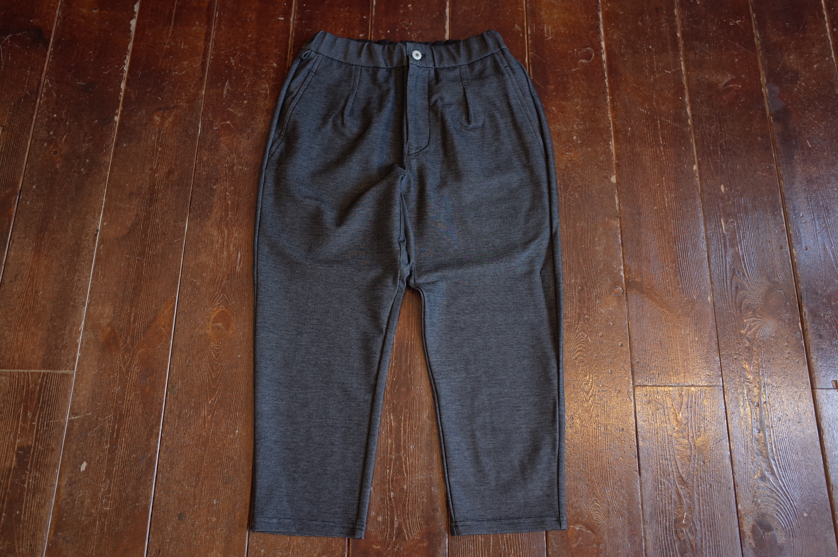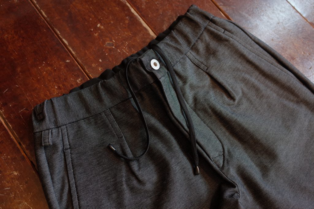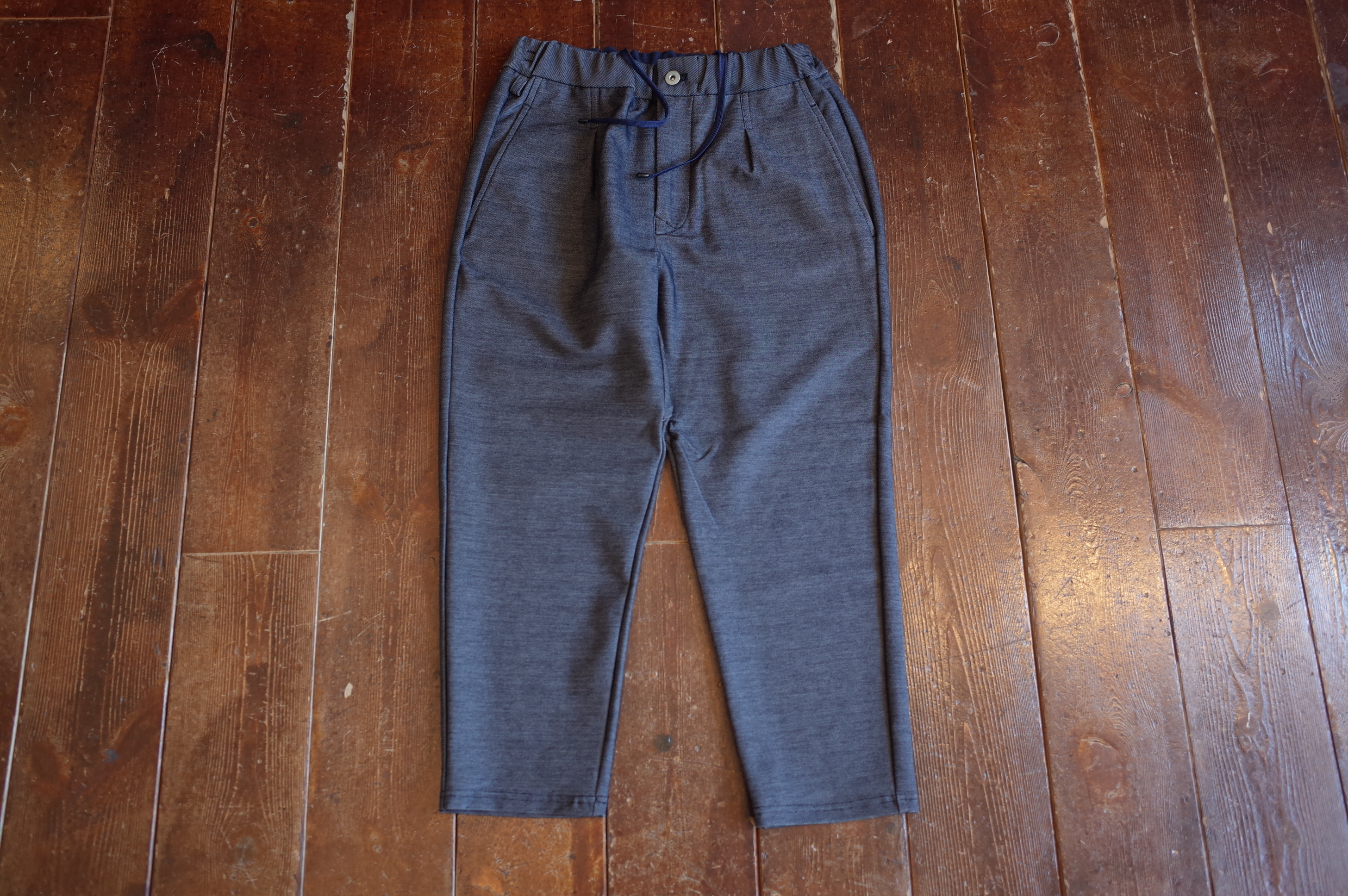 アンクルカットで仕上げたイージーパンツ、