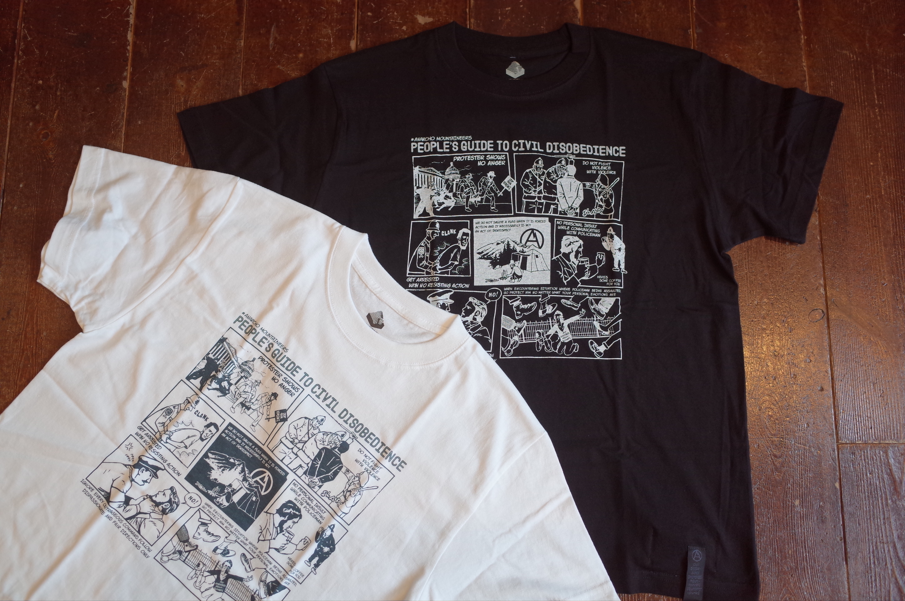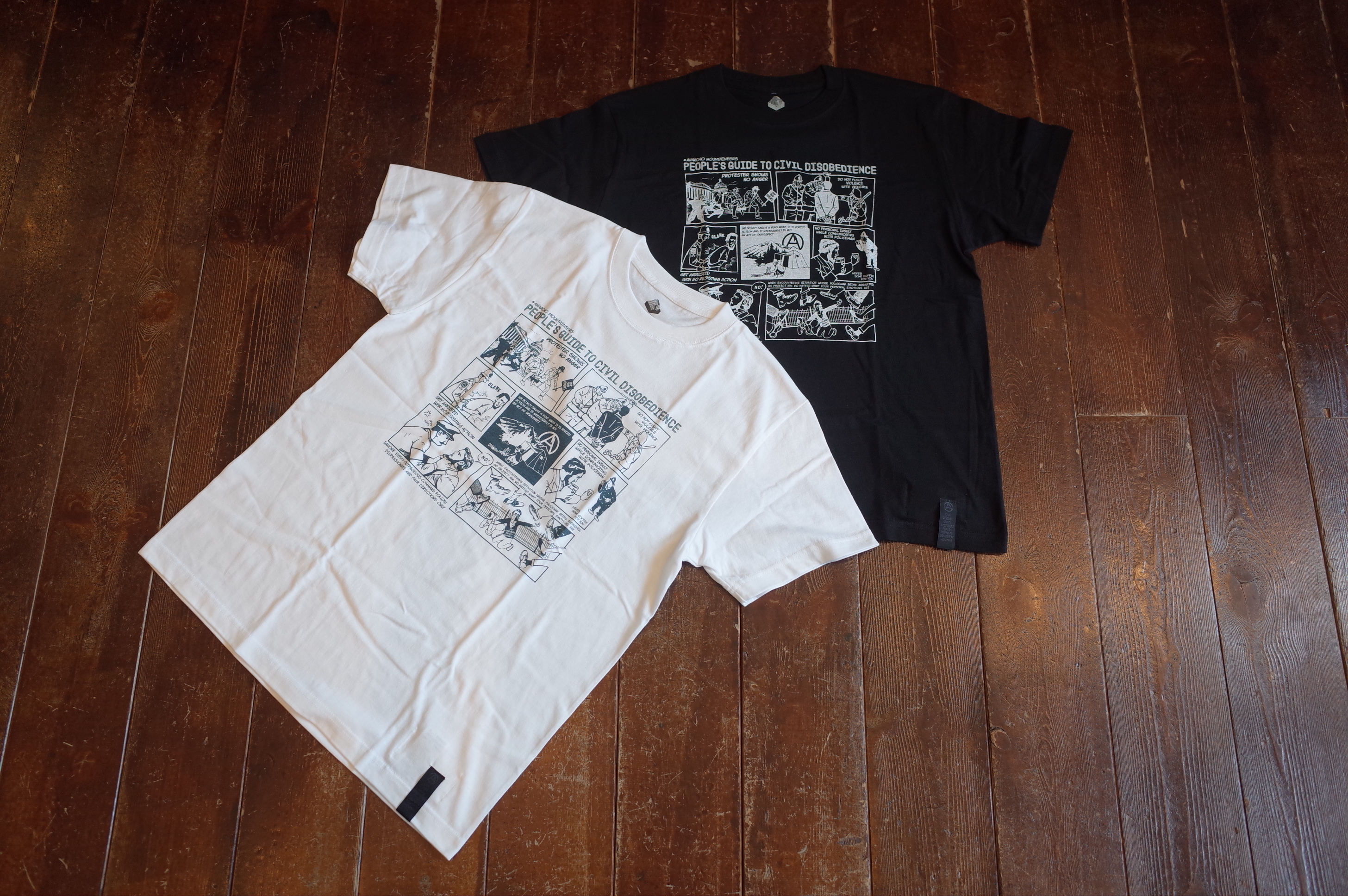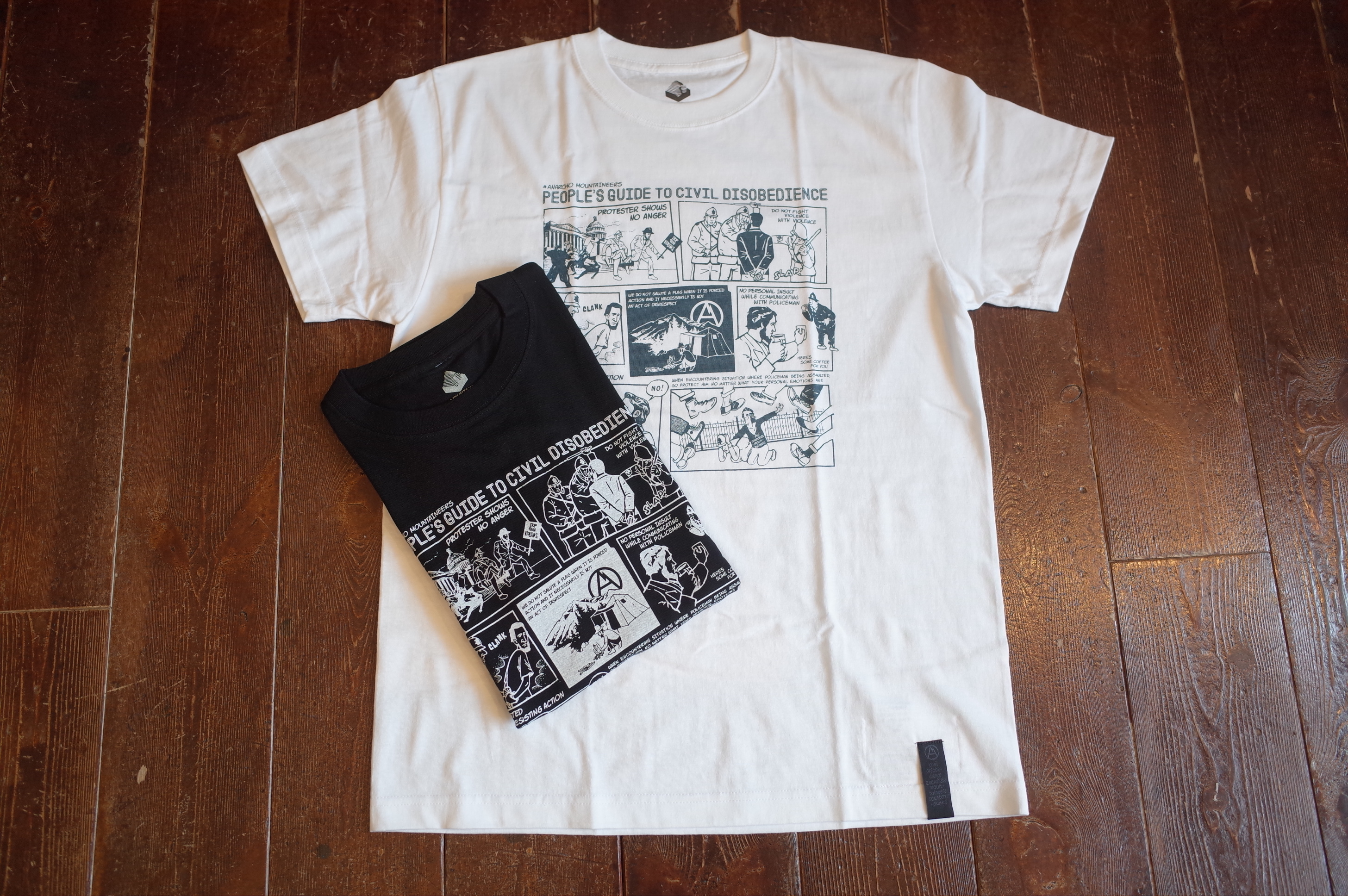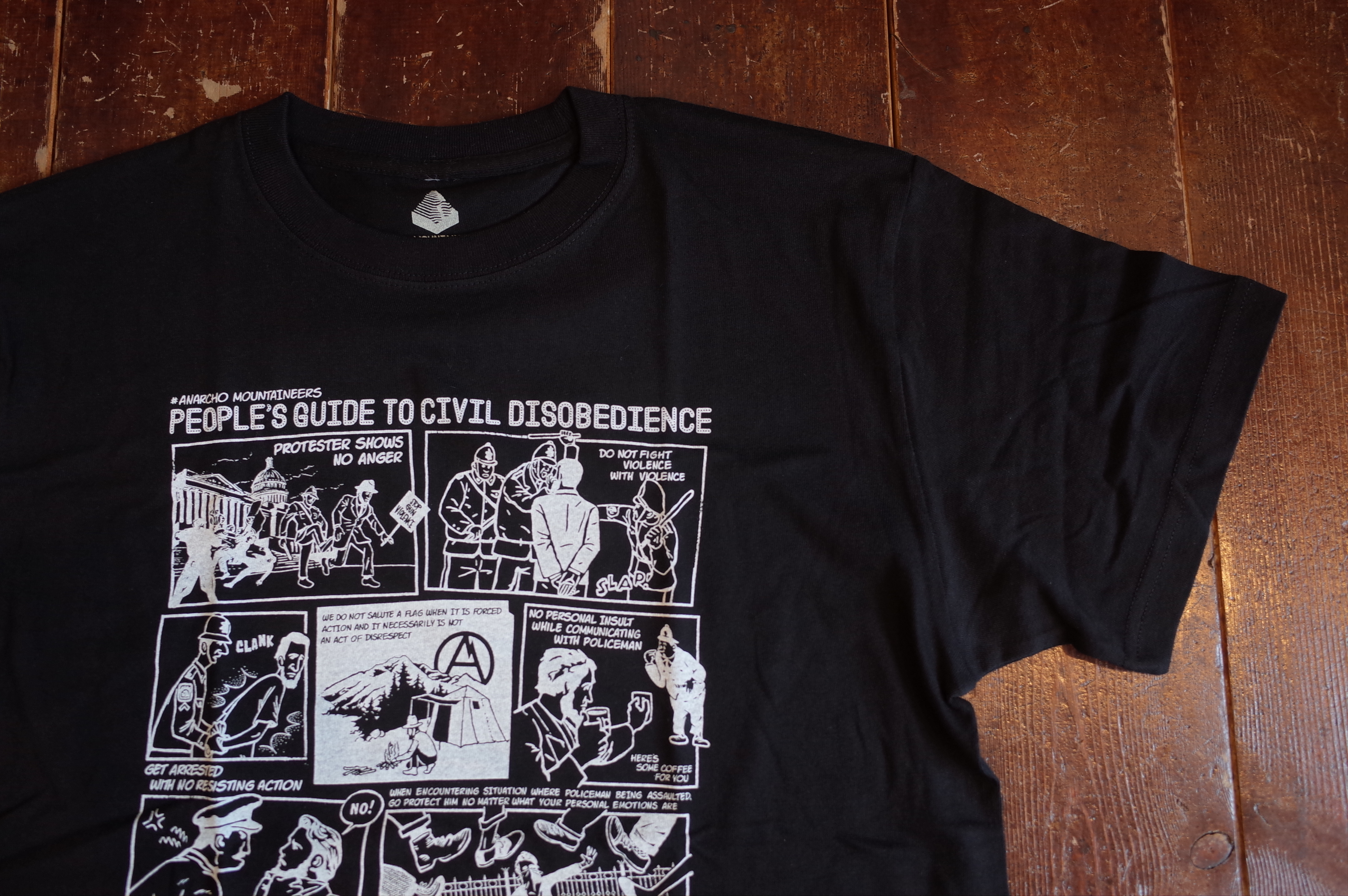 PROTESTER’s cotton short sleeve TEE with Jerry Ukai’s Person’s Guide to Civil Disobedience cartoon print.