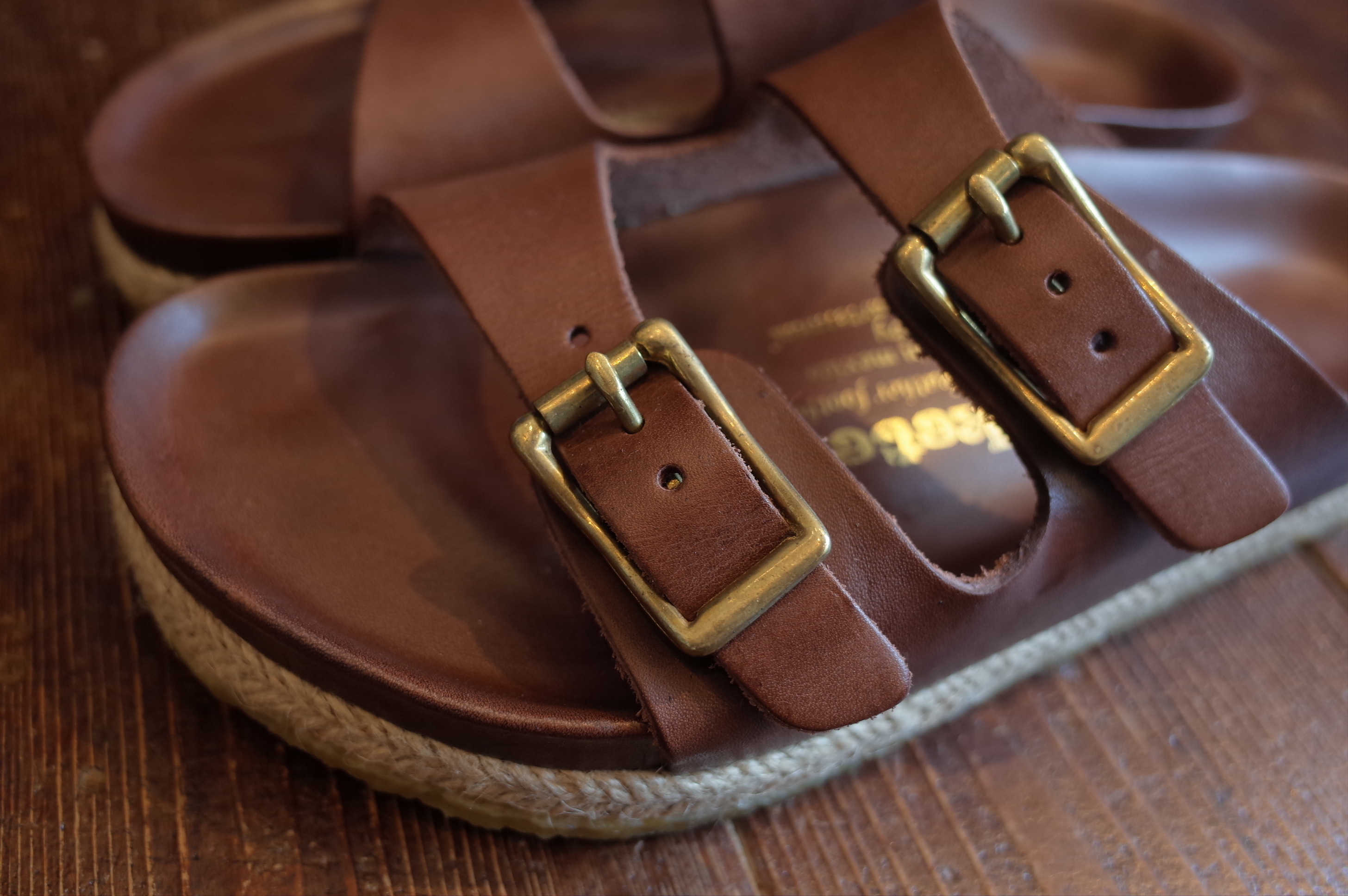 無骨なブラスのバックル、