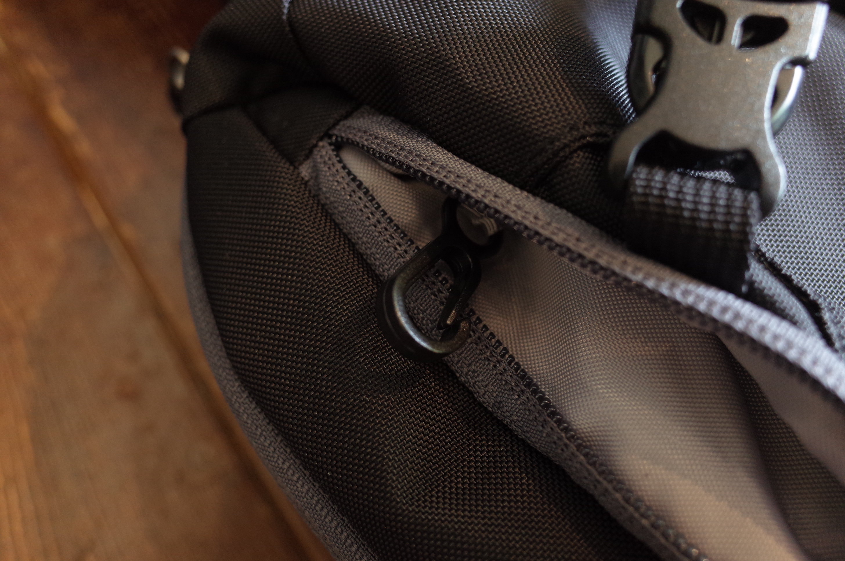 フーディニ・ジャケットなんかを挟めるストラップは、
