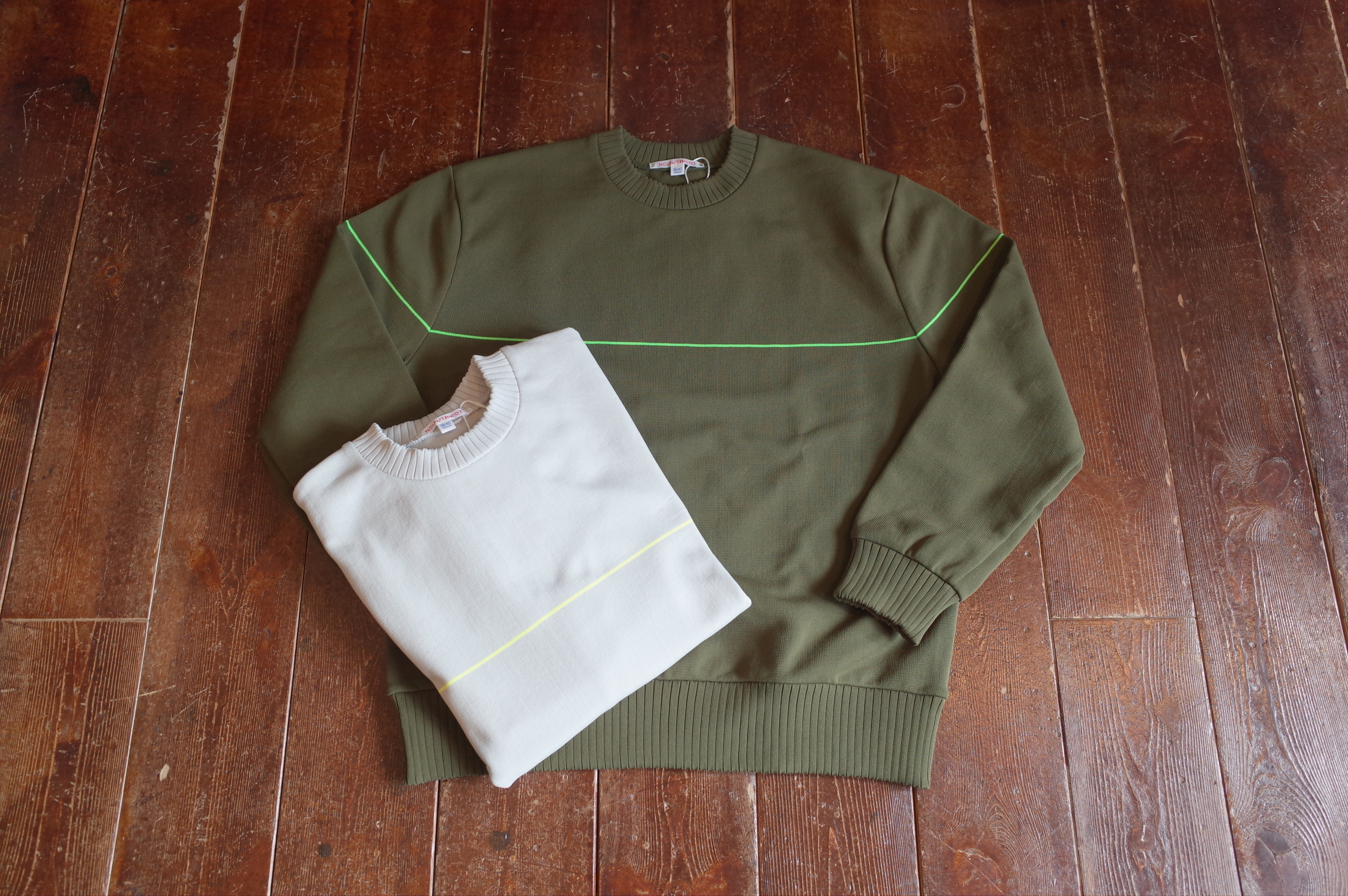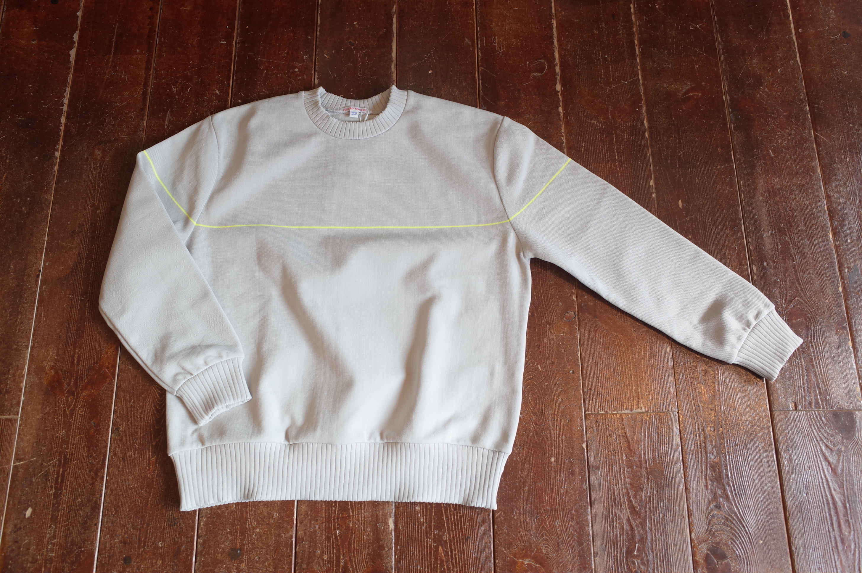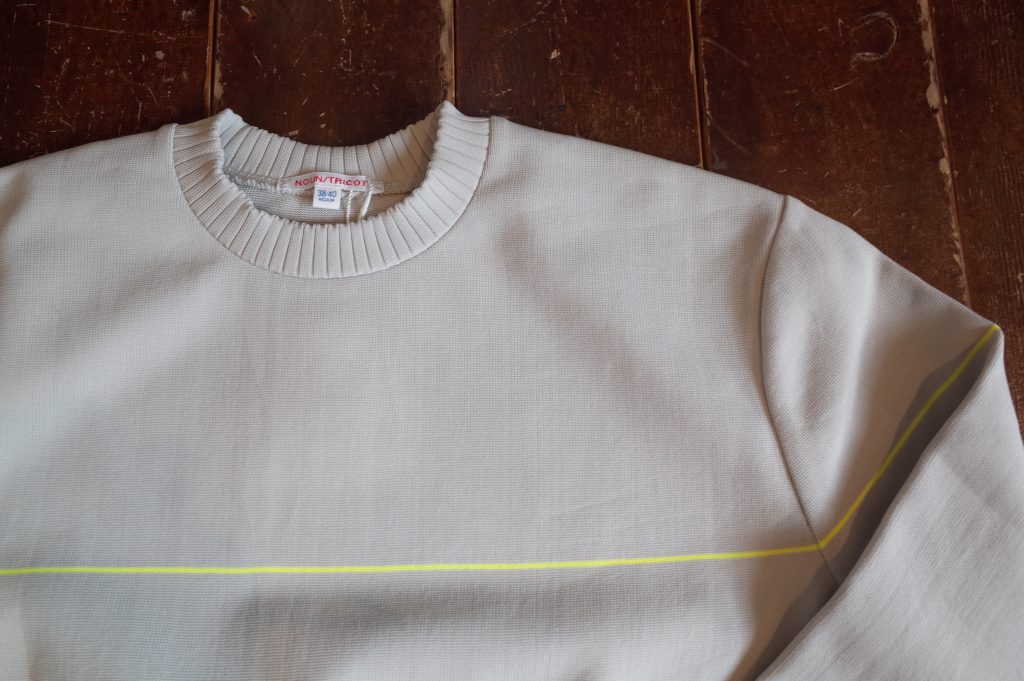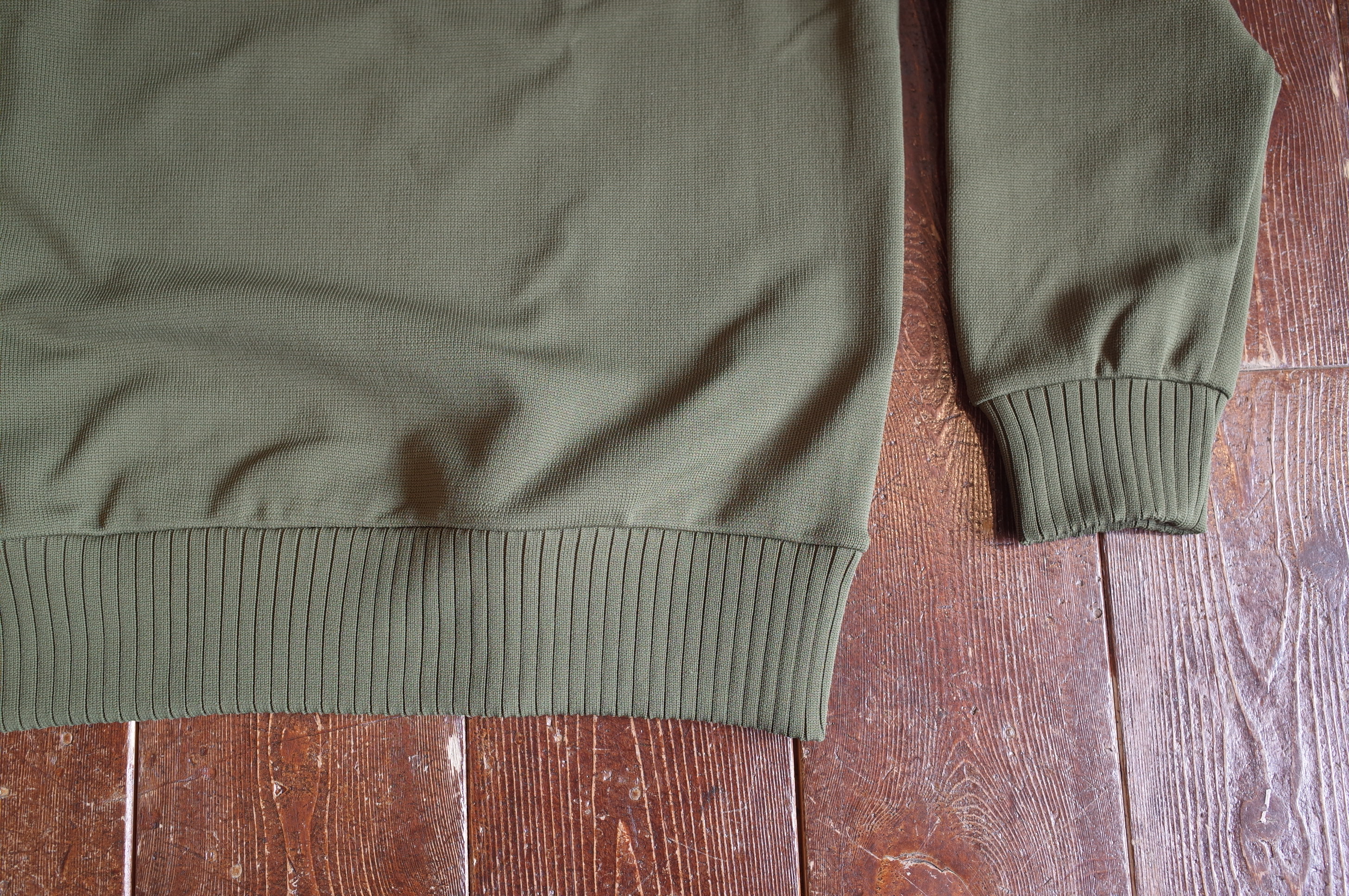 オールシーズン着れるポリエステルのニットです、