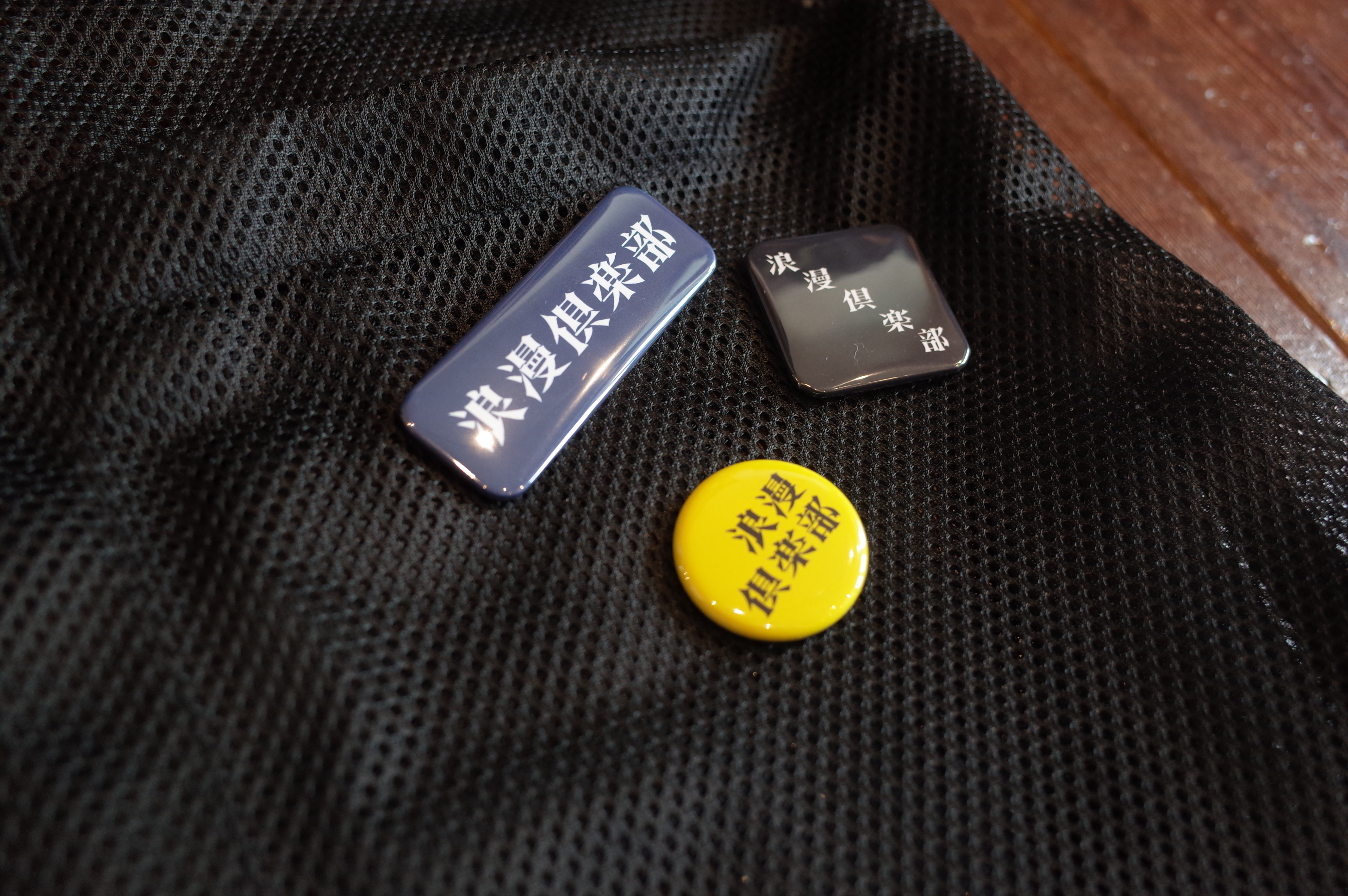 3種類の缶バッジの、