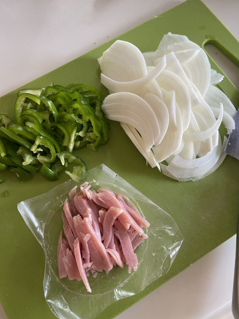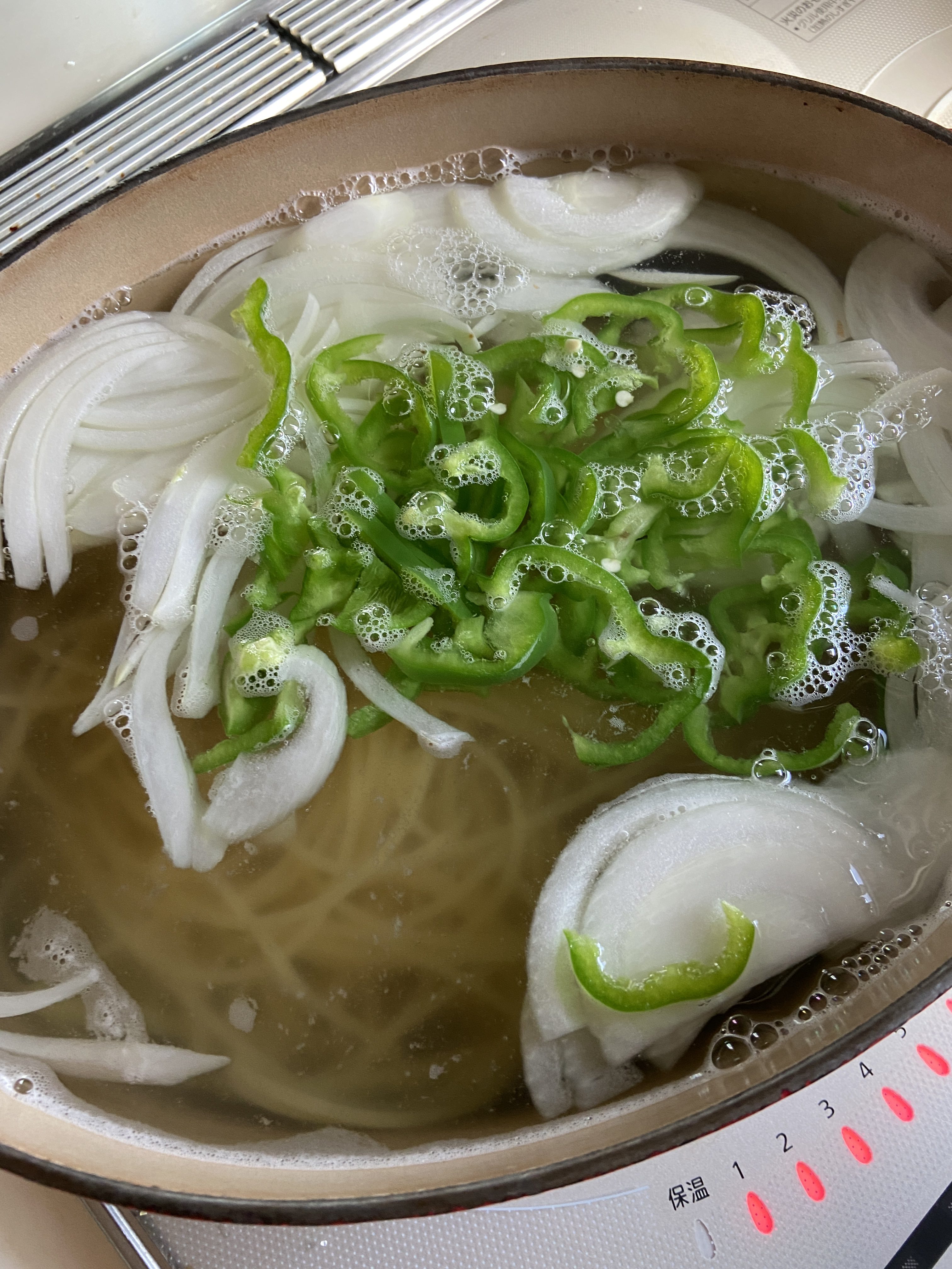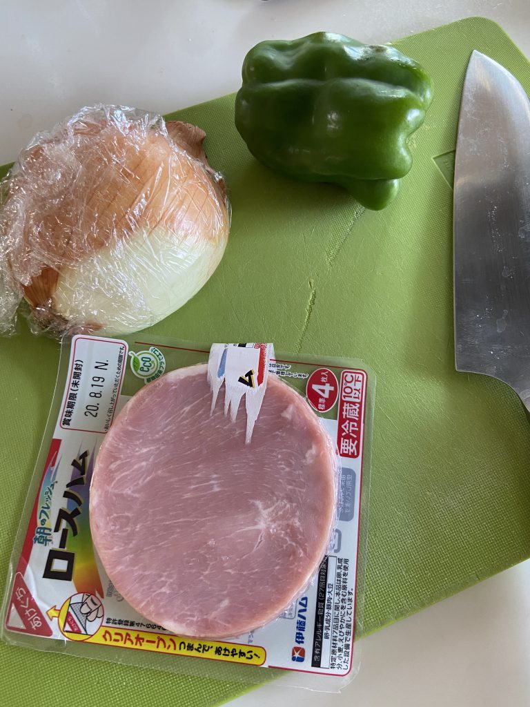 ピーマンとタマネギを、