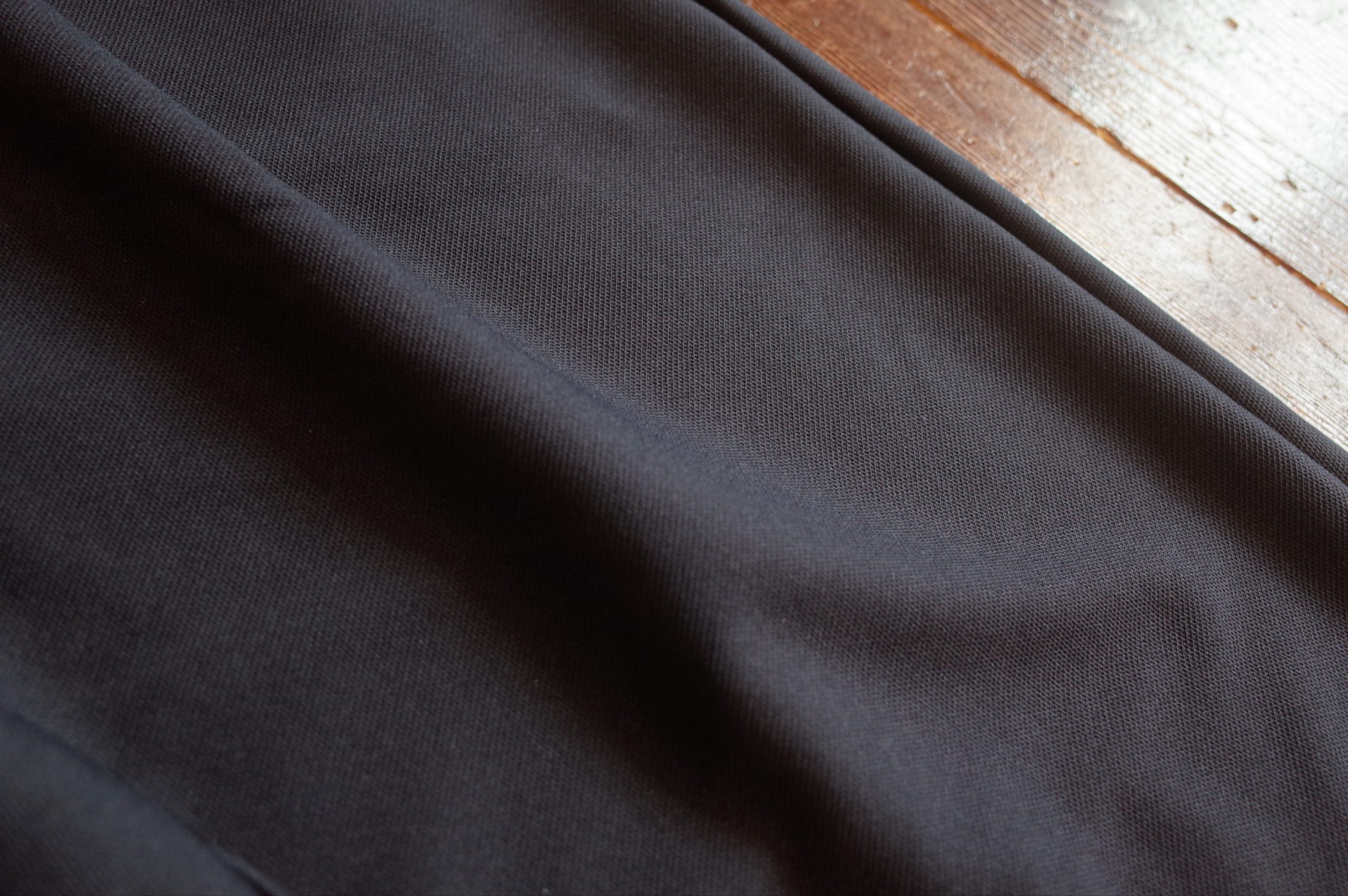 シャツ地のようなハリ感とジャージーの柔らかさを伏せ持つハイブリッド素材、