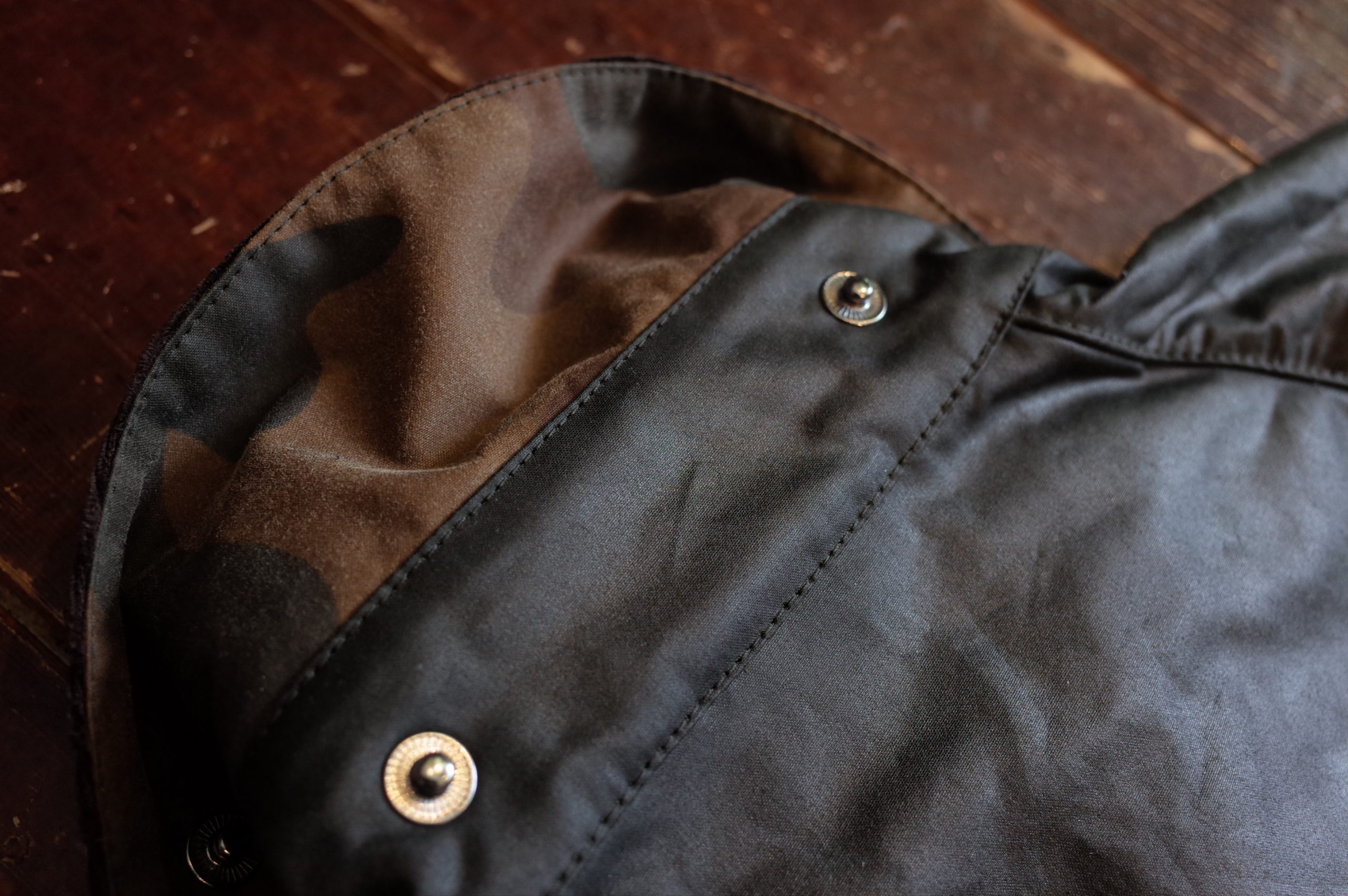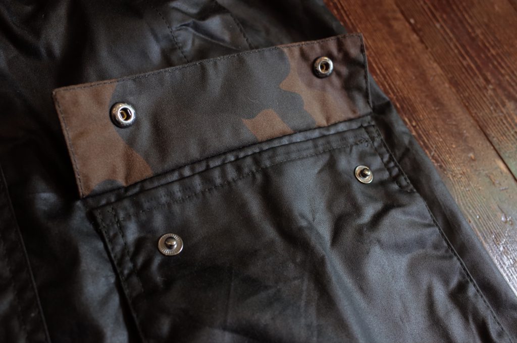 フラップポケット裏にカモフラージュパターンを使用、