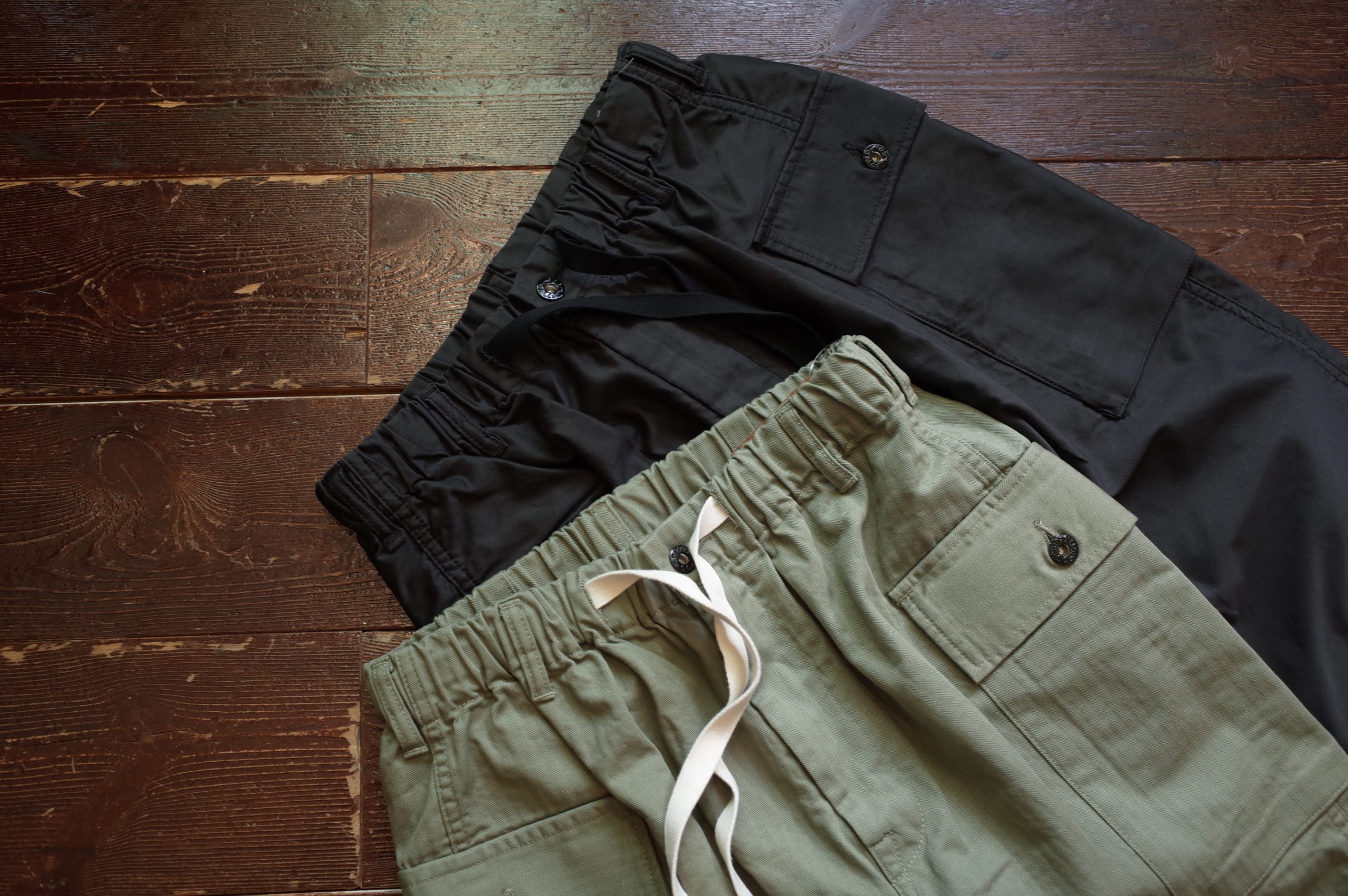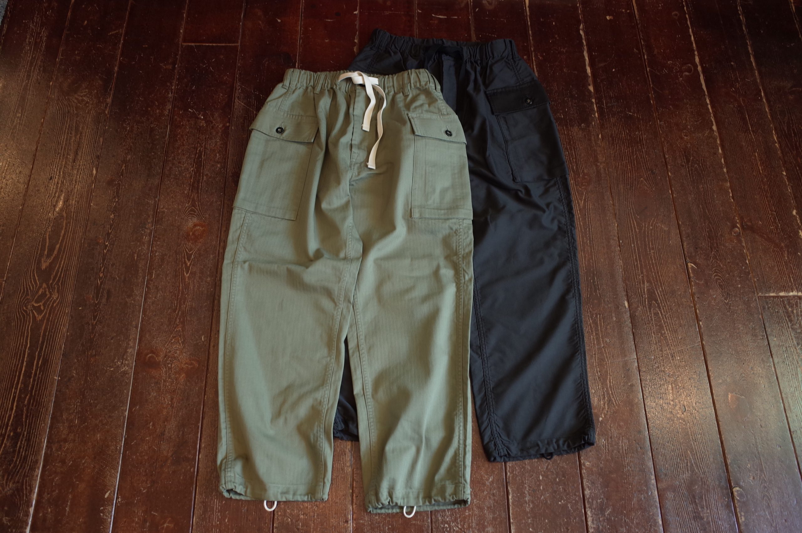 cotton HBT sage green、cotton sateen faded black