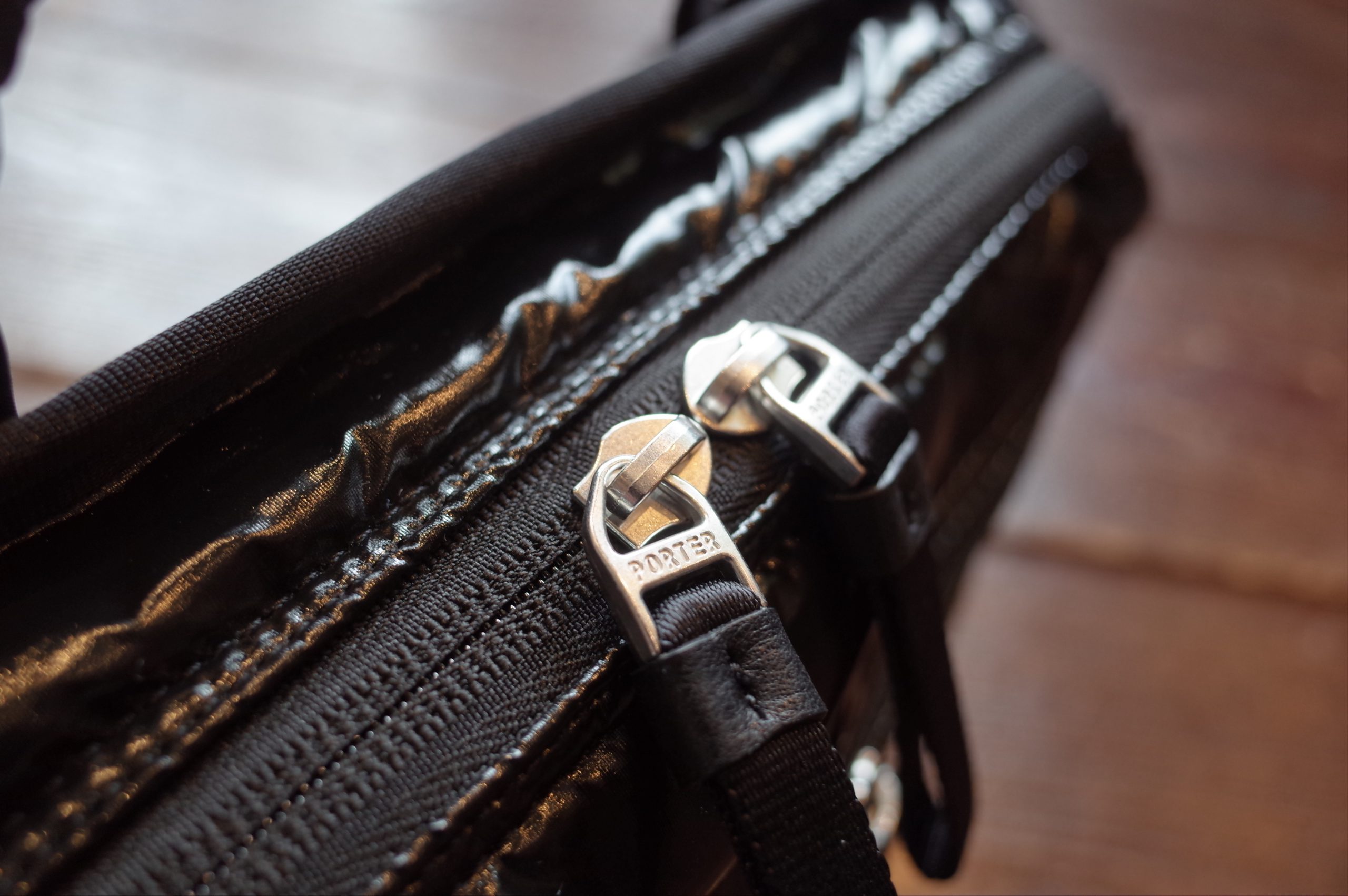 軽量なコイルファスナーやアルミパーツを使用し、