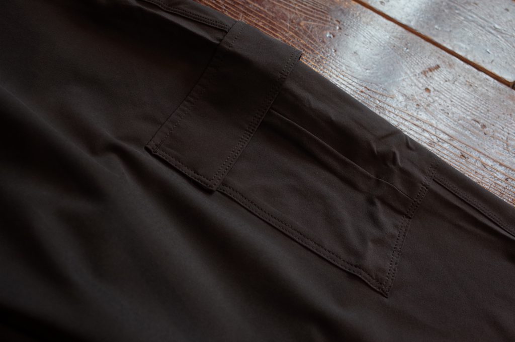 腿の横に貴重品を安全に収納できるフラップ付きカーゴポケットが2つ、