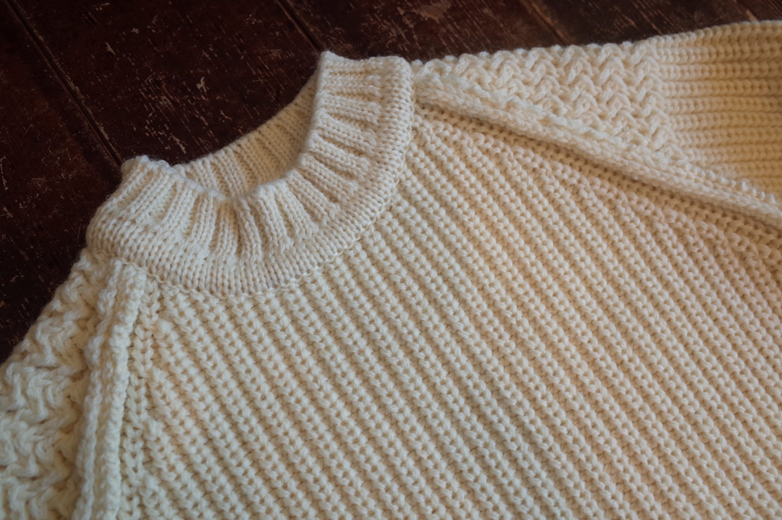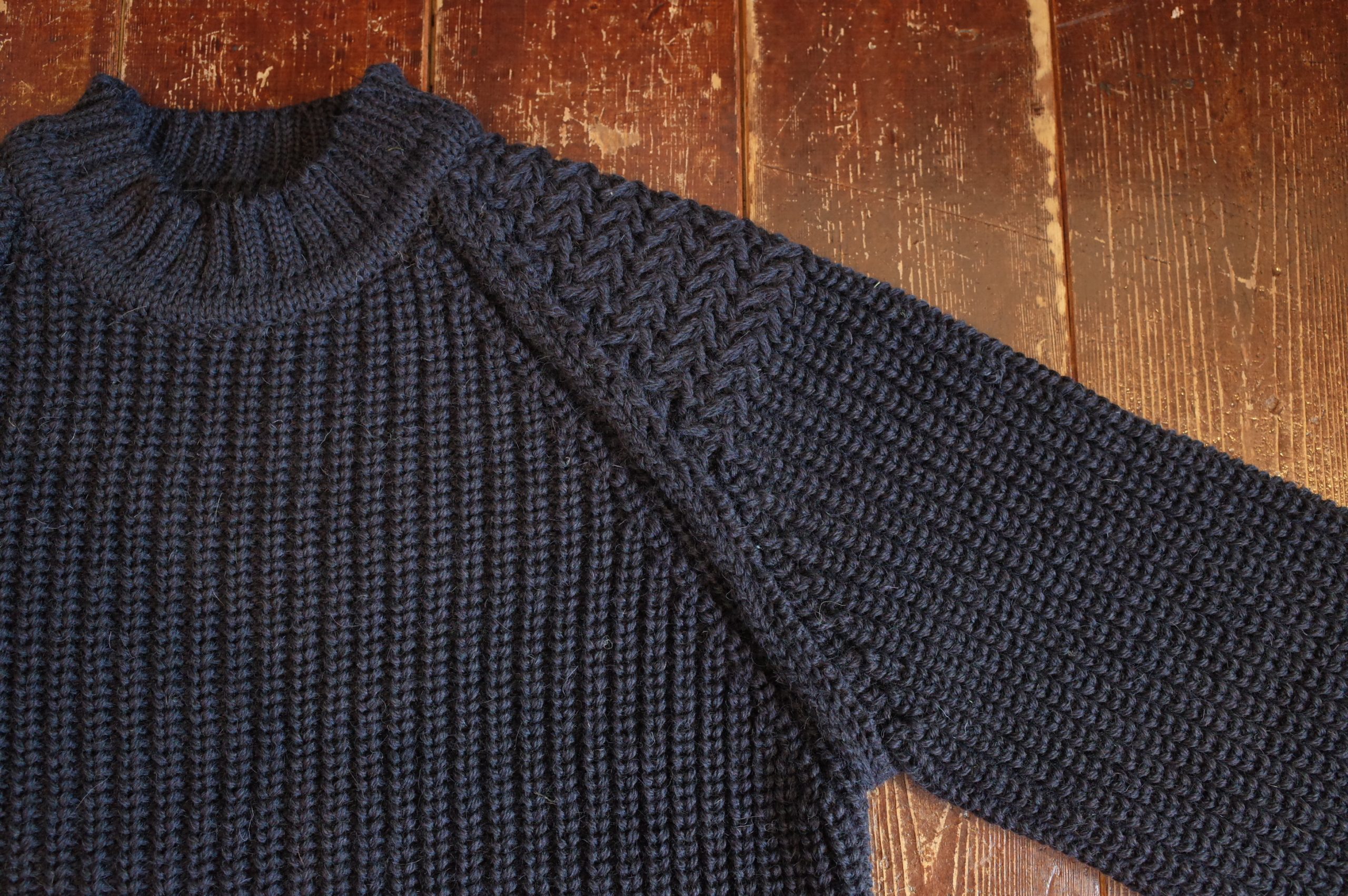 こちらも王道フィッシャーマンニットですね、