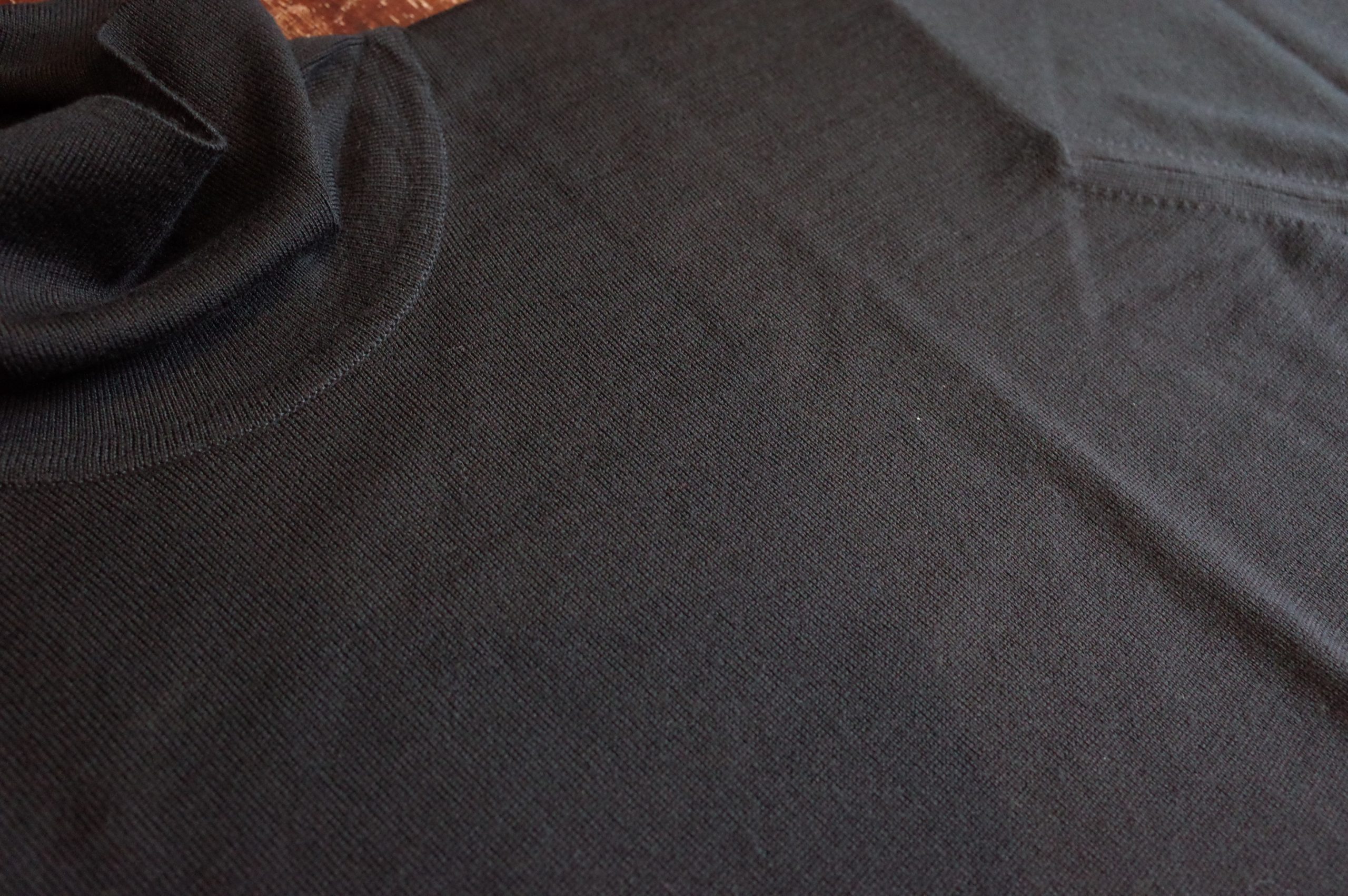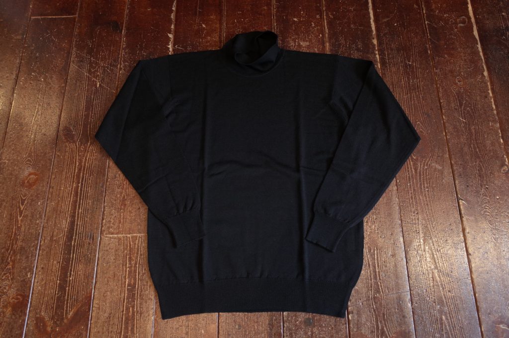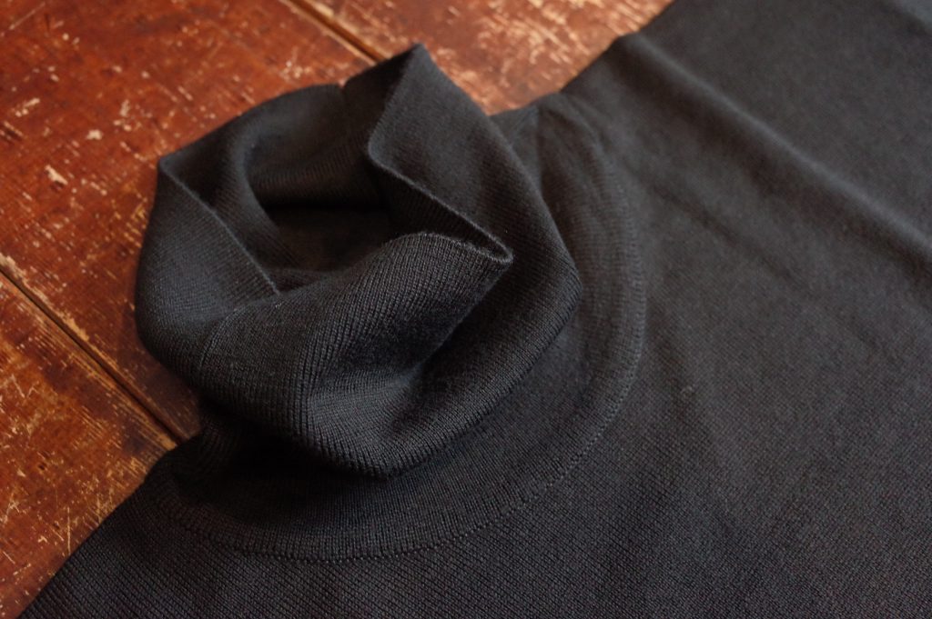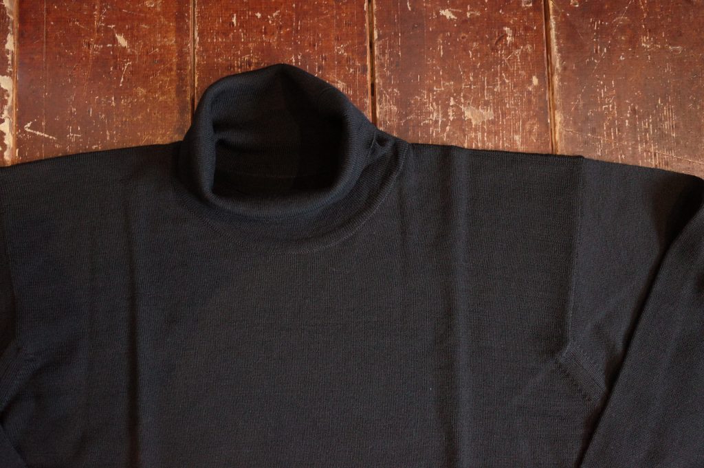 首回りに指1~2本分のゆとりのあるオフタートルで、