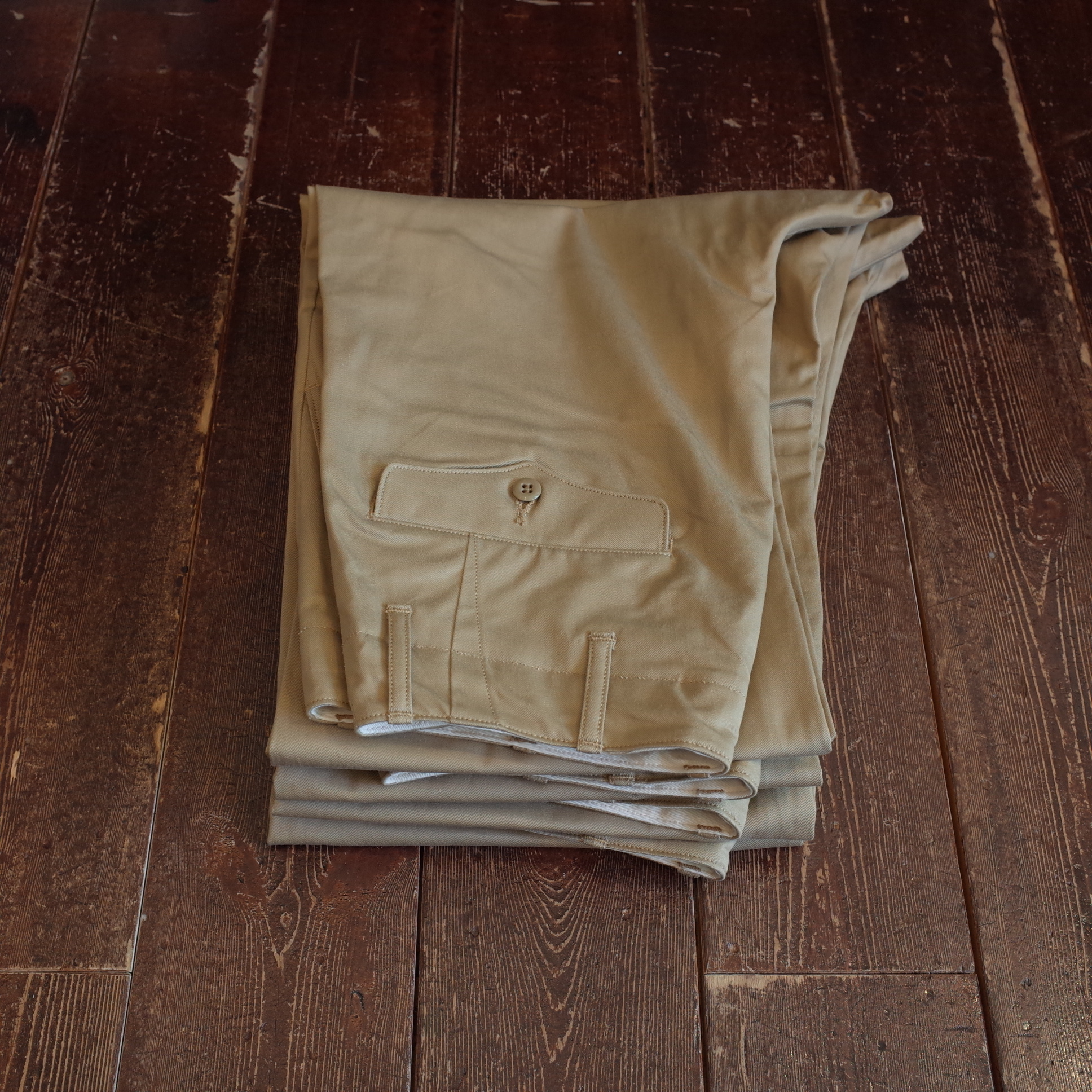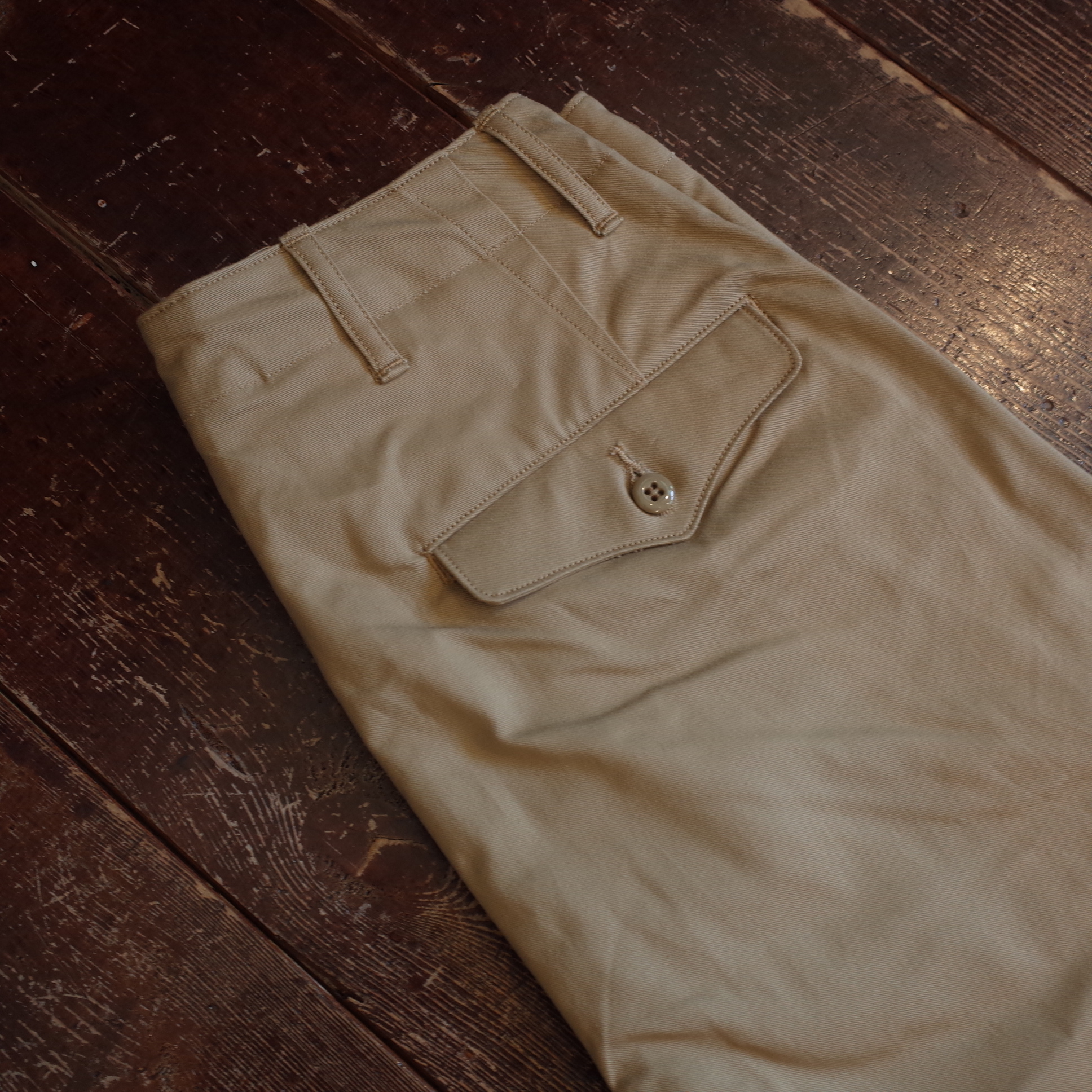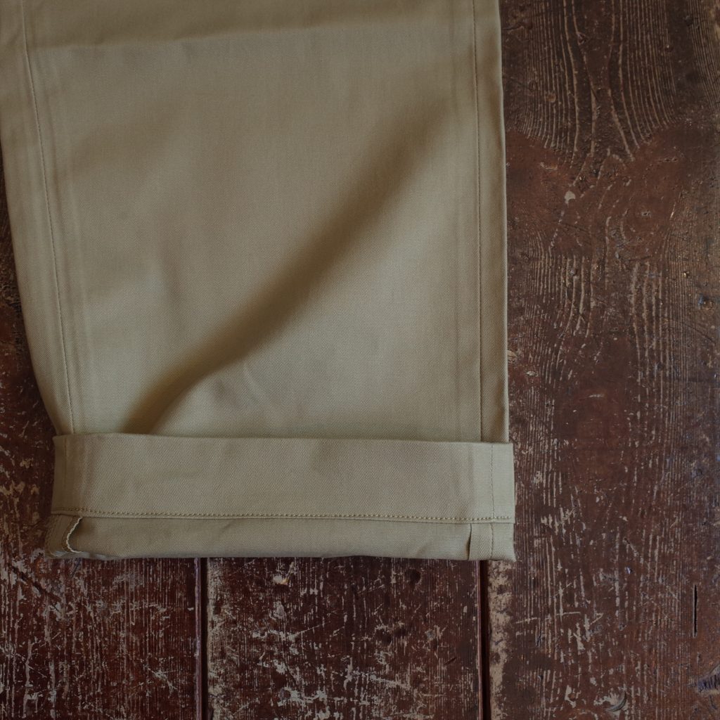 通称「45カーキ」と呼ばれる1945年の米軍のチノパンがデザインソース、