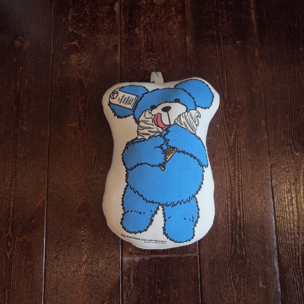 平沼久幸画伯が今シーズンのために描かれたクマちゃんをクッション化、