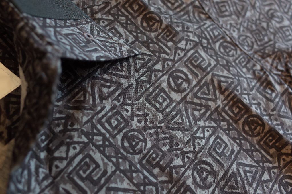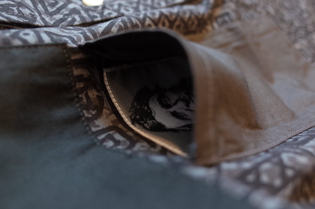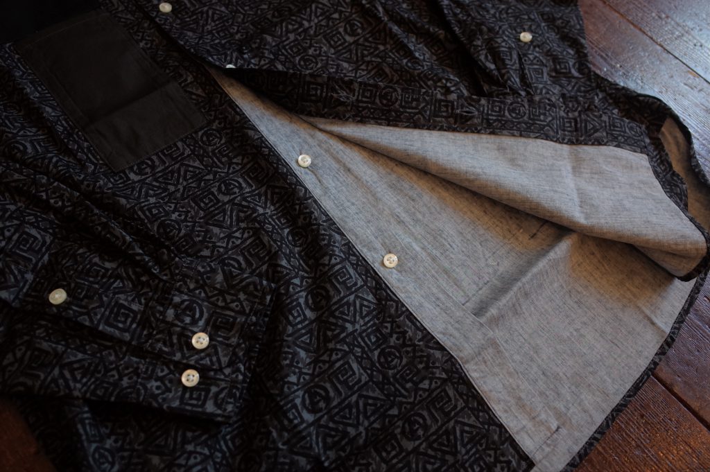 Printed cotton Batik Anarchist Shirt with Henry D. Thoreau’s portrait patch hidden inside pocket.