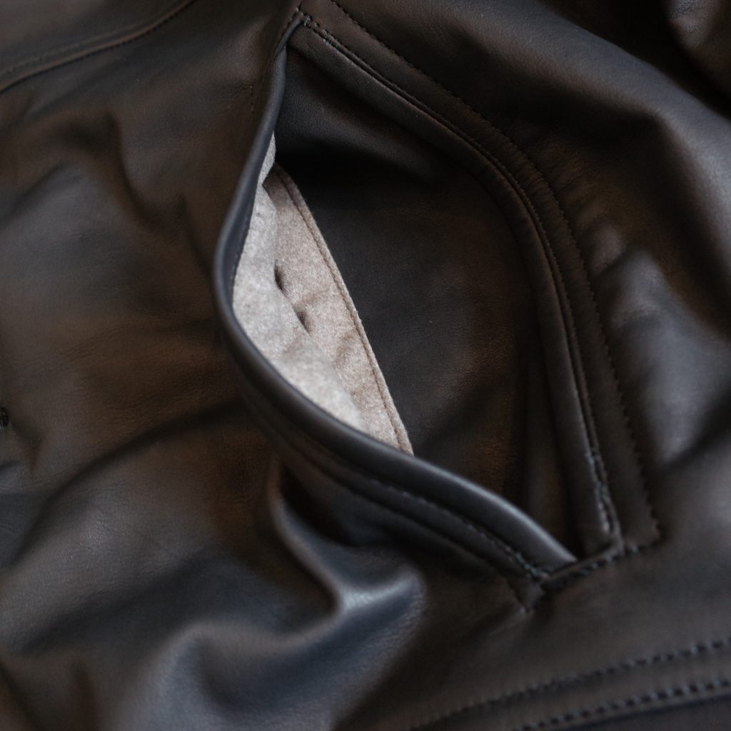 革に仕上げる前の「皮」の状態に近い風合いで仕上げ、
