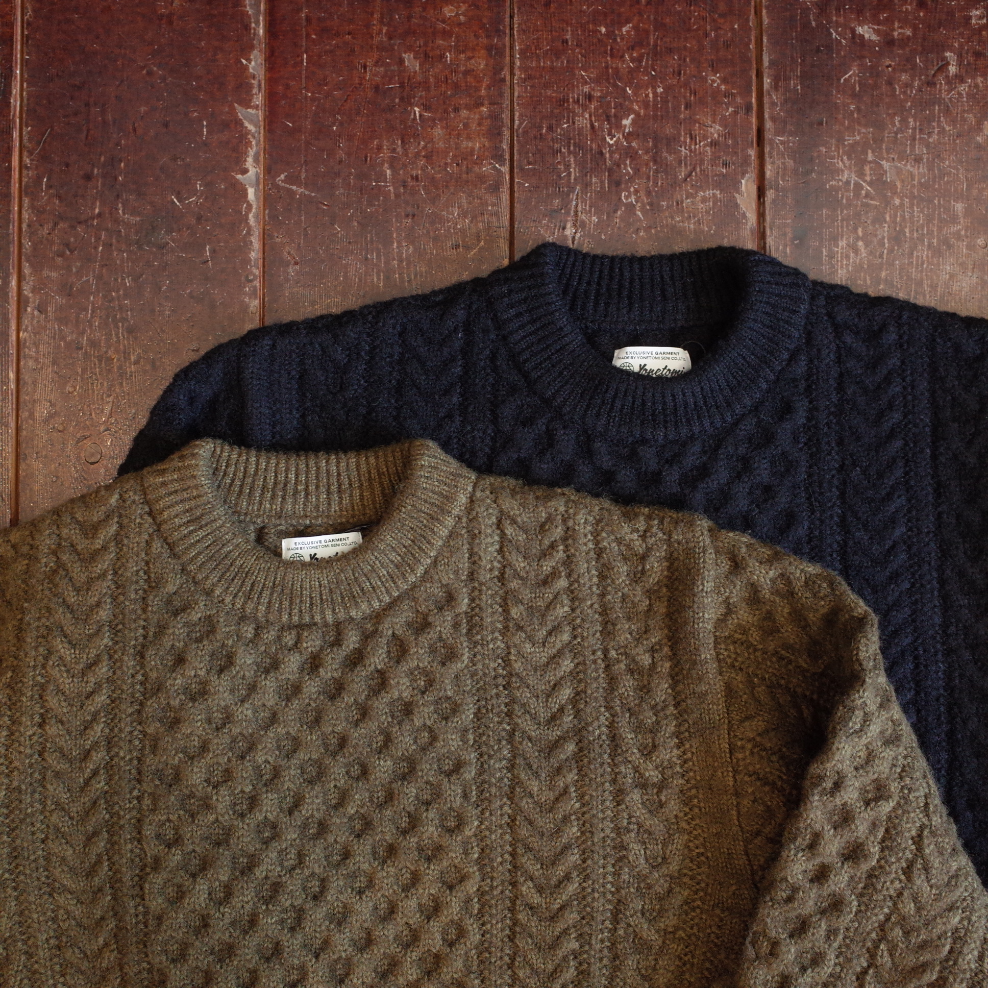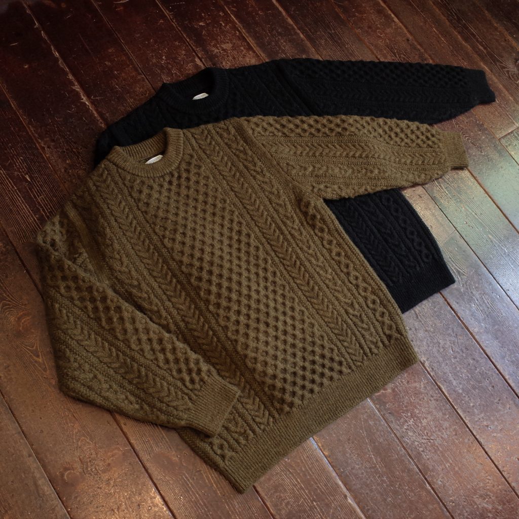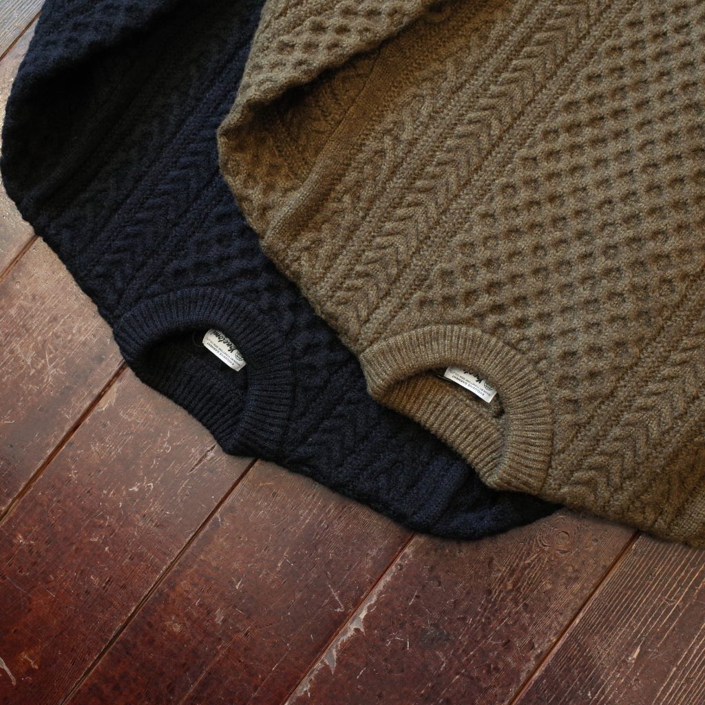 製品になった状態で染色した後染めのアランセーター、