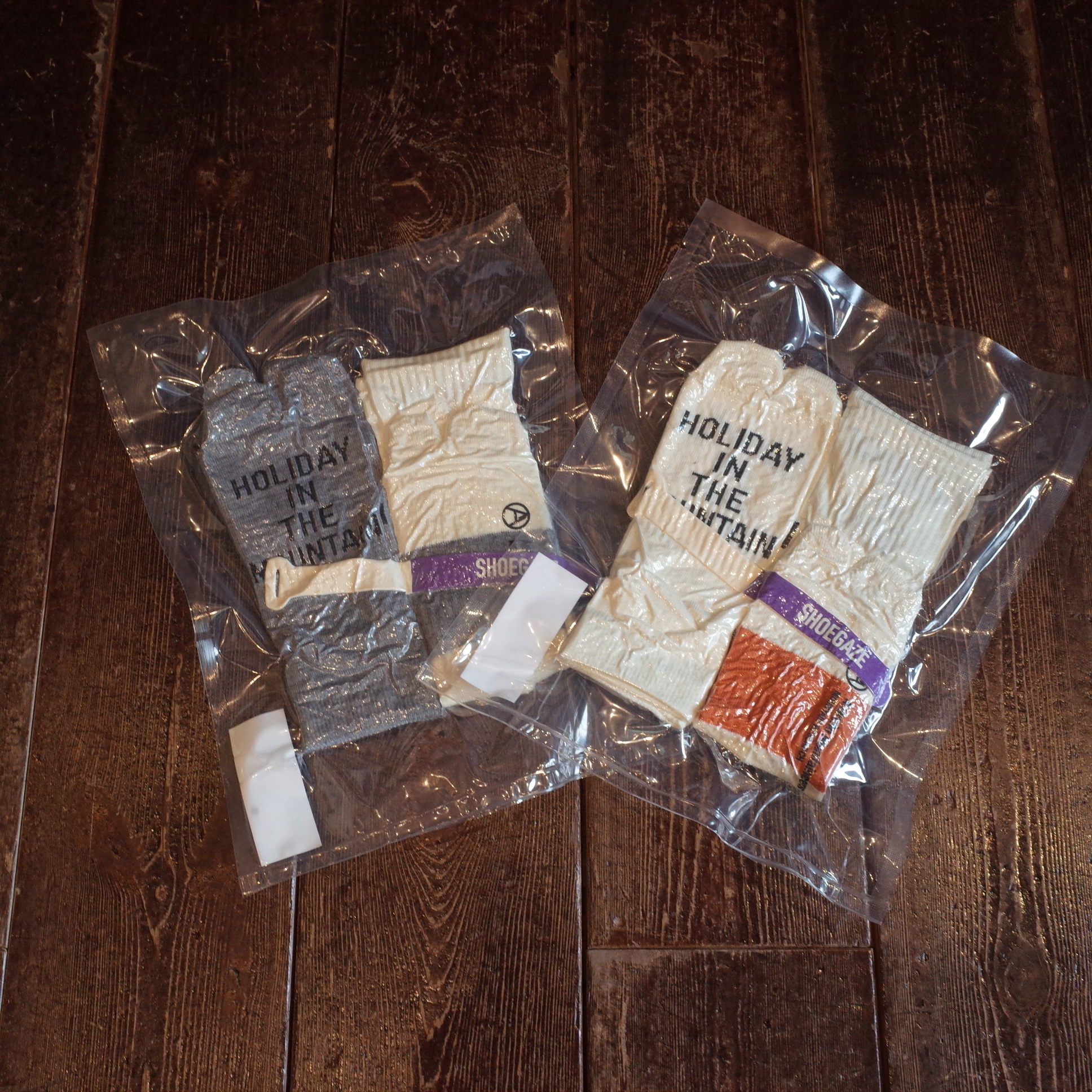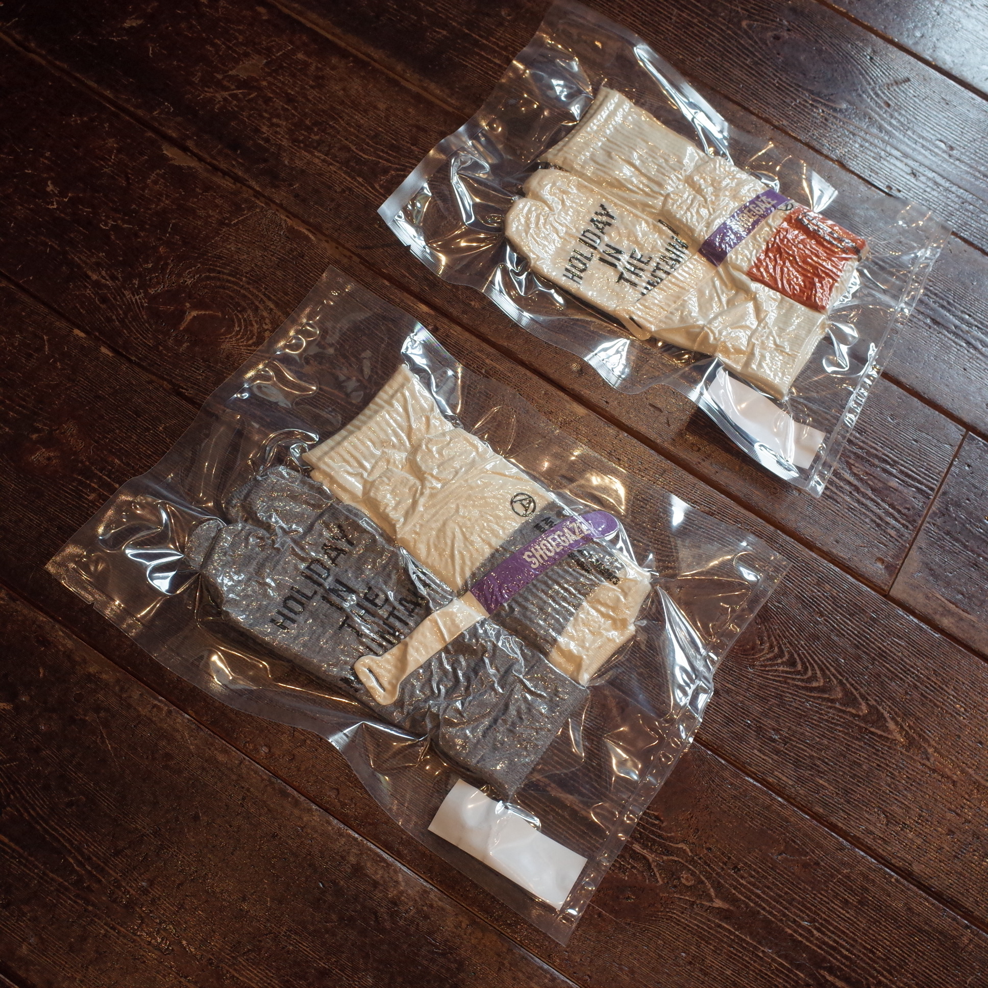ショート丈:甲の上にHOLIDAYロゴ