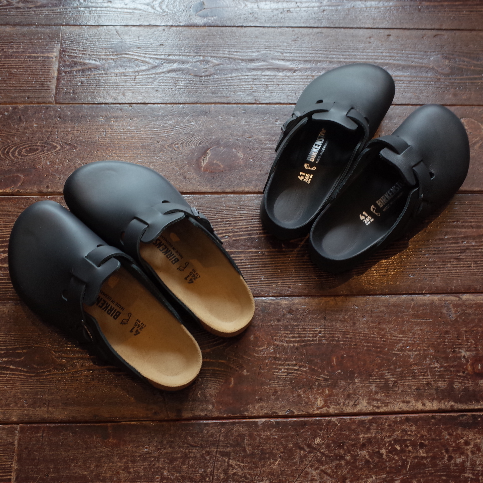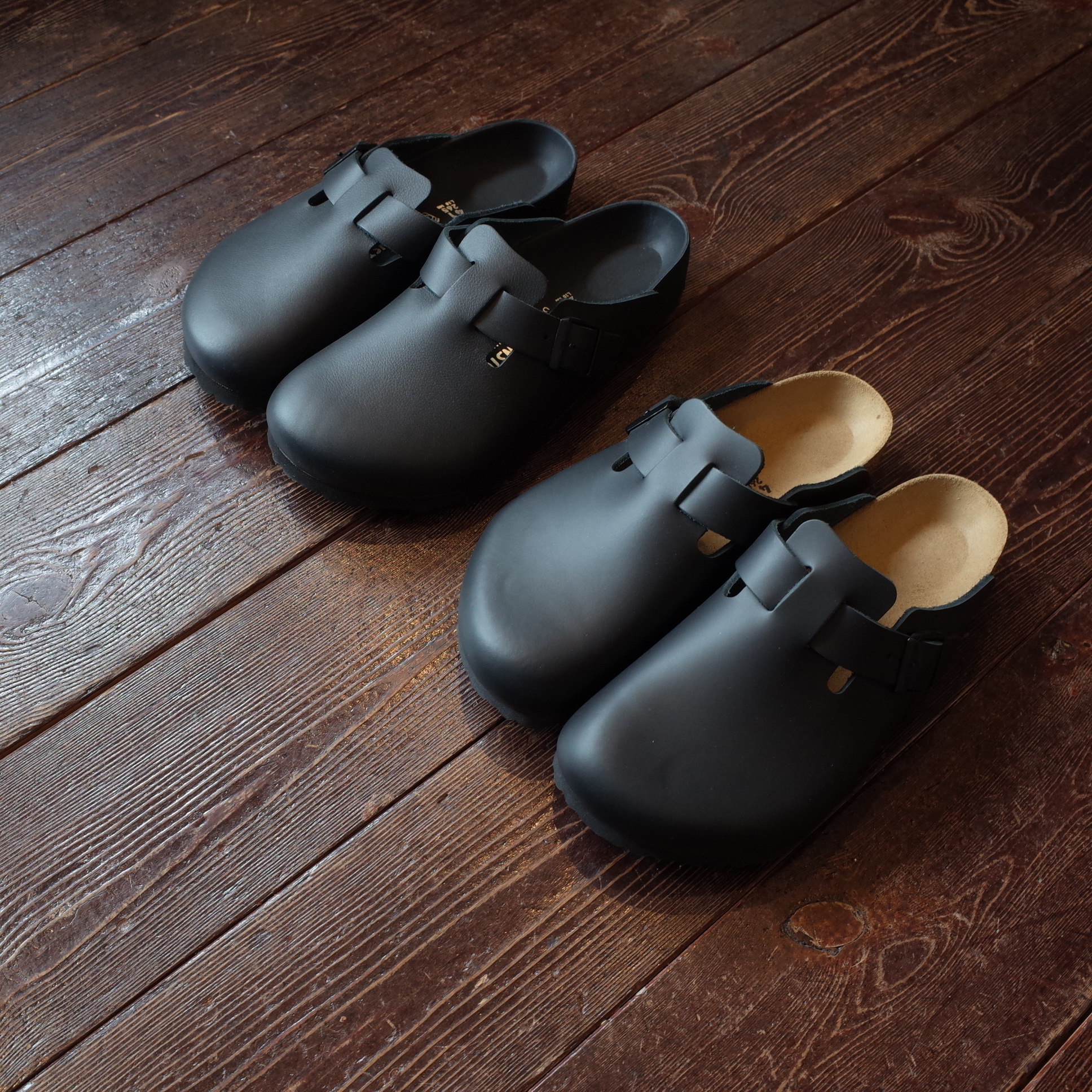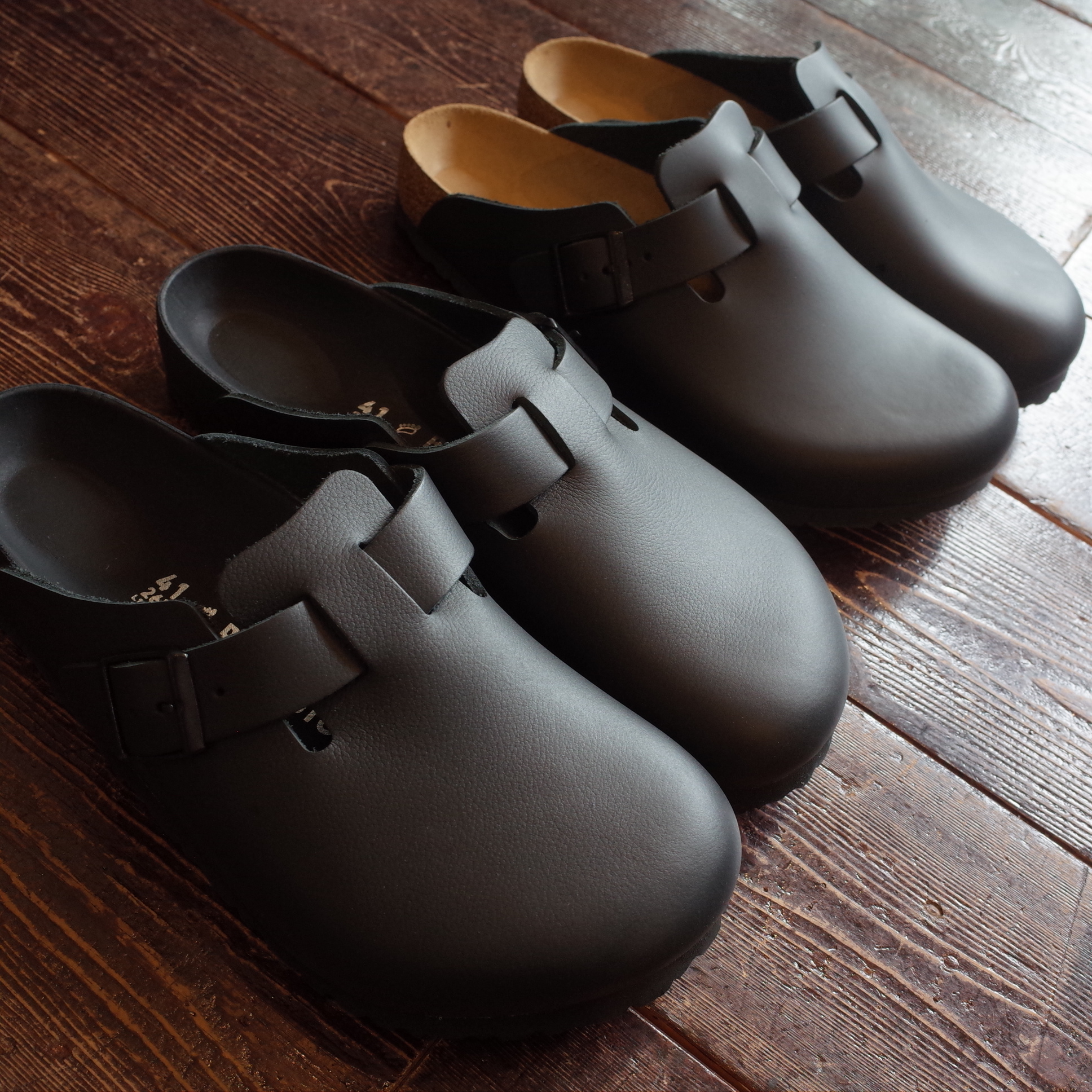 いつものコルク製フットベッドをレザーで覆うことで、