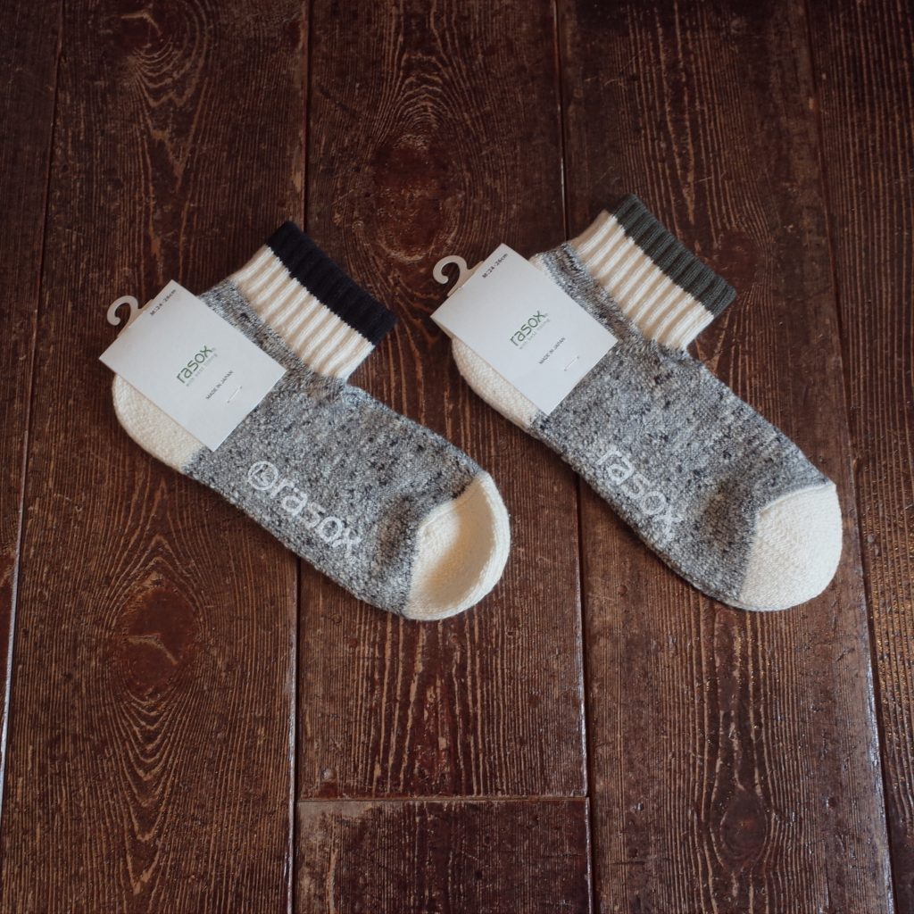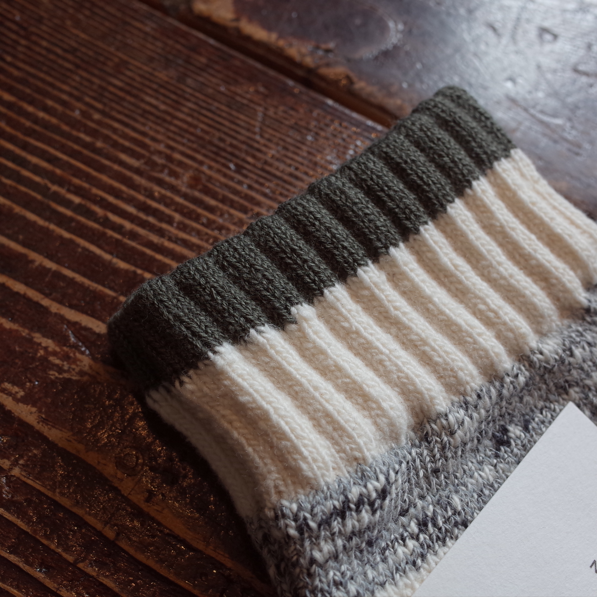 モノトーンで編立てたラインソックス、