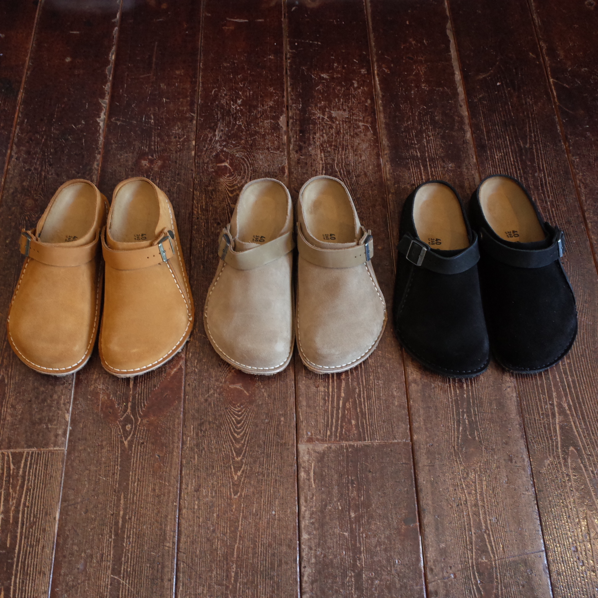 倒してオープンクロッグのようにスポッと履くこともできる使い勝手の良い一足です、