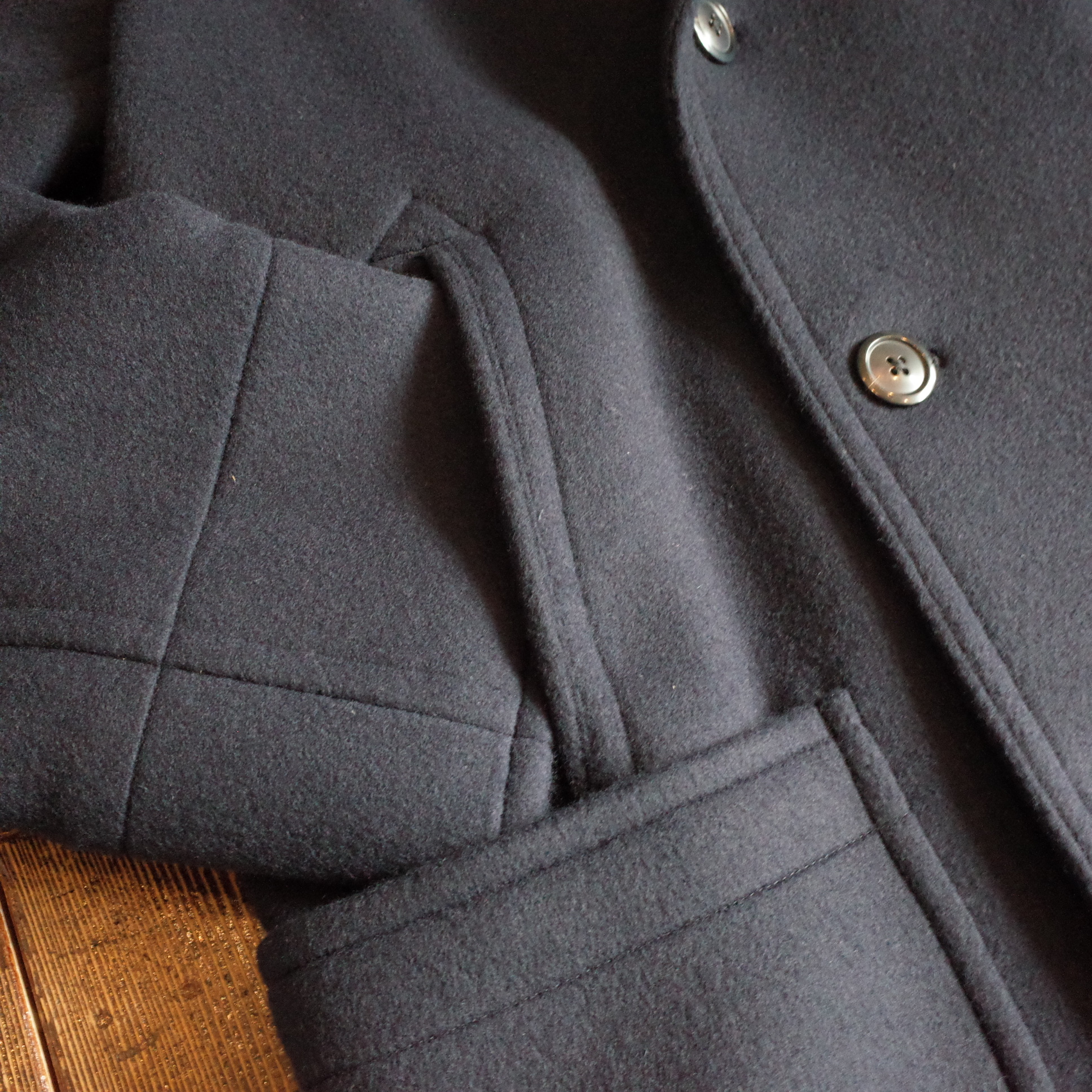 U.S.NAVY 仕様の両玉縁ハンドウォーマーポケットの上に、