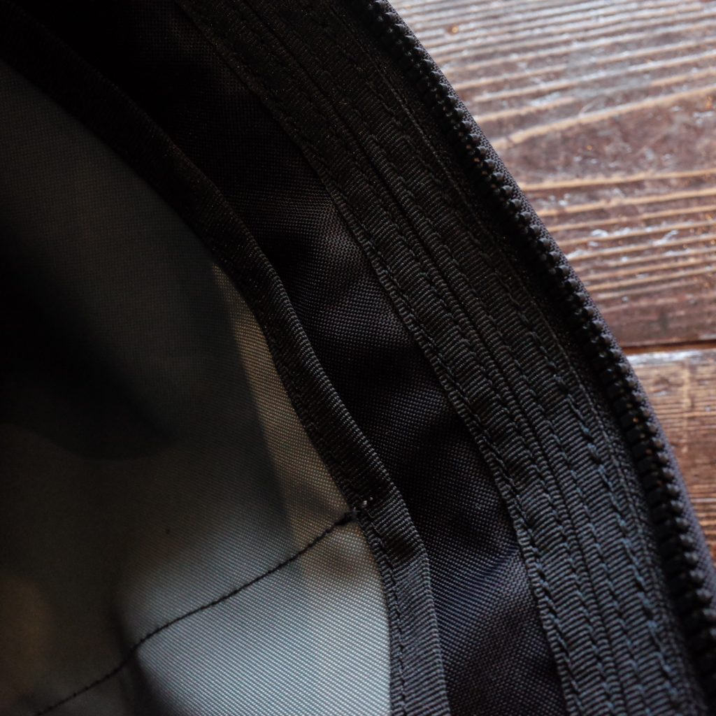 エアバッグなどに使われる強度に優れた210デニールの66ナイロンを高密度オックスに織った生地で、