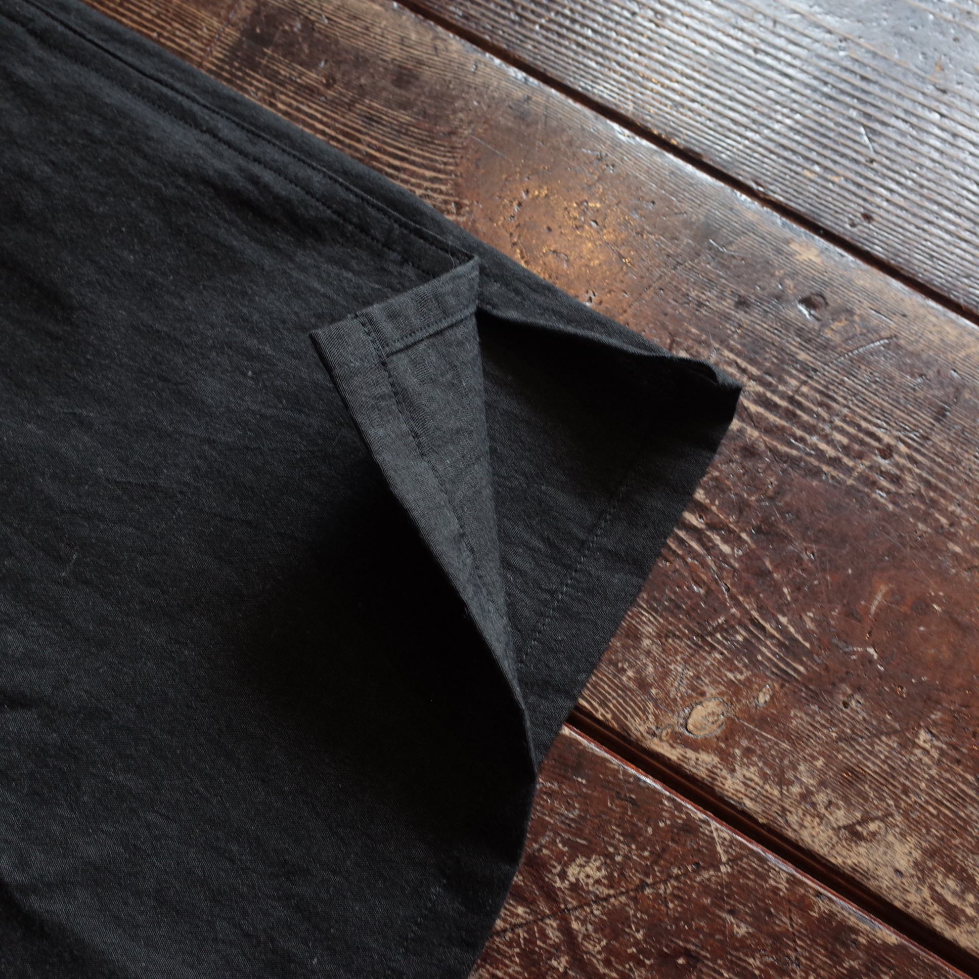 折り伏せ縫いにして運芯を細かく縫製、