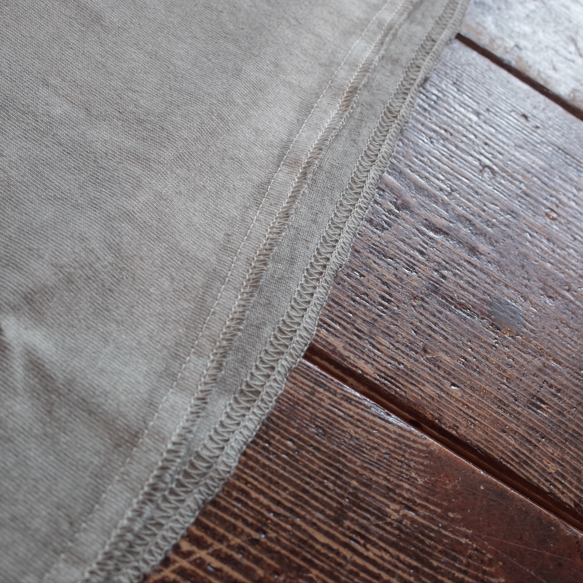 二本針でステッチをかけた後にロックミシンをかけるという、