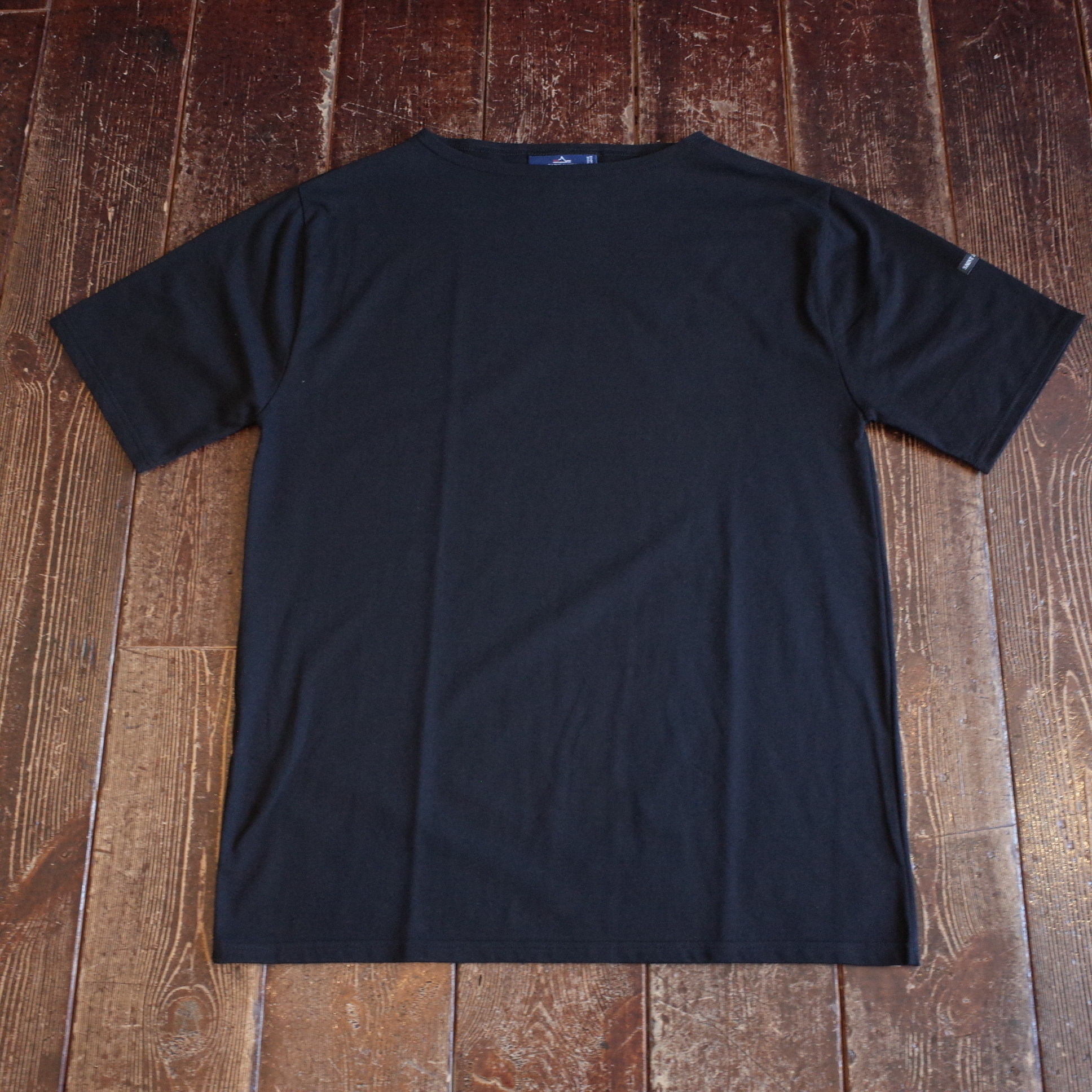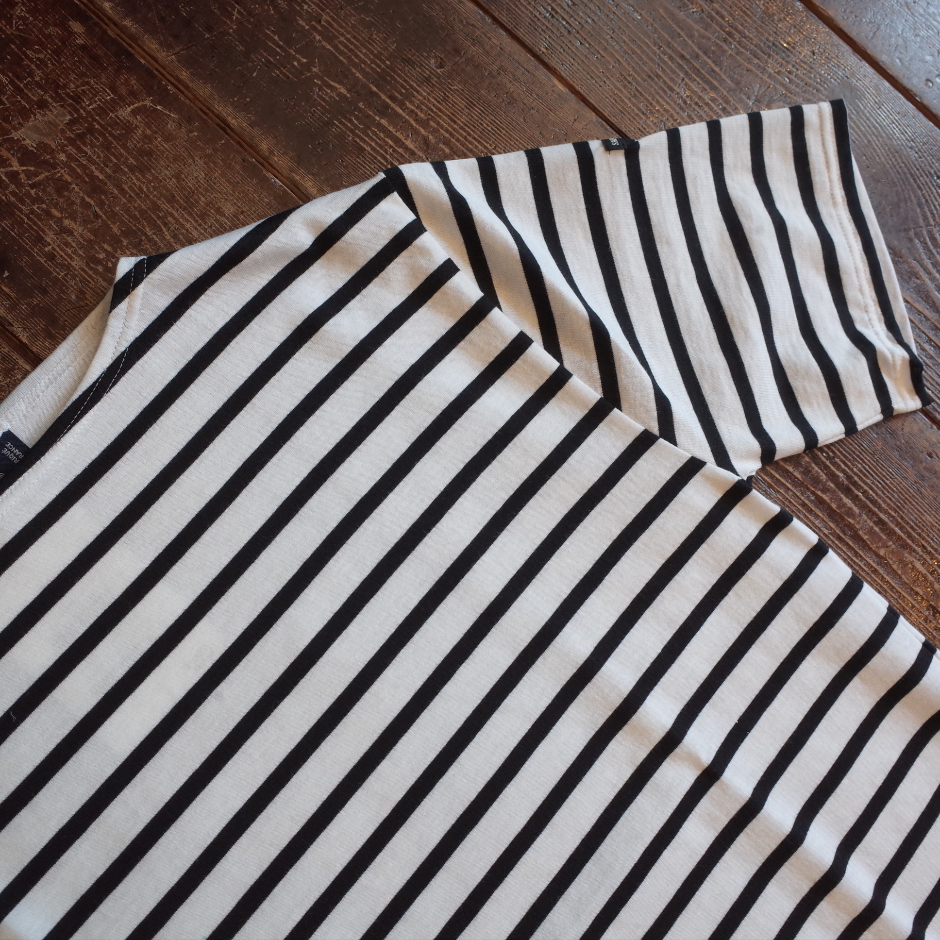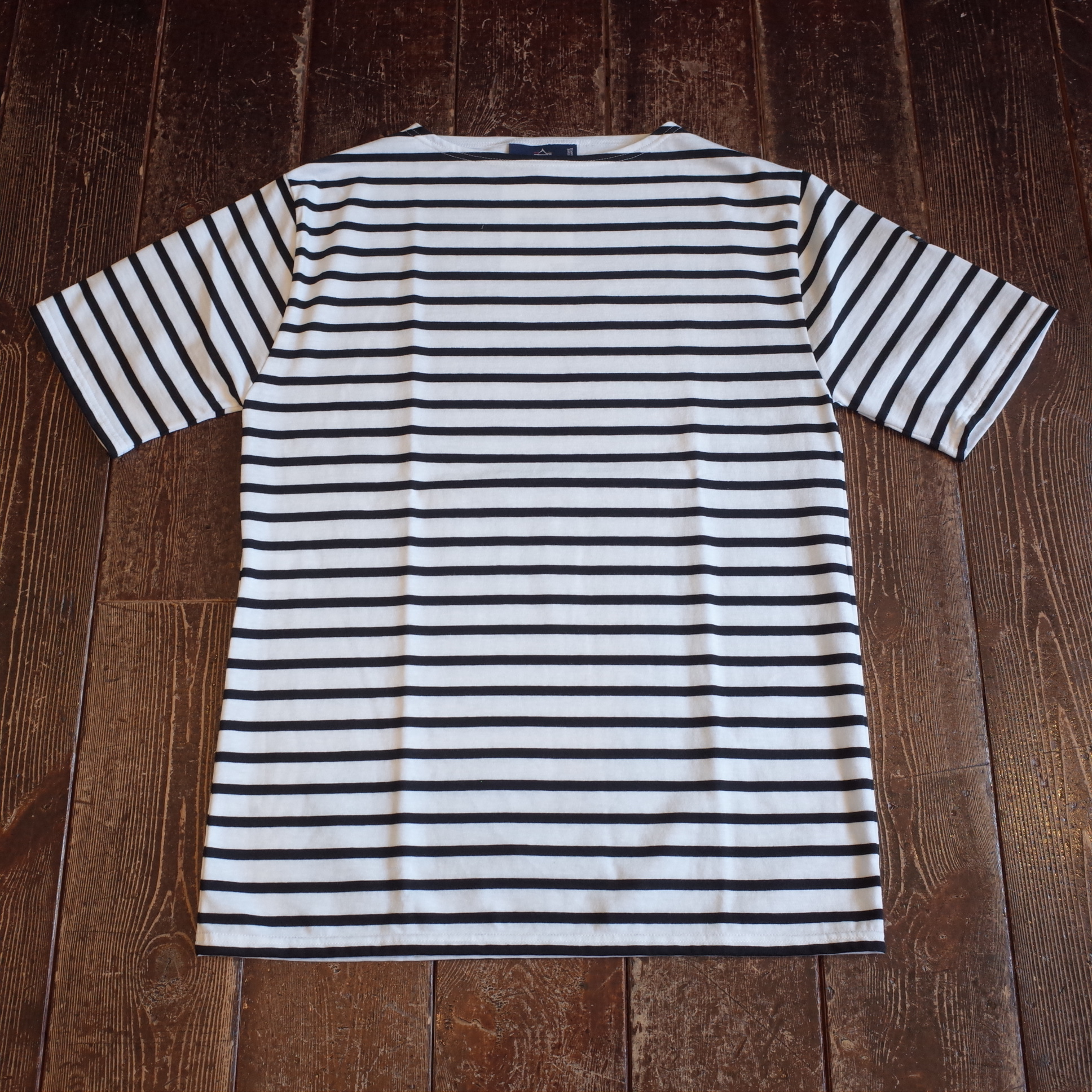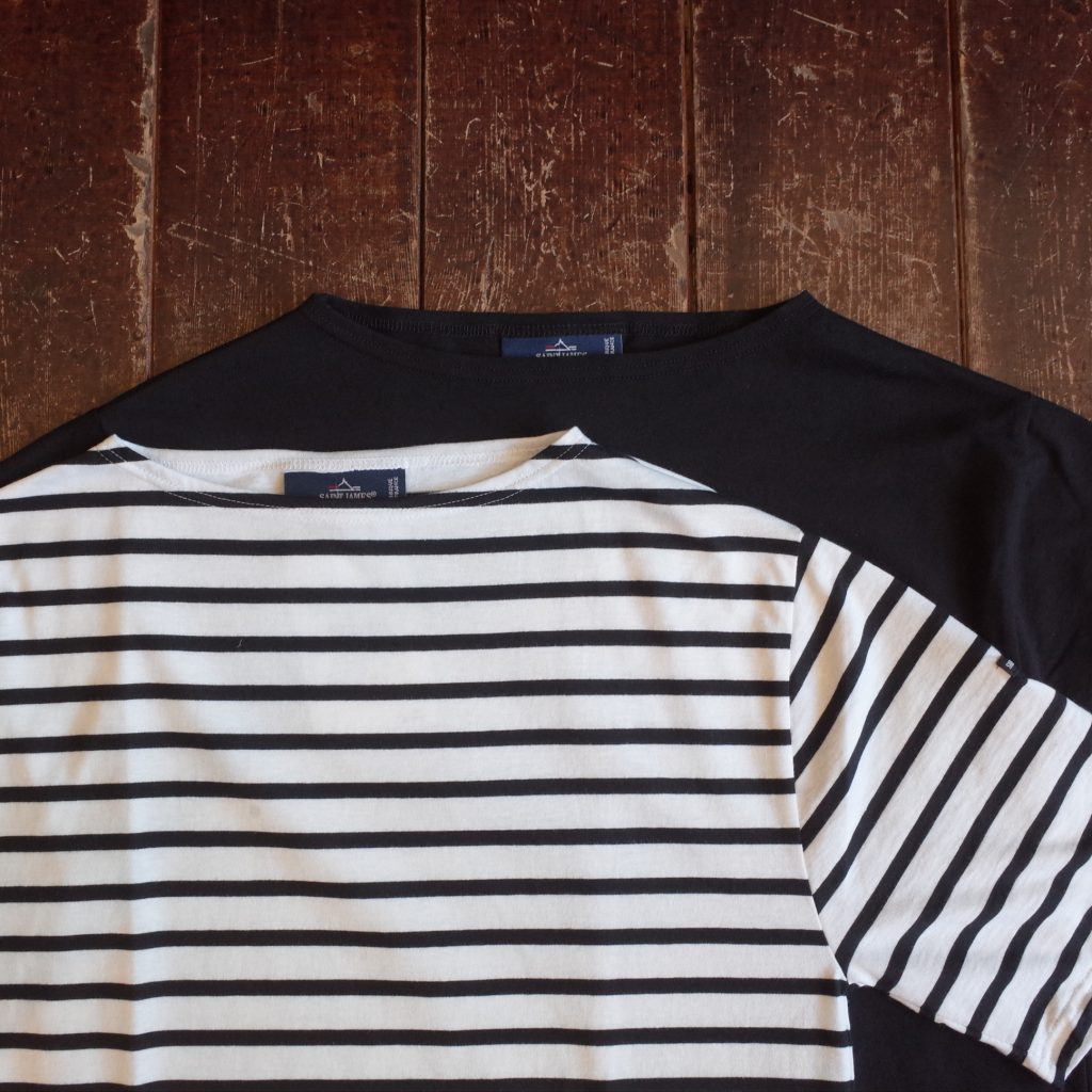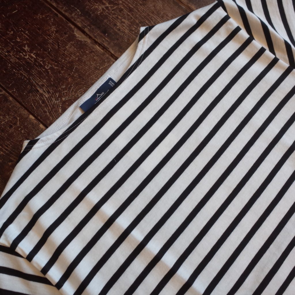 すっきりしたボートネックに、