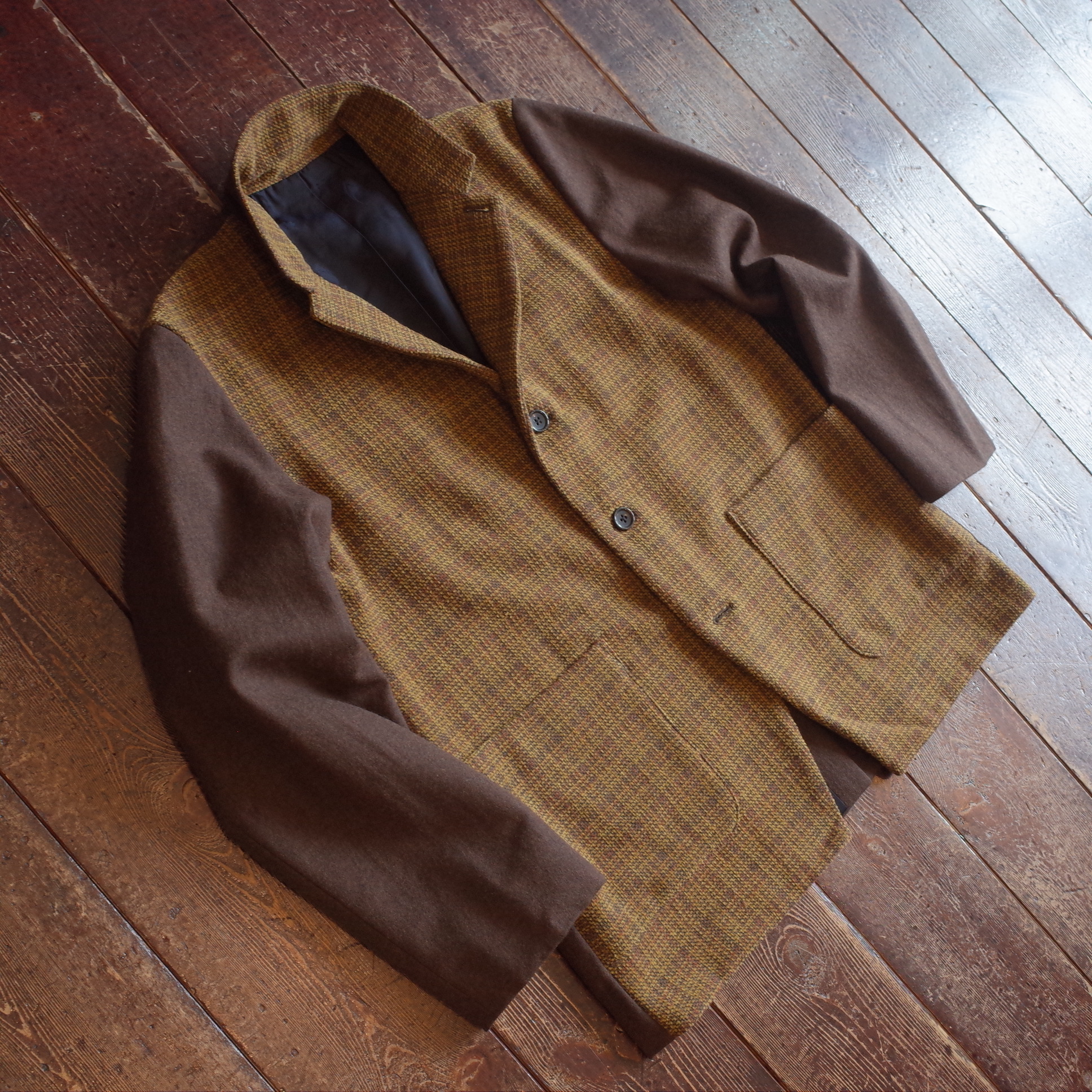 ソフト・ツィード調に織り上げられた前見頃に、