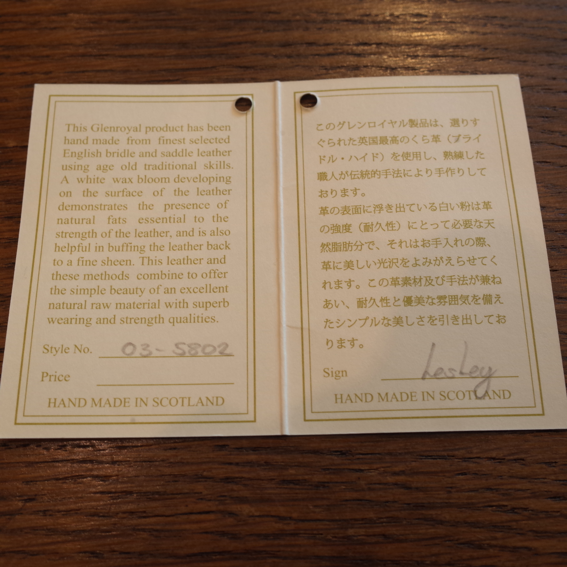 GLENROYAL と言えばのブライドルレザー、