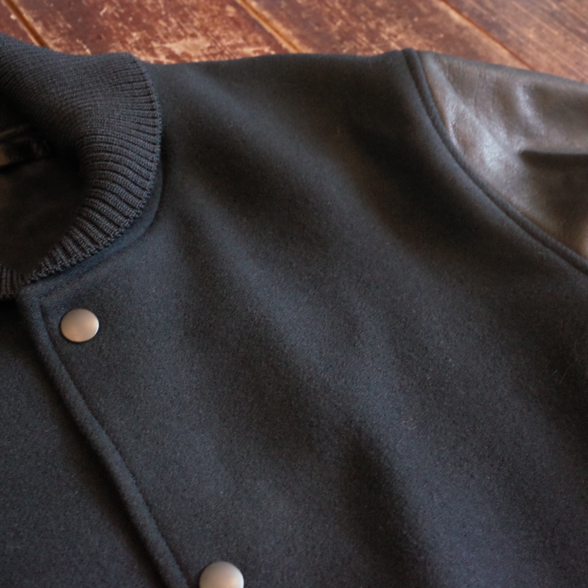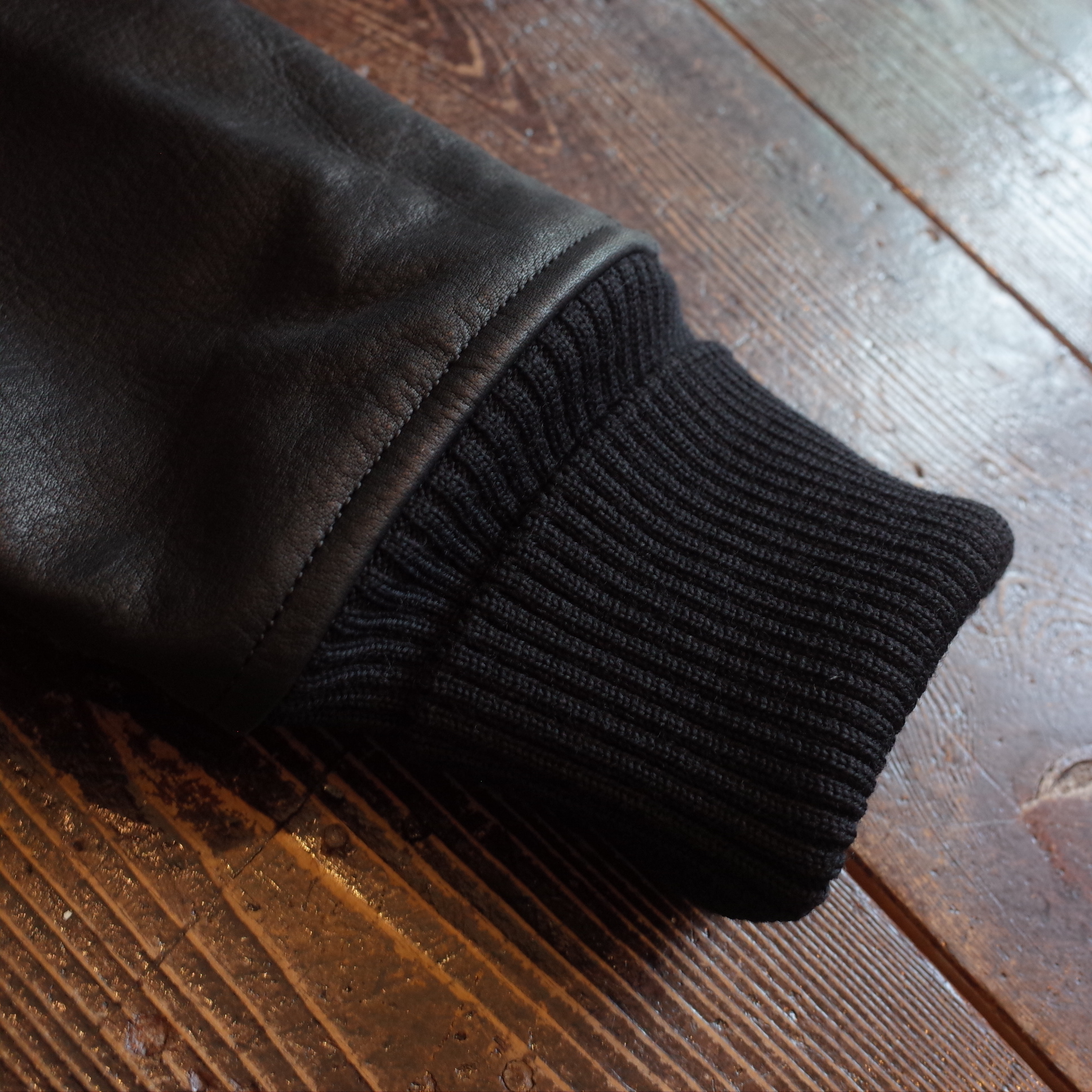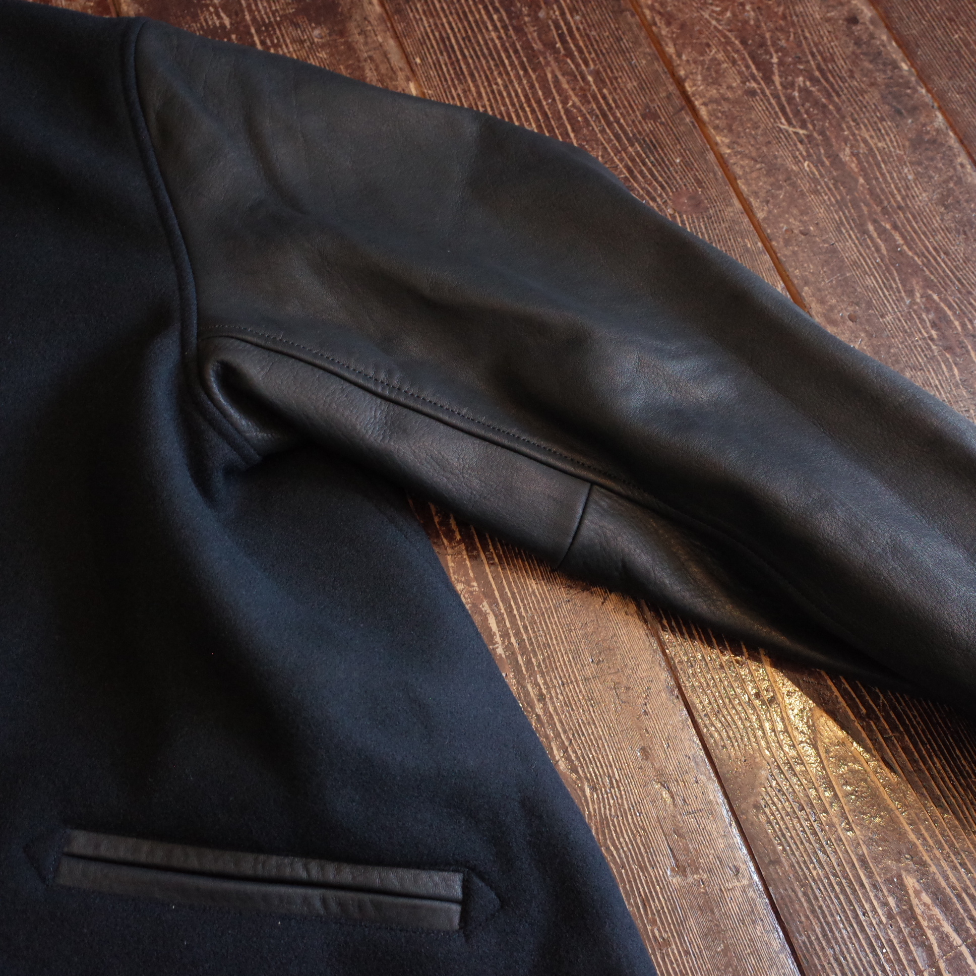 袖にはオリジナルの牛革を使用、