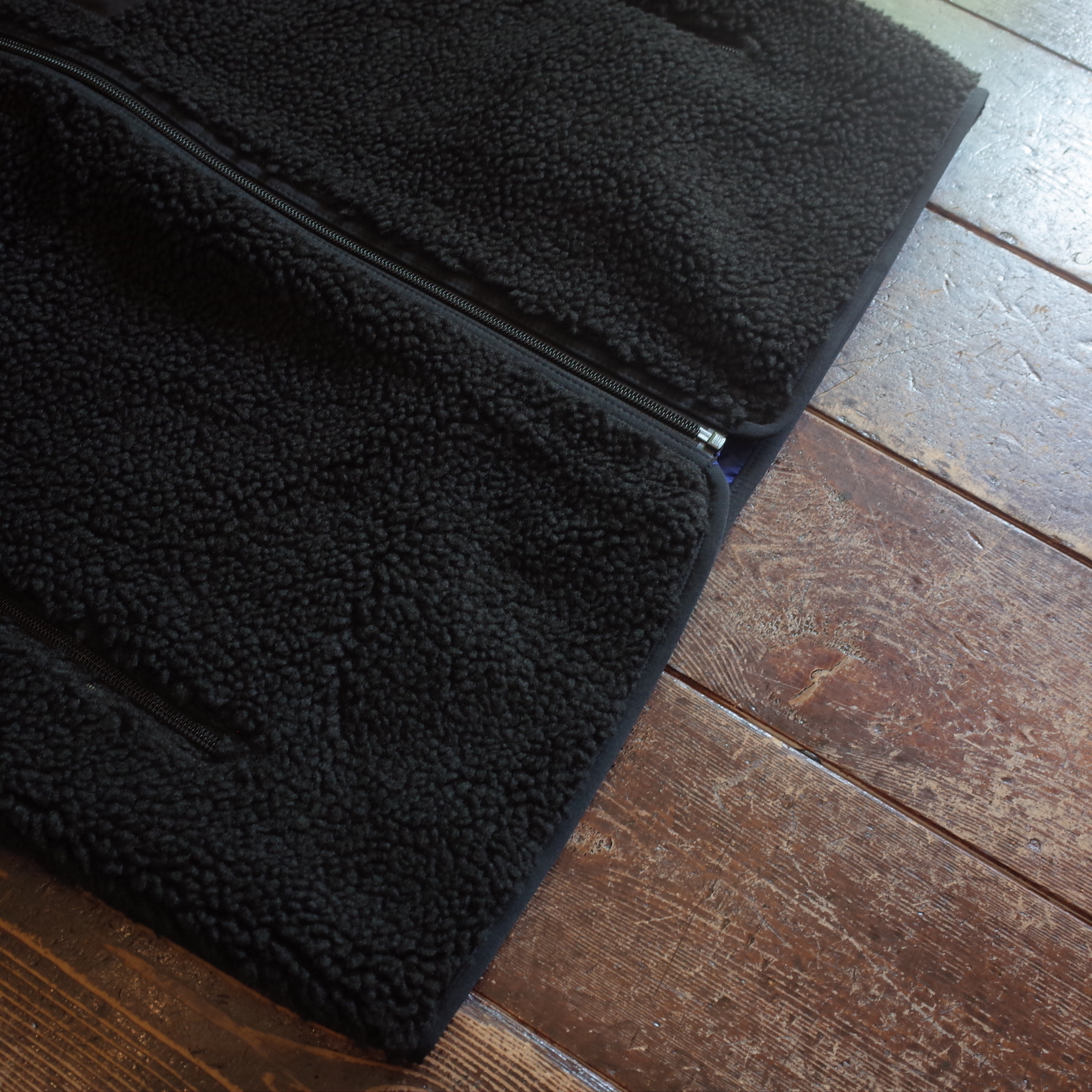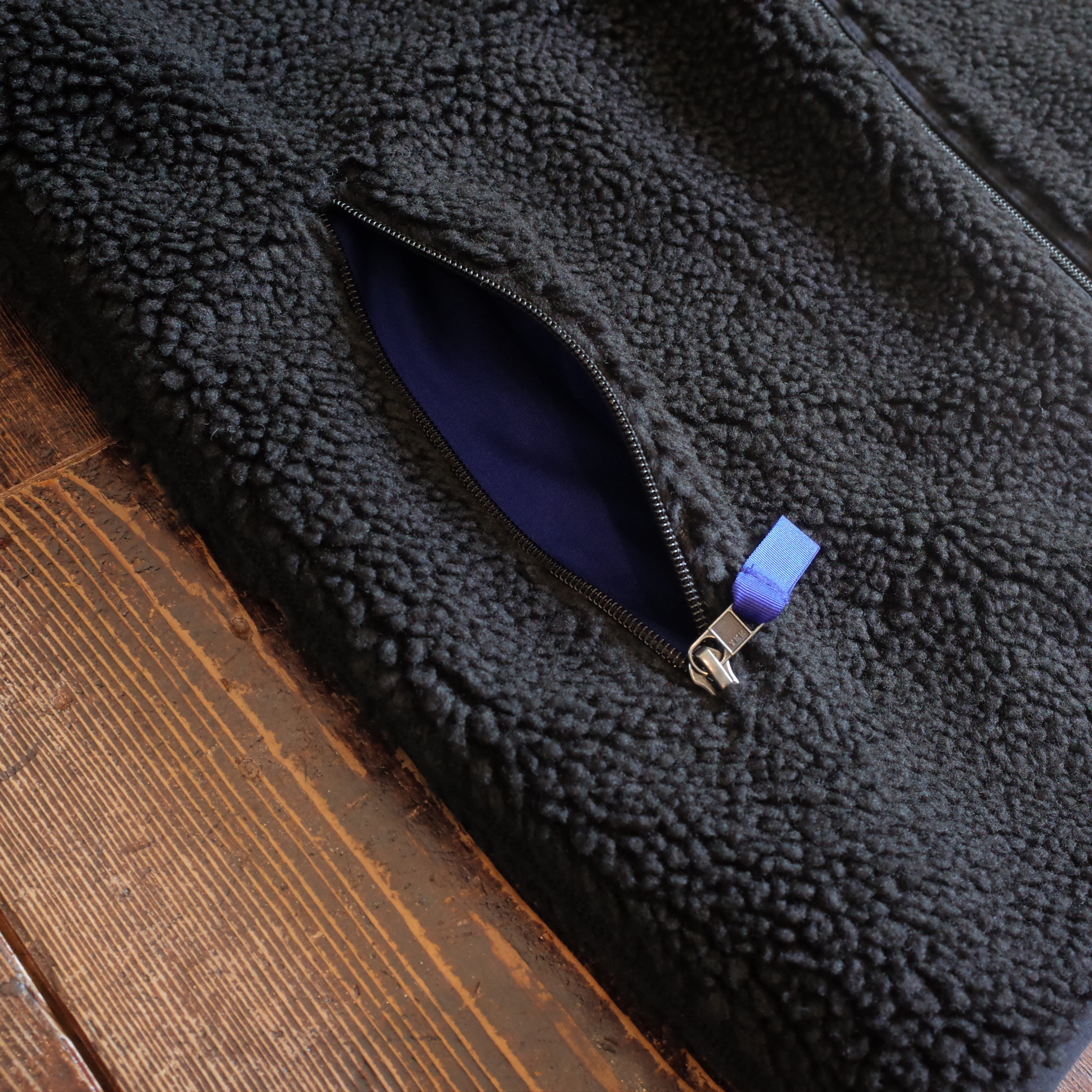 ソフトな6ミリ厚パイル・フリースを、リプリーブ・リサイクル・ポリエステル100%でクリーンアップ、プラスチック汚染の危機にさらされている沿岸部の共同体から供給された、オーシャンサイクルの認証済みの新素材で、