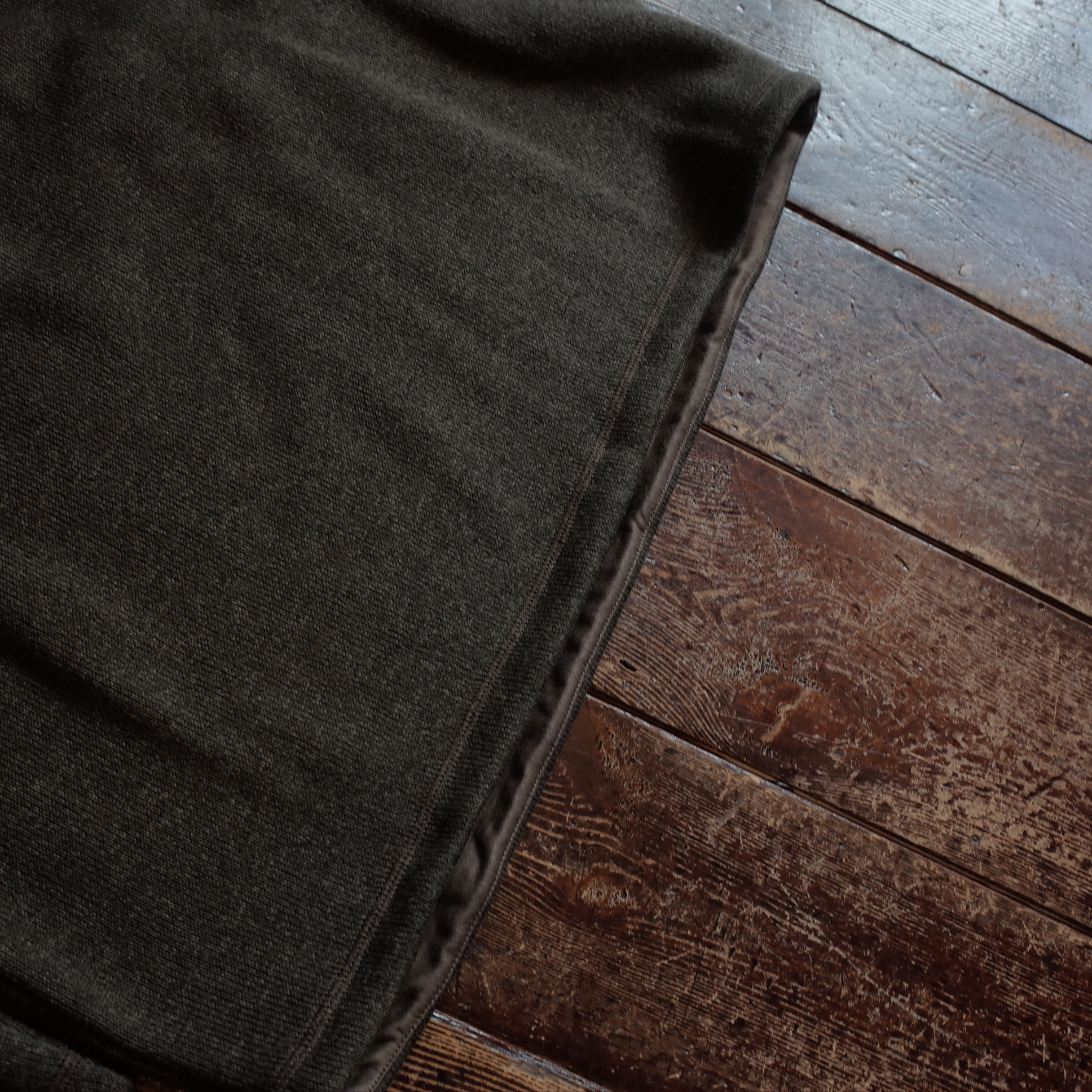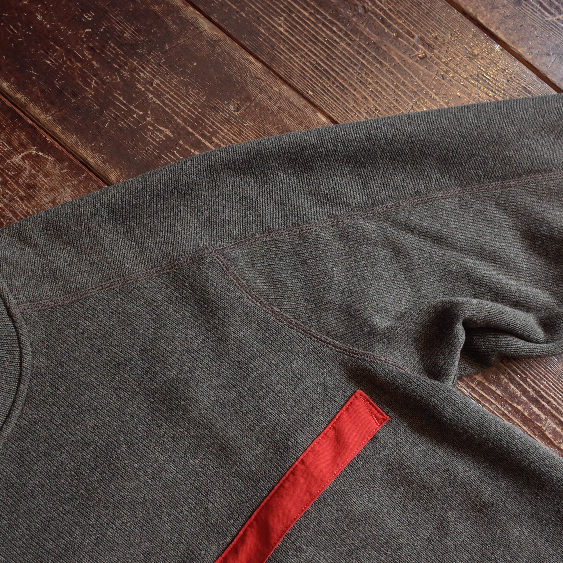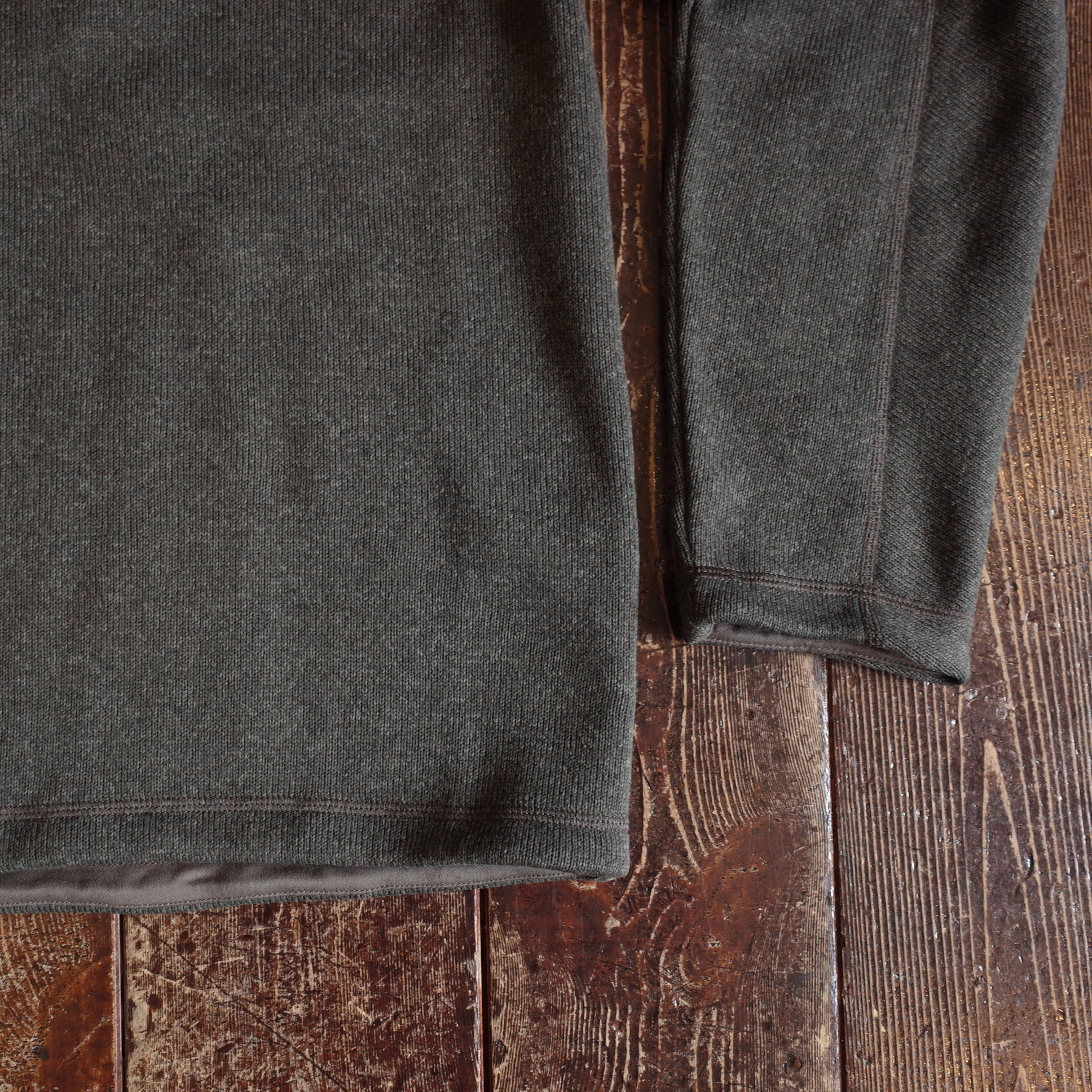 スッキリとしたリブを排除した袖口と裾、