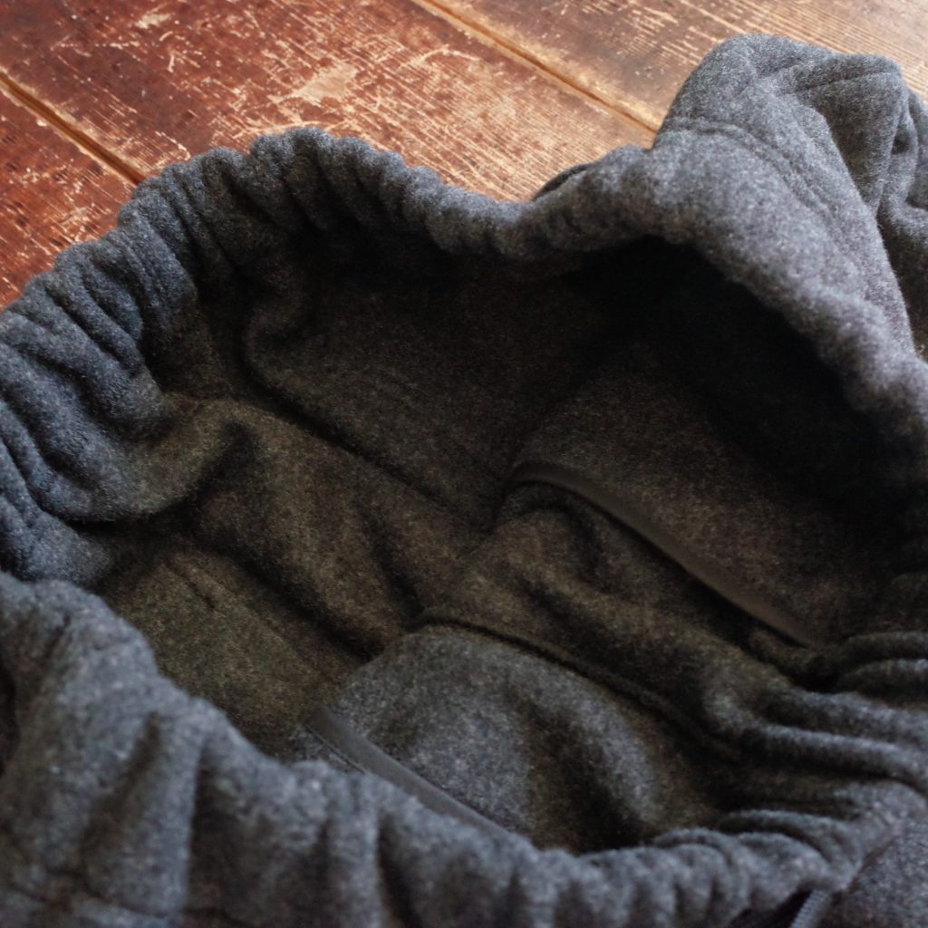 カシミヤ混のウールフリースを贅沢に使用、