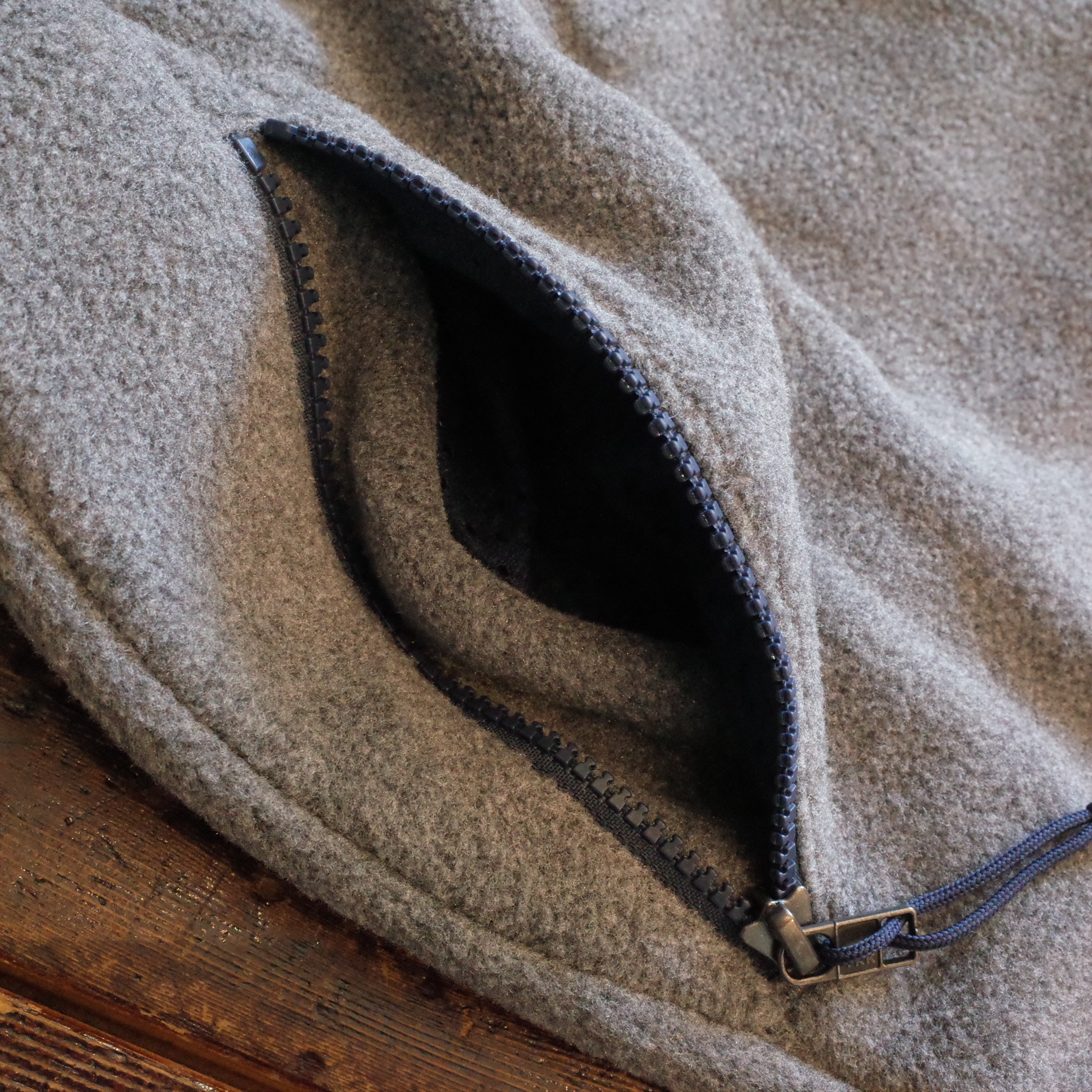 ジッパー式ハンドウォーマーポケットが2つ、