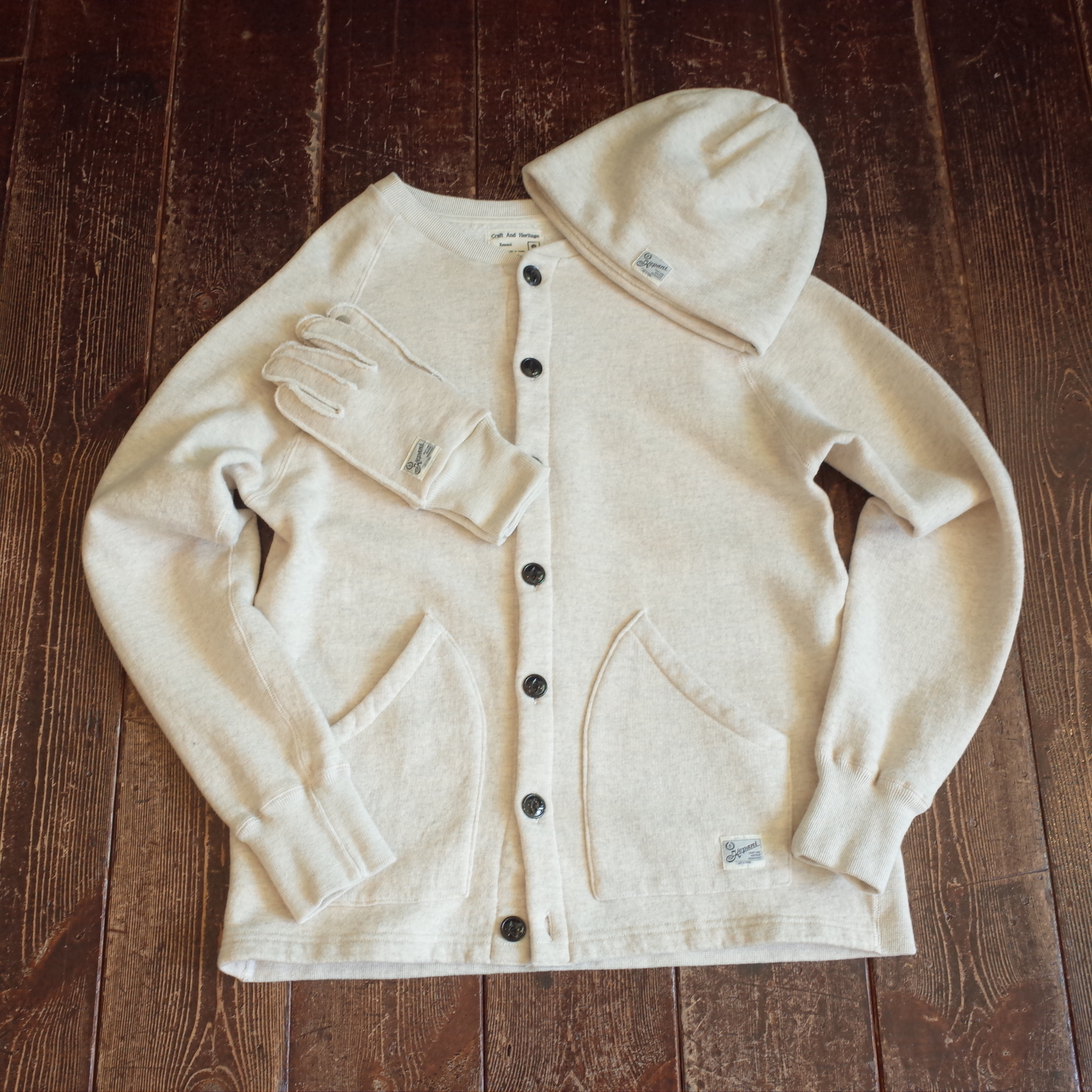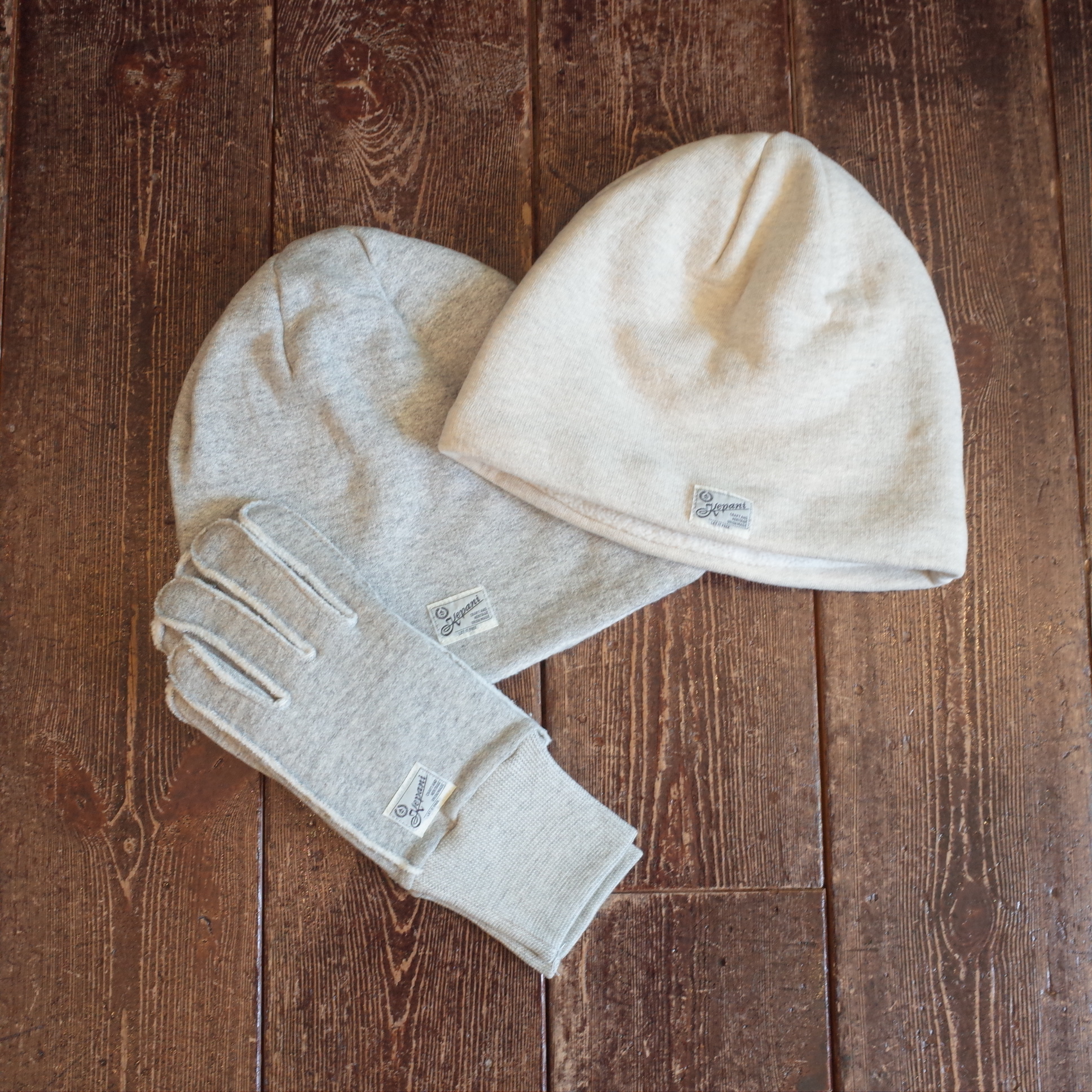 裏毛、起毛のスゥエット生地を Beanieに、
